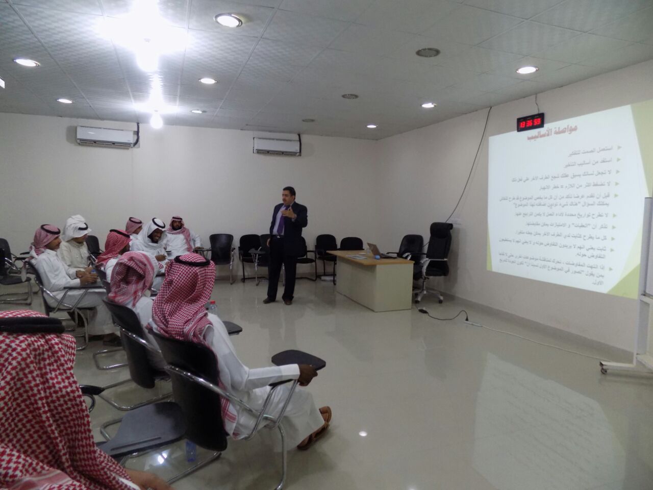 نظمت وكالة عمادة شؤون الطلاب بالفروع ممثلة بوحدة الأنشطة الثقافية والاجتماعية بالتعاون مع كلية الهندسة بوادي الدواسر دورة تدريبية بعنوان : "مهارات التفاوض والإقناع والتأثير" ضمن البرنامج التدريبي