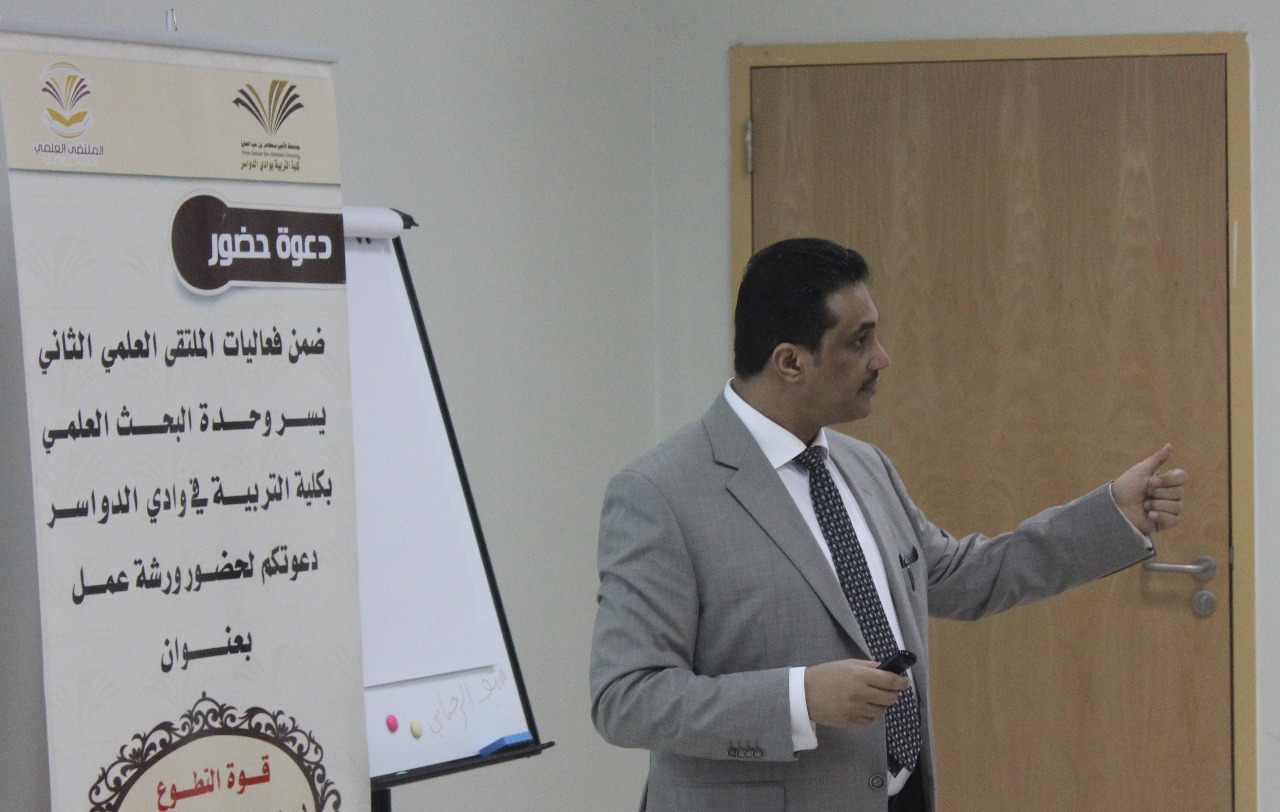 اختتمت كلية التربية بمحافظة وادي الدواسر يوم الثلاثاء الموافق 20/5/1439 هـ ، دورة " قوة التطوع " ضمن فعاليات برامج الملتقى العلمي الثاني بجامعة الأمير سطام بن عبدالعزيز حضرها 46 مشاركاً من طلاب ومنسوبي الكلية .