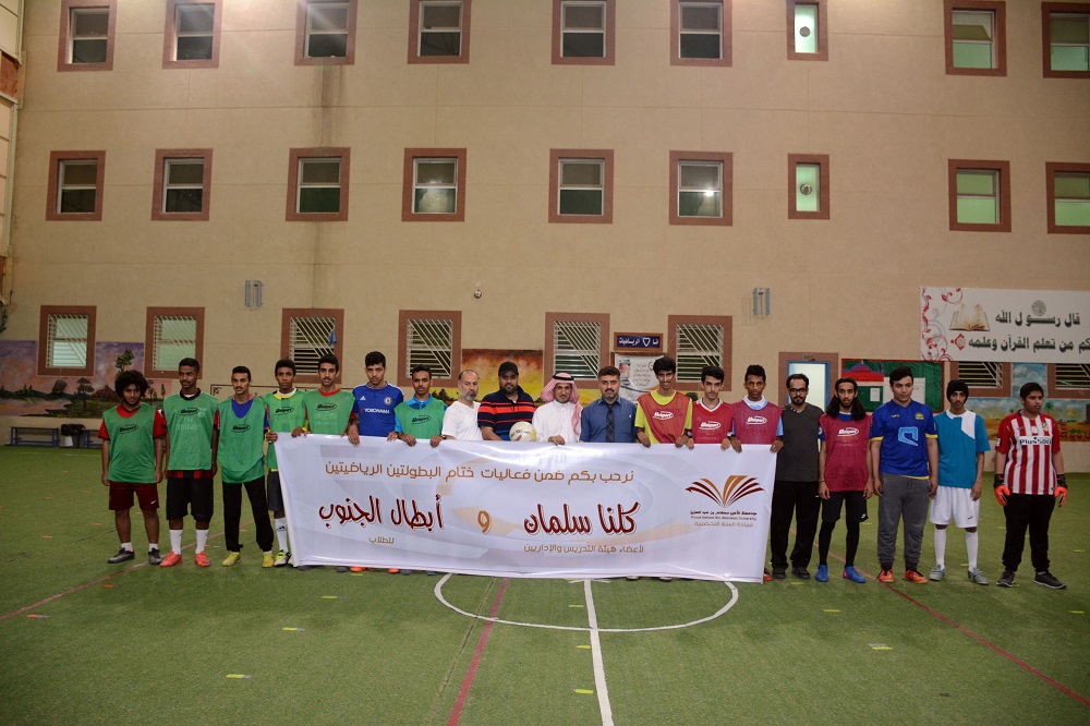 اختتمت وحدة الأنشطة الطلابية بعمادة السنة التحضيرية البطولة الرياضية تحت شعار (أبطال الجنوب) الخاصة بطلاب العمادة، وبطولة (كلنا سلمان) الرياضية لأعضاء هيئة التدريس والإداريين، وذلك يوم الأربعاء 29/7/1438هـ وكانت البطولة عبارة عن دوري للألعاب الخفيفة أقيمت في الصالة الرياضية بالعمادة، ودوري كرة القدم على ملاعب مدارس الجامعة الأهلية بالخرج.