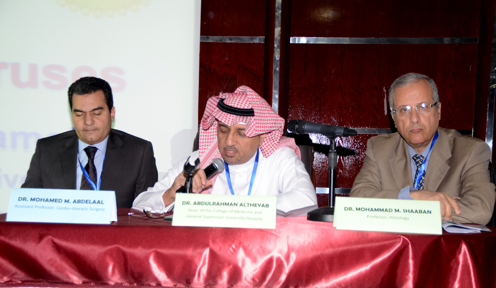 كما قدم عميد كلية الطب والمشرف على المستشفى الجامعي د.عبدالرحمن الذياب كلمة ترحيبية بضيوف الملتقى والمشاركين وأكّد على أهمية مثل هذه الملتقيات في دعم المسيرة التعليمية والصحية ويتيح فرصة الإطلاع على آخر المستجدات العلمية المتعلقه بأمراض الكبد مما ينعكس على العمل الأكاديمي والطبي بشكل إيجابي ويخدم المنشآت الصحية ويساعدها في تقديم رعاية طبية أفضل