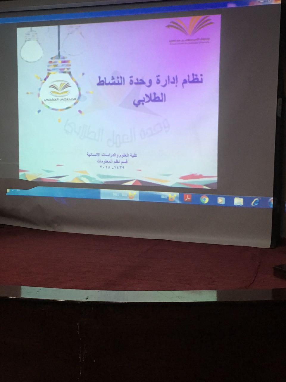 برعاية عميدة كلية العلوم والدراسات الانسانية بحوطة بني تميم الدكتورة حصة الهزاني ومنسقة الملتقى العلمي الأستاذة إسلام العمري، تم اختتام تحضيرات الملتقى العلمي يوم الأربعاء الموافق 21/ 5/ 1439 هـ. تم خلال الاختتام إجراءات التحكيم الداخلي بتشكيل لجنة من أعضاء هيئة التدريس من كلية إدارة الأعمال القسم الرجالي بحوطة بني تميم وعضوات هيئة التدريس النسائي حيث تم البدء البرنامج بكلمة ترحيبية من منسقة الملتقى العلمي والثناء والشكر للطالبات على المشاركة واللجان المشرفة على مشاركات الطالبات. بعد ذلك قامت منسقة الملتقى بالتعريف بمحاور الملتقى للبدء بتحكيم كل محور لوحده وذلك بعرض الطالبة مشروعها أو بحثها من خلال عرض بوربوينت أمام اللجنة النسائية والاتصال الخارجي وبعد الانتهاء من كل مشروع تم إعطاء فرصة لمناقشة الطالبة والرد على استفساراتهم. وفي نهاية البرنامج الختامي تم الشكر وأخبار اللجان بتسليم نتائج التحكيم الداخلي في موعدها غداً لاتخاذ الإجراءات اللازمة لعملية الفرز والحصول على المراتب حسب كل المحور على مستوى الكلية.