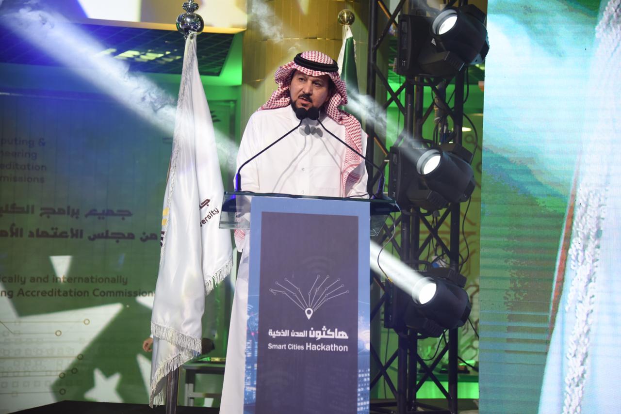 وقدم معالي مدير الجامعة الأستاذ الدكتور عبدالعزيز بن عبدالله الحامد كلمة بهذه المناسبة ذكر فيها اعتزازه وتقديره لجميع المشاركين والمشاركات في هذا الهاكثون مؤكداً حرص الجامعة على توفير البيئة المحفزة التي تساعد على إبراز مواهب الطلاب وقدراتهم والأخذ بيدهم للإبداع والتميز ،وأوضح الحامد أن الطلاب قد اكتسبوا من مشاركتهم إضافة إلى ما قدموه من إبداعات ومشاريع خلاقة تساهم في إيجاد مدن ذكية العديد من المهارات الأخرى من أبرزها العمل ضمن الفريق والعمل تحت الضغط وتعلم فنون القيادة ،ونحن في الجامعة ماضون في تنفيذ مثل هذه البرامج والفعاليات التي تأتي متكاملة ومحققة لرؤية المملكة الطموحة 2030.