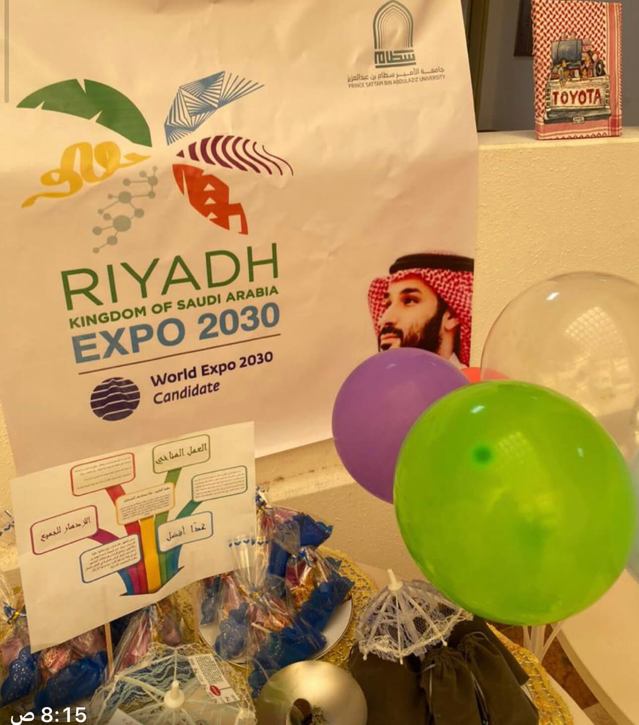 أقامت كلية الآدب والعلوم بوادي الدواسر يوم الأحد الموافق ١٤٤٥/٥/٩هـ ركن تعريفي عن إكسبو الرياض ٢٠٣٠ بإشراف مشرفة وحدة العمل الطلابي ومنسقة وحدة الأنشطة الثقافية والاجتماعية الدكتورة سجى الثبيتي ،احتوى الركن على منشورات تعريفية لأهم وأبرز إنجازات المملكة وشرحت مفهوم إكسبو عبر التاريخ كما احتوى الركن على فلم وثائقي لأهم إنجازات المملكة في السنوات الأخيرة ، نال الركن على استحسان منسوبات وطالبات الكلية.