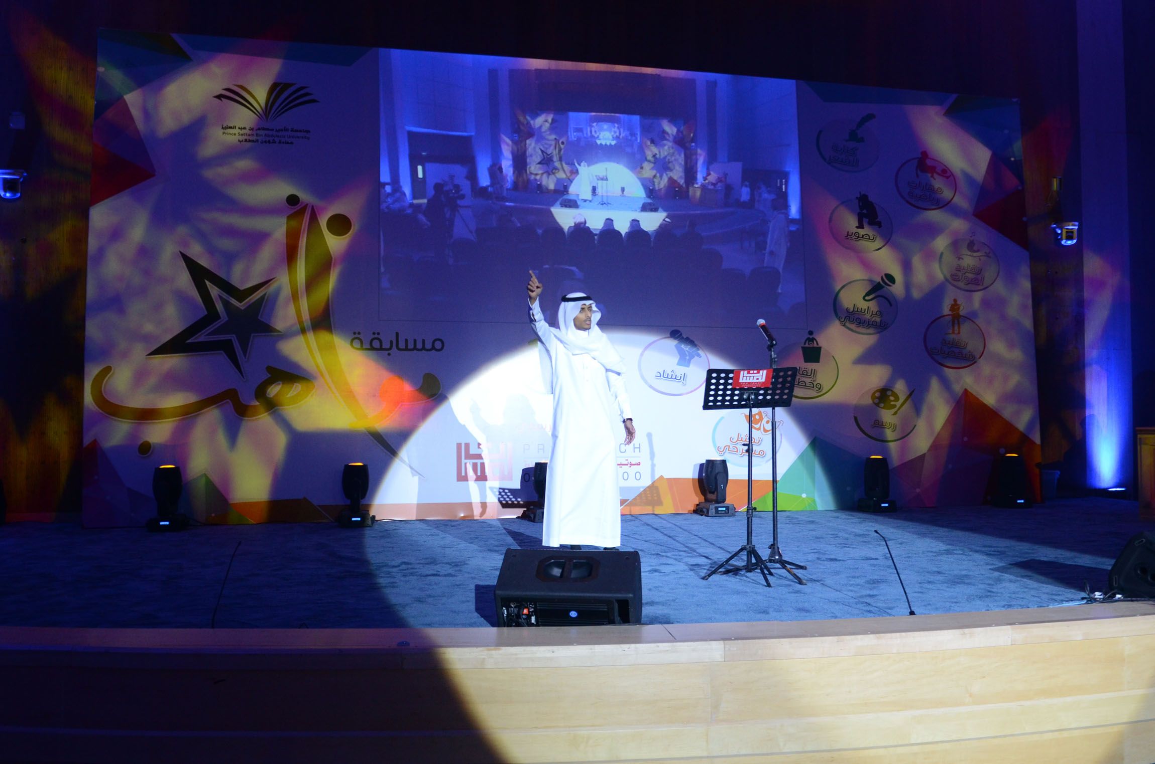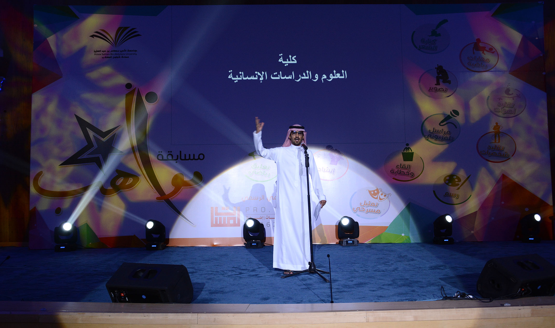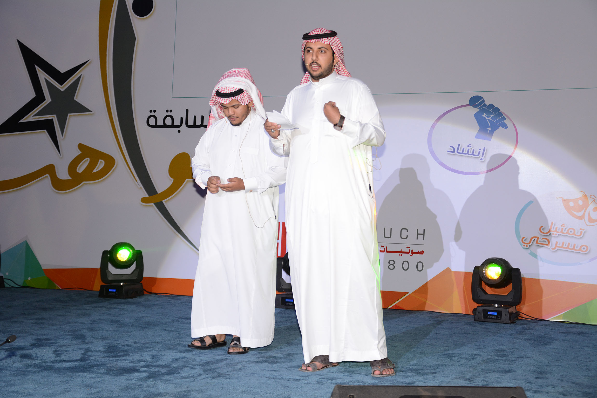 في اليوم الأول من مسابقة المواهب والتي تقيمها الأندية الطلابية بعمادة شؤون الطلاب خلال يومي الاثنين والثلاثاء الموافق 12-13/6/1437هـ بمسرح المدينة الجامعية بمدينة السيح وبحضور عميد شؤون الطلاب الدكتور مسفر الكبيري عرضت الدفعة الأولى من الكليات المشاركة والبالغ عددها سبع كليات أكثر من ثلاثين موهبة تنوعت ما بين مشاهد تمثيلية وإنشاد وإلقاء وقصائد شعرية وتعليق رياضي وغيرها من المواهب ، والتي لوحظ من خلالها تفاعل الطلاب وحماسهم ، وفي ختام فعاليات هذا اليوم تسلم الدكتور مسفر الكبيري إهداءً تذكرياً من عمادة السنة التحضيرية والذي قدمه نيابة عنهم الأستاذ محمد الشايع.