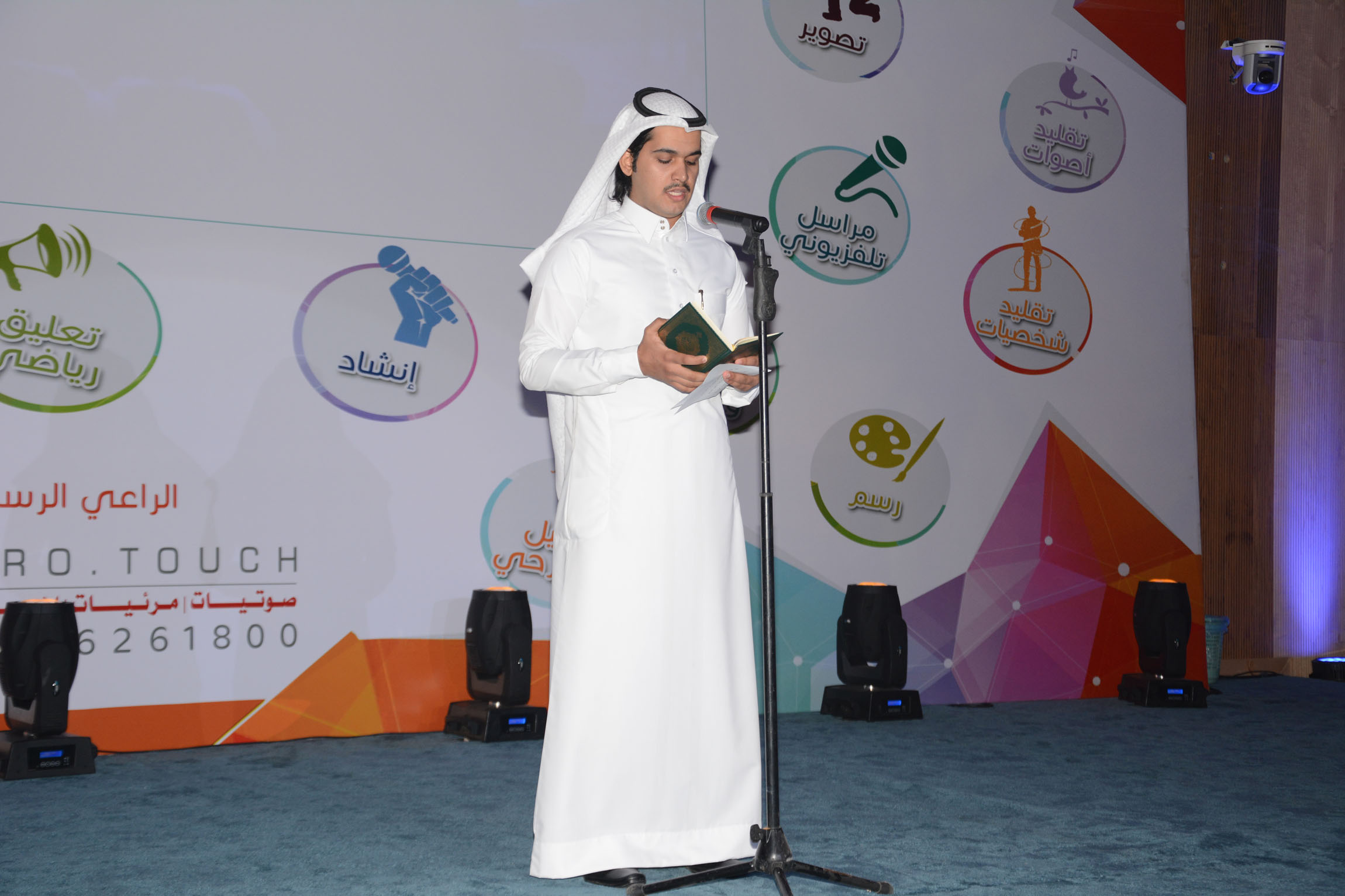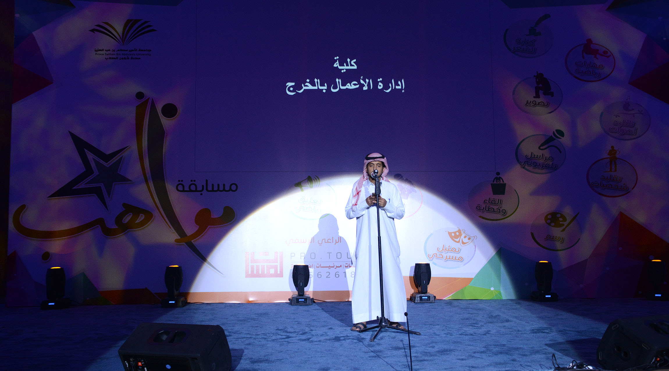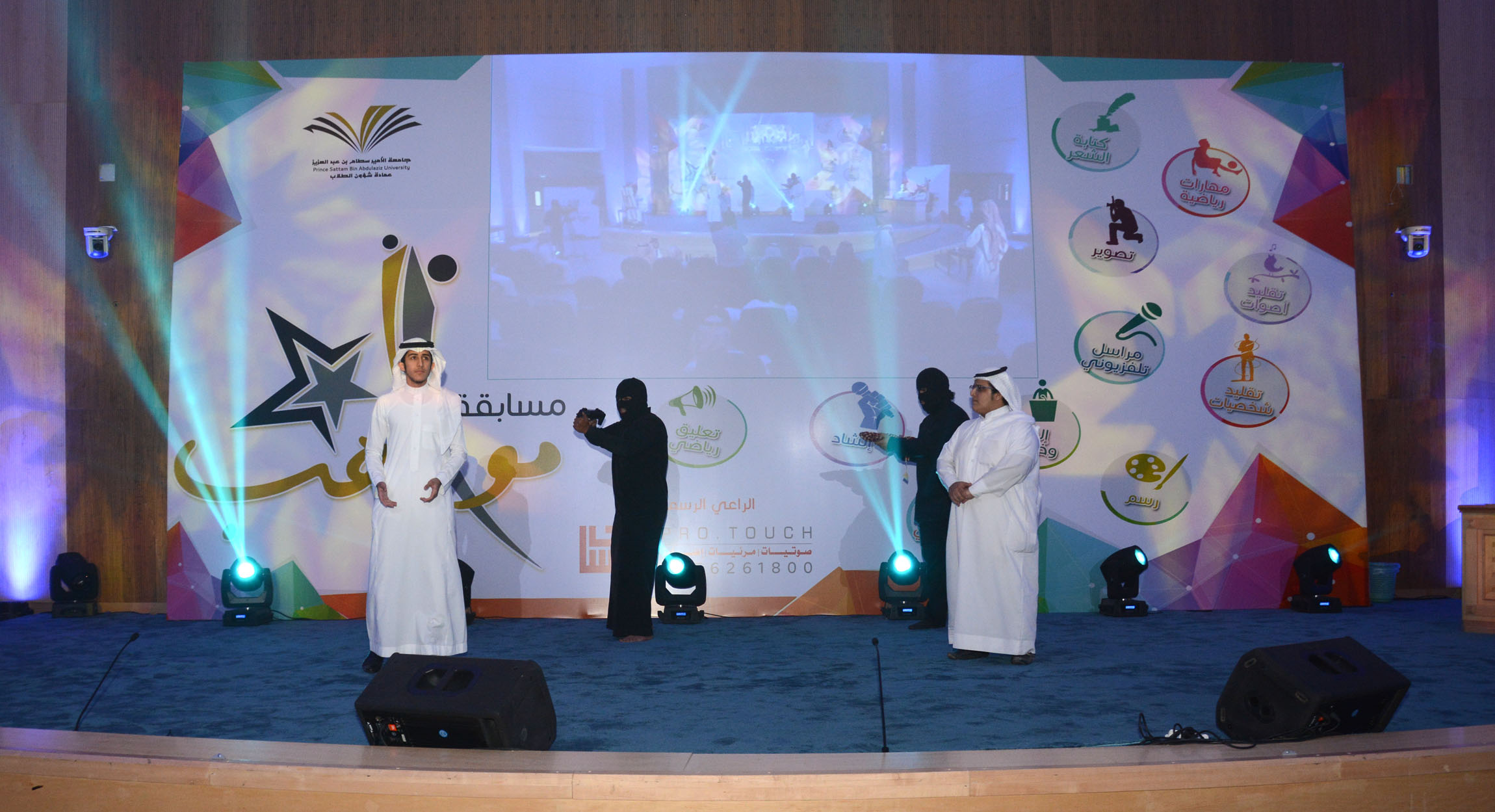 في اليوم الأول من مسابقة المواهب والتي تقيمها الأندية الطلابية بعمادة شؤون الطلاب خلال يومي الاثنين والثلاثاء الموافق 12-13/6/1437هـ بمسرح المدينة الجامعية بمدينة السيح وبحضور عميد شؤون الطلاب الدكتور مسفر الكبيري عرضت الدفعة الأولى من الكليات المشاركة والبالغ عددها سبع كليات أكثر من ثلاثين موهبة تنوعت ما بين مشاهد تمثيلية وإنشاد وإلقاء وقصائد شعرية وتعليق رياضي وغيرها من المواهب ، والتي لوحظ من خلالها تفاعل الطلاب وحماسهم ، وفي ختام فعاليات هذا اليوم تسلم الدكتور مسفر الكبيري إهداءً تذكرياً من عمادة السنة التحضيرية والذي قدمه نيابة عنهم الأستاذ محمد الشايع.