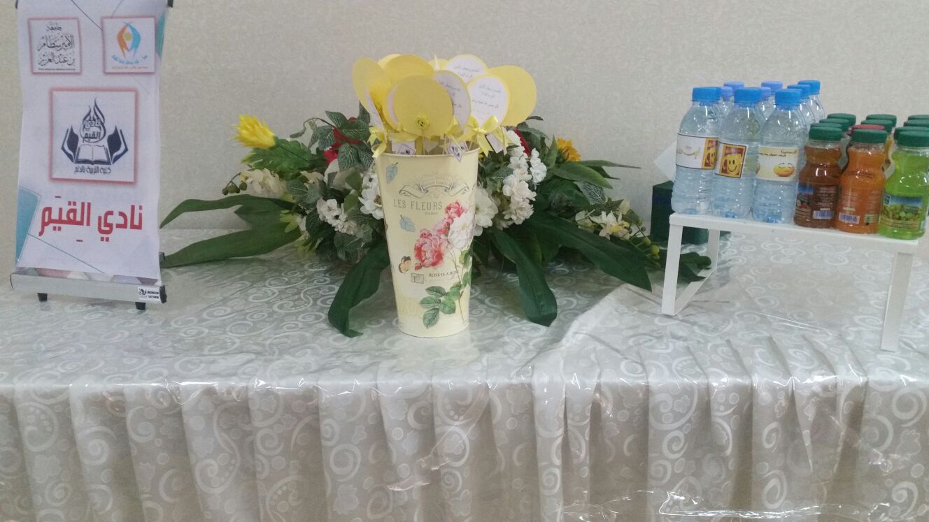 وكان هذا البرنامج من تقديم طالبات نادي القيم (أنفال العموش – مديرة النادي – عبير السويح – فاطمة الزبيدي – روابي الذروي - خديجة هزازي - عهد اليحي- غادة الغامدي - سهى الدواس - سارة القريني) .