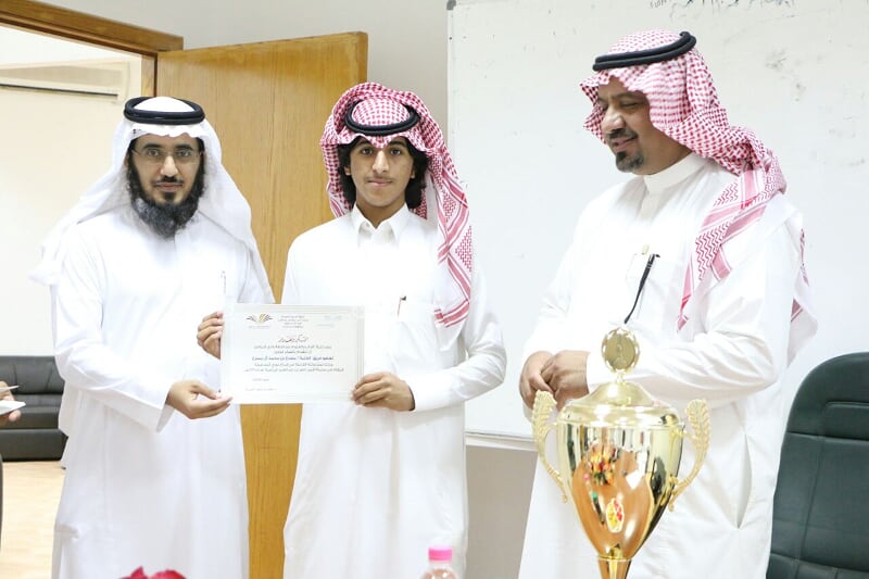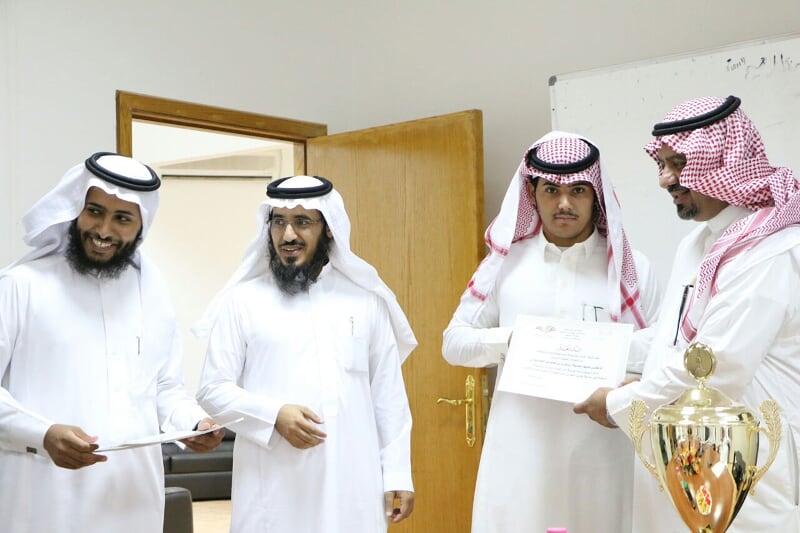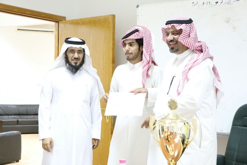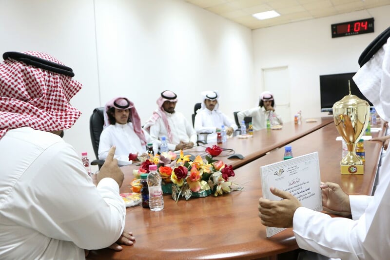 وقد عبر المدرع عن سعادته بهذه المناسبة وحثهم على الاستمرار على هذا المستوى في المشاركات القادمة سواء داخلية أو خارجية . كما أبدى لهم أن الكلية تقف جنبا إلى جنب مع الأنشطة الطلابية لظهور الكلية بالمظهر المشرف سواء على مستوى الجامعة أو خارجها وسيكون لهم الدعم الدائم في شتى مجالات الأنشطة . وتشرف منتخب الكلية باستلام شهادات الشكر والتقدير على ما بذلوه من عطاء وحماس في المباريات السابقة على مستوى بطولة الجامعة أو على مستوى بطولة الدوائر الحكومية التنشيطية بالمحافظة