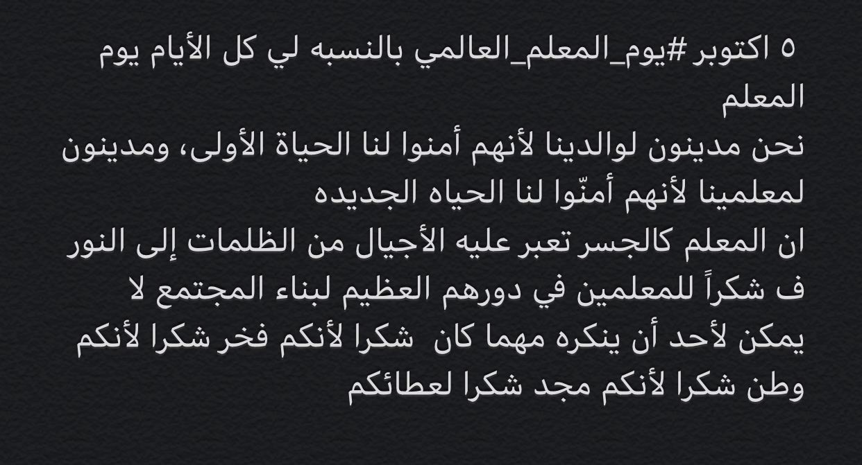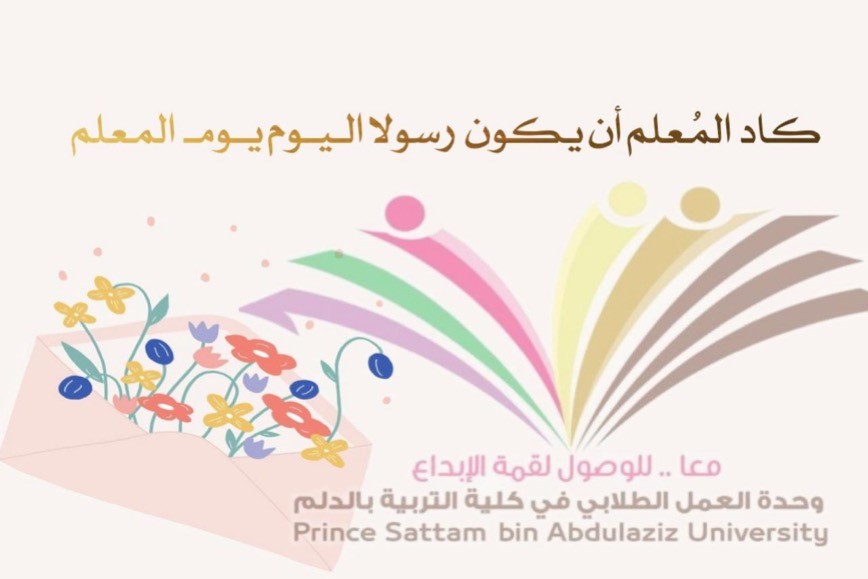 نفذت شعبة الأنشطة الثقافية والاجتماعية بكلية التربية بالدلم فعالية الاحتفاء باليوم العالمي للمعلم والذي يوافق 5 أكتوبر بعنوان "شاركونا عبارات الامتنان والشكر لأعضاء هيئة التدريس الفاضلات" تحت شعار" المعلمون: القيادة في أوقات الأزمات وتصور المستقبل" بإشراف ا.نورة العويمر وبتنسيق مع الطالبة زينب السيف، وذلك يوم الإثنين الموافق 18صفر ١٤٤٢هـ عبر حساب الوحدة في تويتر ويهدف إلى:
