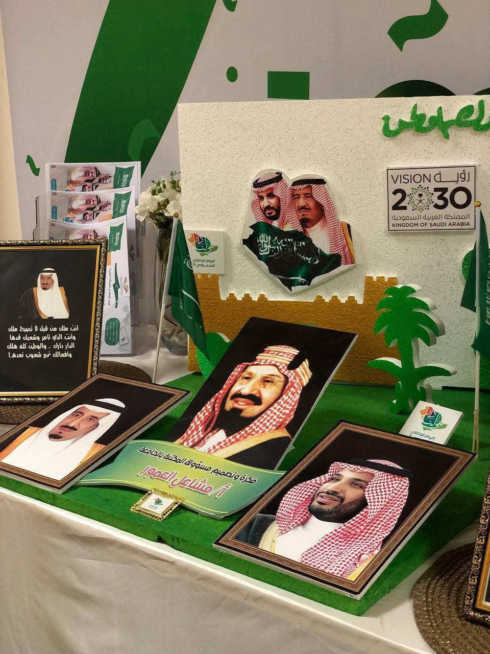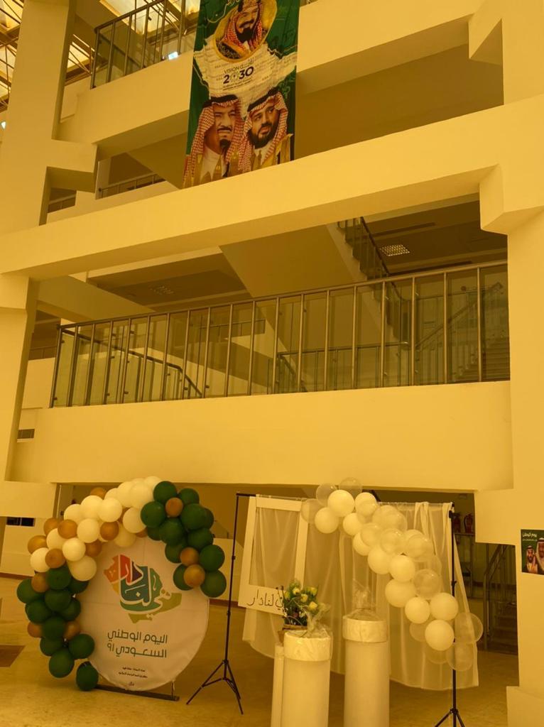 وتضمن الاحتفال عدة فعاليات منها ركن للتوزيعات الوطنية، وركن للمطبوعات المصممة على هوية اليوم الوطني، وركن لكتابة العبارات الوطنية بلوحة وطنية عبرن فيها منسوبات الكلية عن مشاعرهن وحبهن للوطن، وركن رسومات للوطن حيث عبر الطالبات بهوايتهن على حب الوطن، وكذلك مشاركة بالقصائد التي تعزز قيم الانتماء وحب الوطن، كما تزين المبنى بالأعلام والعبارات الوطنية والبنرات علو هوية الوطن، وتزيين جميع المنسوبات بالزي الوطني.