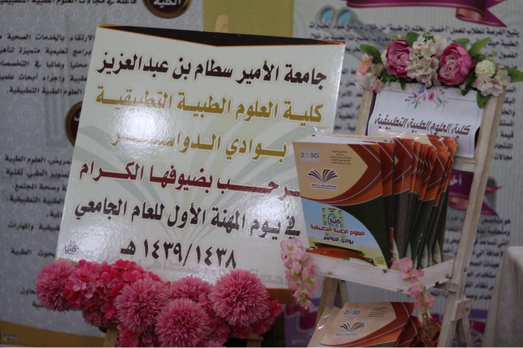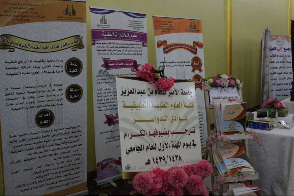 برعاية كريمة من مشرف الكلية د/ ماجد الشريدة , نظمت كلية العلوم الطبية التطبيقية بوادي الدواسر فاعلية يوم المهنة الأول والذي صحب يوم تخريج الدفعة السادسة لطالبات جامعة سطام بن عبدالعزيزـ فرع وادي الدواسر وذلك بقاعة الاحتفالات بقصر الفضاء بالشرافاء , وقد افتتحت معرض المهنة الأول للكلية سعادة الدكتورة/ بشرى الحماد وكيلة الجامعة لشؤون الطالبات والتي ابدأت اعجابها بالمعرض وفكرته.