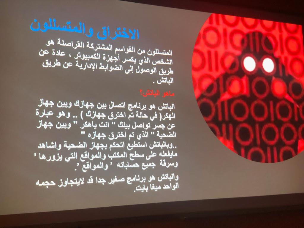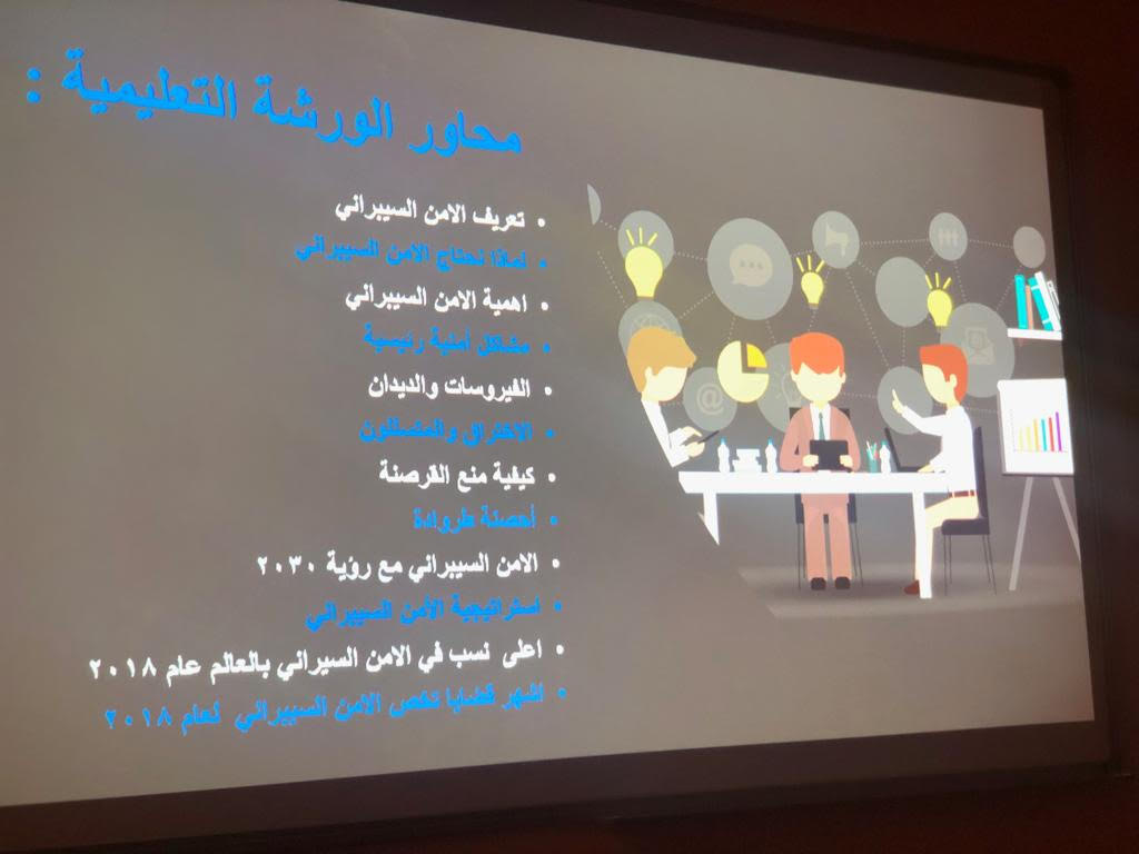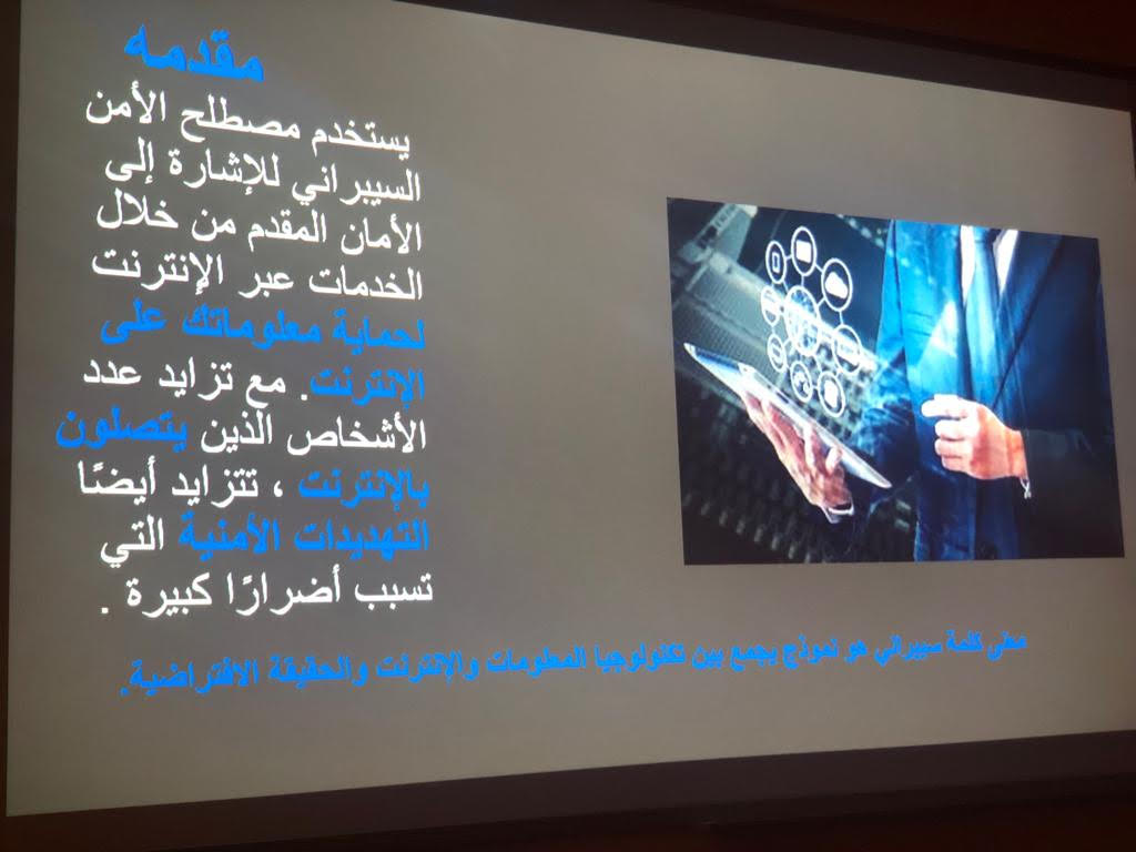 امتداداً لدورات وبرامج الملتقى التقني الأول المقام في كلية المجتمع بالخرج أقيمت دورة تدريبية تحت عنوان: " الأمن السيبراني" من تقديم الأستاذة / سارة القحطاني.