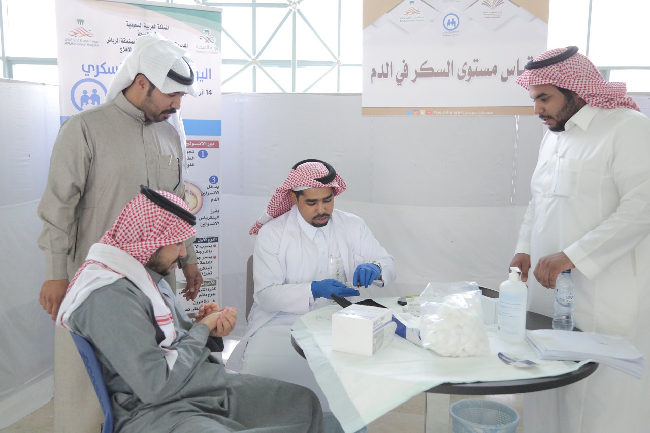 يذكر أن هذه الفعالية التي نظمها النادي التطوعي بكليات الأفلاج تأتي تزاماً مع اليوم العالمي للسكري .