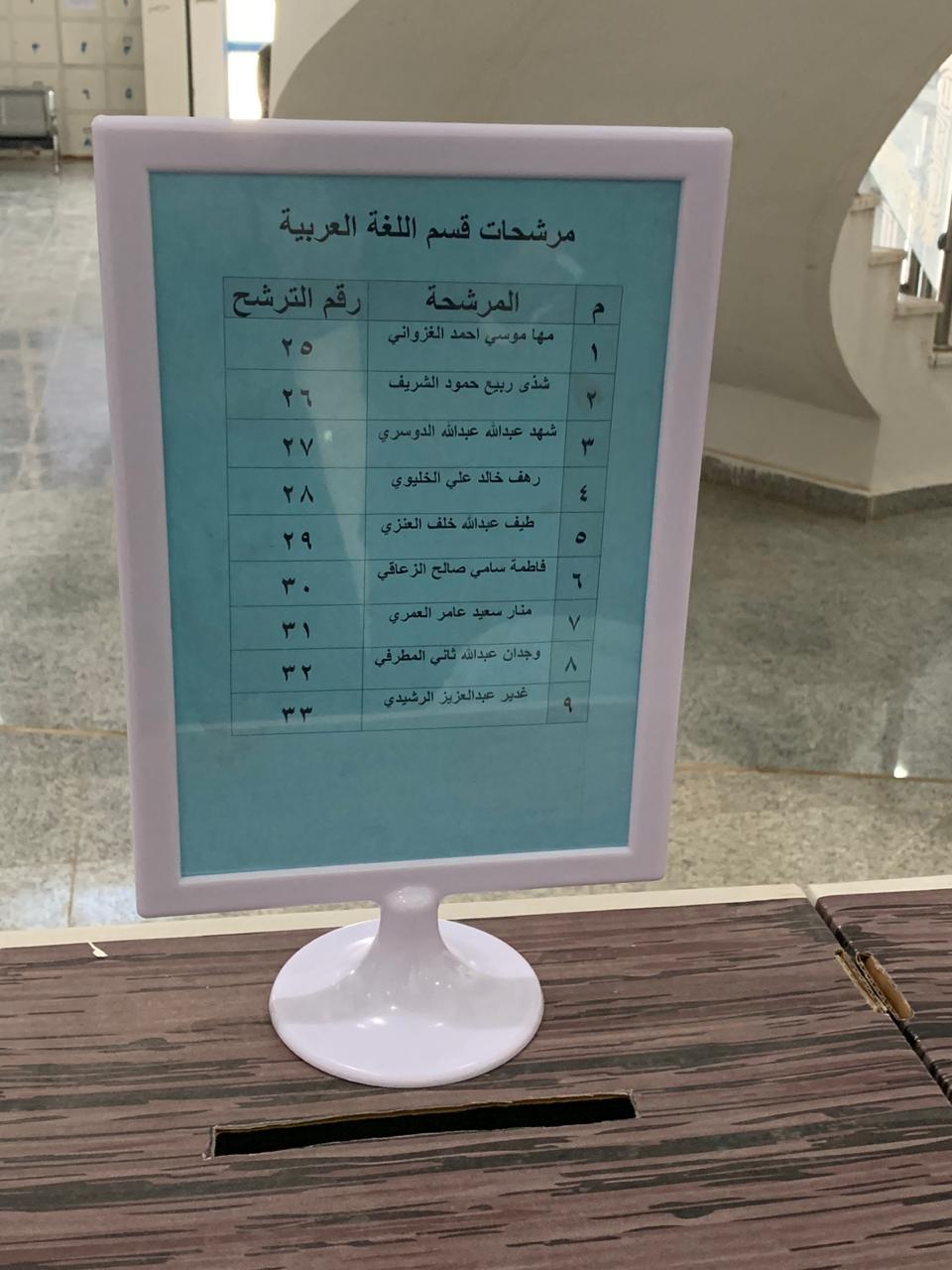 انطلقت اليوم الثلاثاء عملية الاقتراع للانتخابات الطلابية برعاية وكيلة كلية التربية بالخرج الدكتورة منيرة بنت عبدالله العسكر وحضور ضيفة الشرف الأستاذة القديرة نورة الشبل مشرفة التربية والتعليم سابقاً و بمشاركة ١٢٠ عضو هيئة تدريس و٧٠ موظفة إدارية و١٩٥٦ طالبة. وقد صوت الجميع للبرامج الانتخابية وعددها ٢٨ برنامجاً انتخابياً. من خلال عملية ديمقراطية توفر لهم مجالاً واسعاً من الحوار والعمل على انجاز مبادراتهم المختلفة التي تخدم الطالبات في الحرم الجامعي في العديد من المجالات. ووضّحت مشرفة المجالس الطلابية بالجامعة أ.حنان العبدالقادر أن المجالس الطلابية تشكل جزءا مهما ً من نشاطات الهيئة الطلابية في الجامعة. وتساهم في زيادة وعي الطالبات في مجالات الحقوق والواجبات، وإبراز القيادات وصقل المهارات الفنية. مشددة على أهمية تعاون جميع الطالبات في تشكيل المجالس في أجواء من الحرية والشفافية بين الطالبات والهيئة الأكاديمية والإدارية في تنافس ديمقراطي يمثل الجامعة في أبهى صورة .