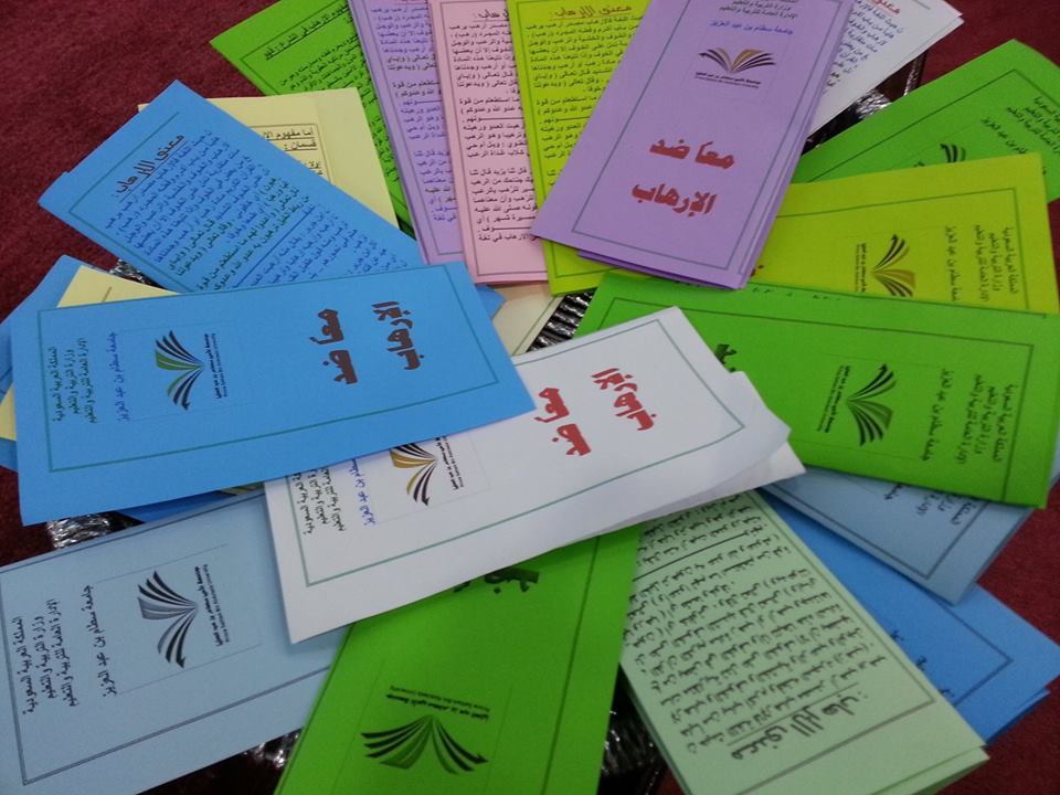 نظم قسم اللغة العربية بكلية العلوم والدراسات الإنسانية بحوطة بني تميم برنامجاً بعنوان" الإرهاب " بدأ البرنامج بآيات من الذكر الكريم تلاها كلمة من الطالبة أسماء العسكر عن أثر الإرهاب والتي يراها القريب والبعيد ومنها حصد للأرواح وهلاك للنفس وتدمير للممتلكات، ونشر الخوف ، إضعاف الأمة ،ثم جاء الحديث عن سلبيات الإرهاب حيث تحدثت إحدى الطالبات وقالت أنه مخالف لروح الدين ، وكذلك مخالفة ولي الأمر وشق عصا الطاعة ، ثم إن ذلك من مصلحة أعداء الدين ، وعرقلة لمسيرة الدعوة.