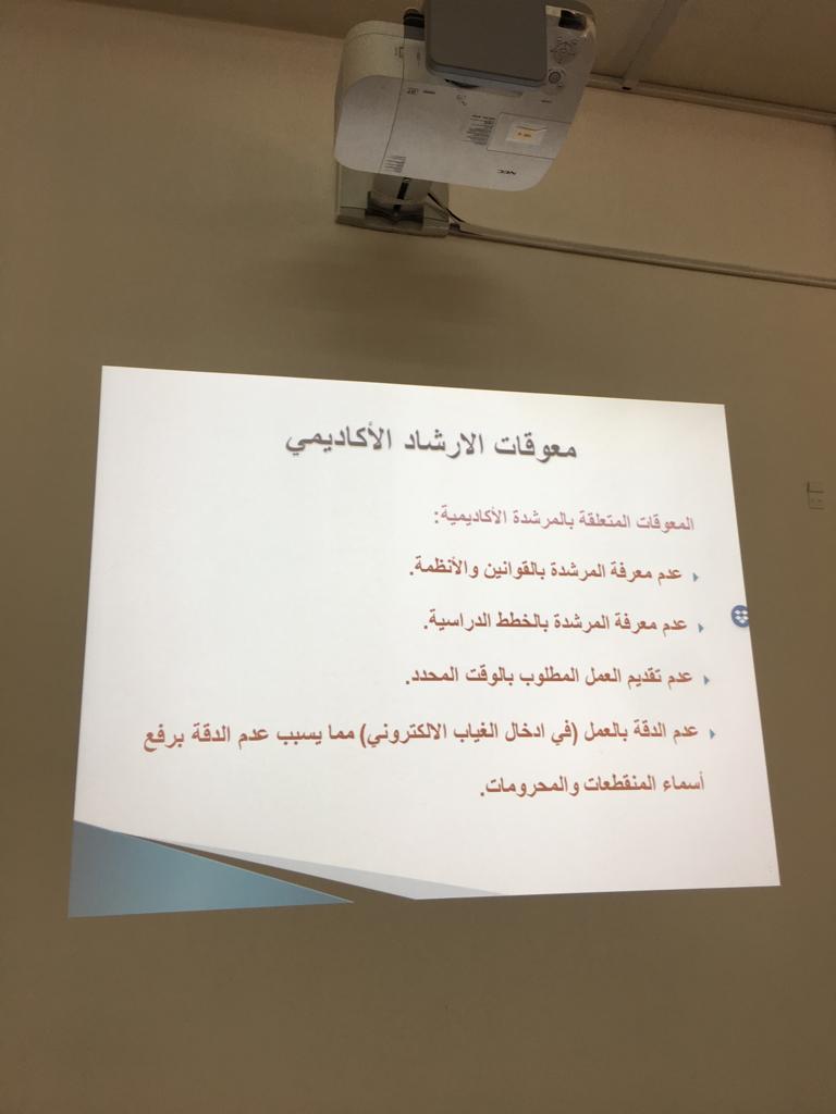 نظمت وحدة الإرشاد الأكاديمي بعمادة السنة التحضيرية شطر الطالبات يوم الخميس الموافق1441/1/6هـ ،دورة بعنوان"الإرشاد الأكاديمي العقبات والحلول" قدمتها أ.رجاء عبد الفتاح،حيث استهدفت أعضاء هيئة التدريس،وقد تضمنت الدورة عدة محاور ومنها : (نظام الدراسة بعمادة السنة التحضيرية،المسارات والخطة الدراسية ،ومفهوم الإرشاد الأكاديمي، وآلية عمل المرشدة الأكاديمية ، والنماذج اللازمة لها ، والمرجعيات للاحتياجات المختلفة في الإرشاد الأكاديمي وبعض المفاهيم المهمة للمرشدة الأكاديمية لإيصالها للطالبات ، ومعوقات الإرشاد الأكاديمي. وقد أجابت المدربة على جميع استفسارات الأعضاء مما أدى إلى إثراء الدورة وزيادة فعاليتها وفائدتها،واختتمت أ.رجاء الدورة بشكرها لجميع الحاضرات وأكدت على عضوات هيئة التدريس بضرورة الدقة في العمل وإنهاء الأعمال المتعلقة بالإرشاد الأكاديمي بالوقت المحدد.