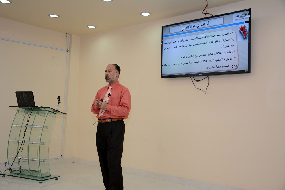برعاية عميد السنة التحضيرية الدكتور/ مشاري بن عياد العصيمي ، وبحضور وكيل العمادة للشؤون التعليمية والأكاديمية د .فهد بن شهيل العلوي ورؤساء الأقسام ، أقامت وكالة العمادة للشؤون التعليمية والأكاديمية ورشة عمل لطلاب العمادة تحت عنوان (الإرشاد الأكاديمي وأهميته للطالب الجامعي) . ويأتي عقد هذه الورشة إيماناً من وحدة الإرشاد الأكاديمي بضرورة نشر ثقافة الإرشاد الأكاديمي بين الطلاب، وتوضيح أهمية مراجعة الطالب للمرشد الأكاديمي لتعريفهم بالأنظمة واللوائح الدراسية ومساعدتهم في التقدم الدراسي والتغلب على ما يعترضهم من مشكلات وصعوبات اجتماعية أو نفسية أو صحية أو أكاديمية.