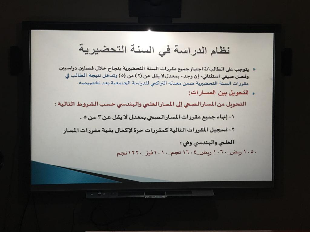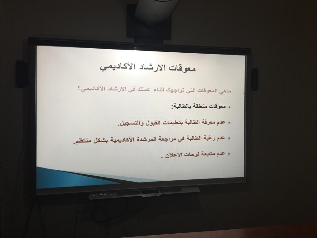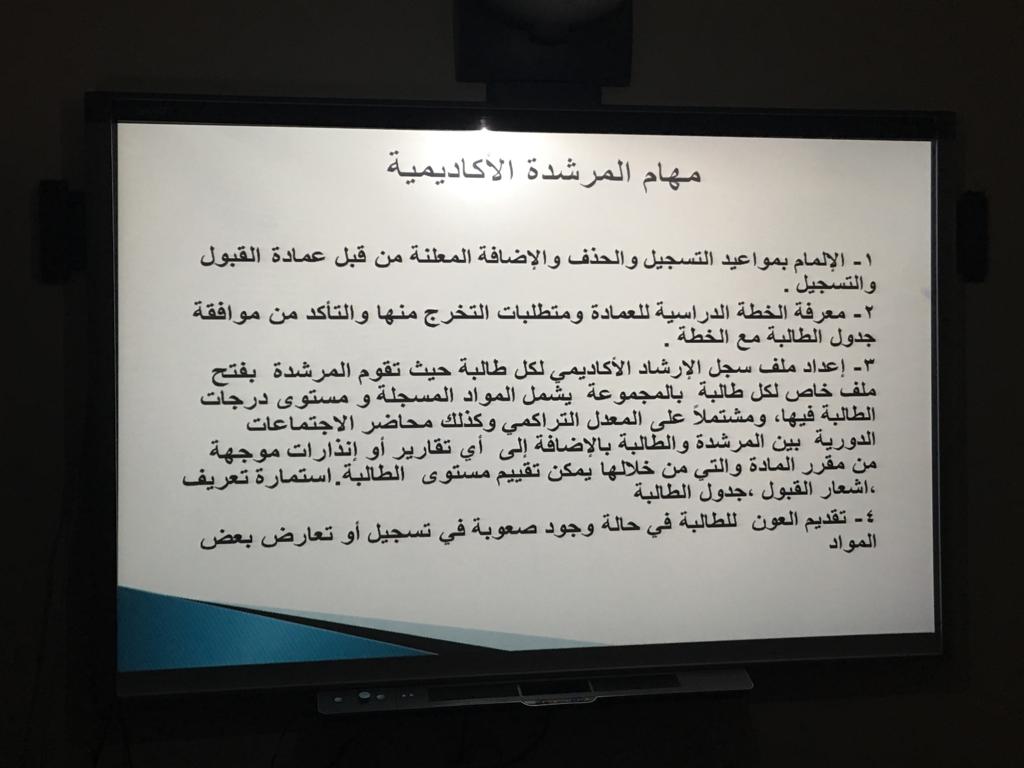 نظمت وحدة الإرشاد الأكاديمي بعمادة السنة التحضيرية قسم الطالبات يوم الأربعاء الموافق 1440/5/3هـ دورة :بعنوان الإرشاد الأكاديمي (عقبات وحلول) من تقديم أ. رجاء عبد الفتاح وبحضور الدكتورة أمل بنت صالح الشمراني وكيلة العمادة وعدد من منسوباتها. حيث تحدثت الأستاذة رجاء عن محاور الدورة : كنظام الدراسة في السنة التحضيرية والمسارات والخطة الدراسية ومفهوم الإرشاد الأكاديمي وآلية عمل المرشدة الأكاديمية والمرجعيات للاحتياجات المختلفة في الإرشاد وبعض المفاهيم المهمة للمرشدة الأكاديمية لإيصالها للطالبات ، وبعض المعوقات والمقترحات للتغلب عليها في جوانب مختلفة من الإرشاد. وكان هناك الكثير من الأسئلة والاستفسارات من قبل الأعضاء مما أدى إثراء الدورة وزيادة فعاليتها وفائدتها. واختتم اللقاء بكلمة من سعادة وكيلة العمادة شكرت فيها جميع الحاضرات وأكدت على عضوات هيئة التدريس بضرورة الدقة في العمل وإنهاء الأعمال المتعلقة بالإرشاد الأكاديمي في الوقت المحدد.