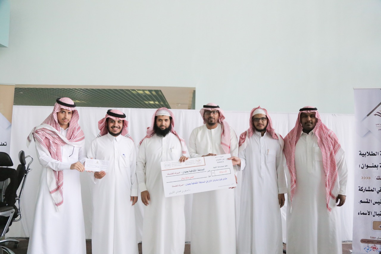 حقق قسم " الدراسات الإسلامية" المركز الأول في مسابقة "حرك ذهنك" بأسرع إجابة التي نظمتها وحدة الأنشطة الطلابية بكليات جامعة الأمير سطام بن عبدالعزيز بالأفلاج .