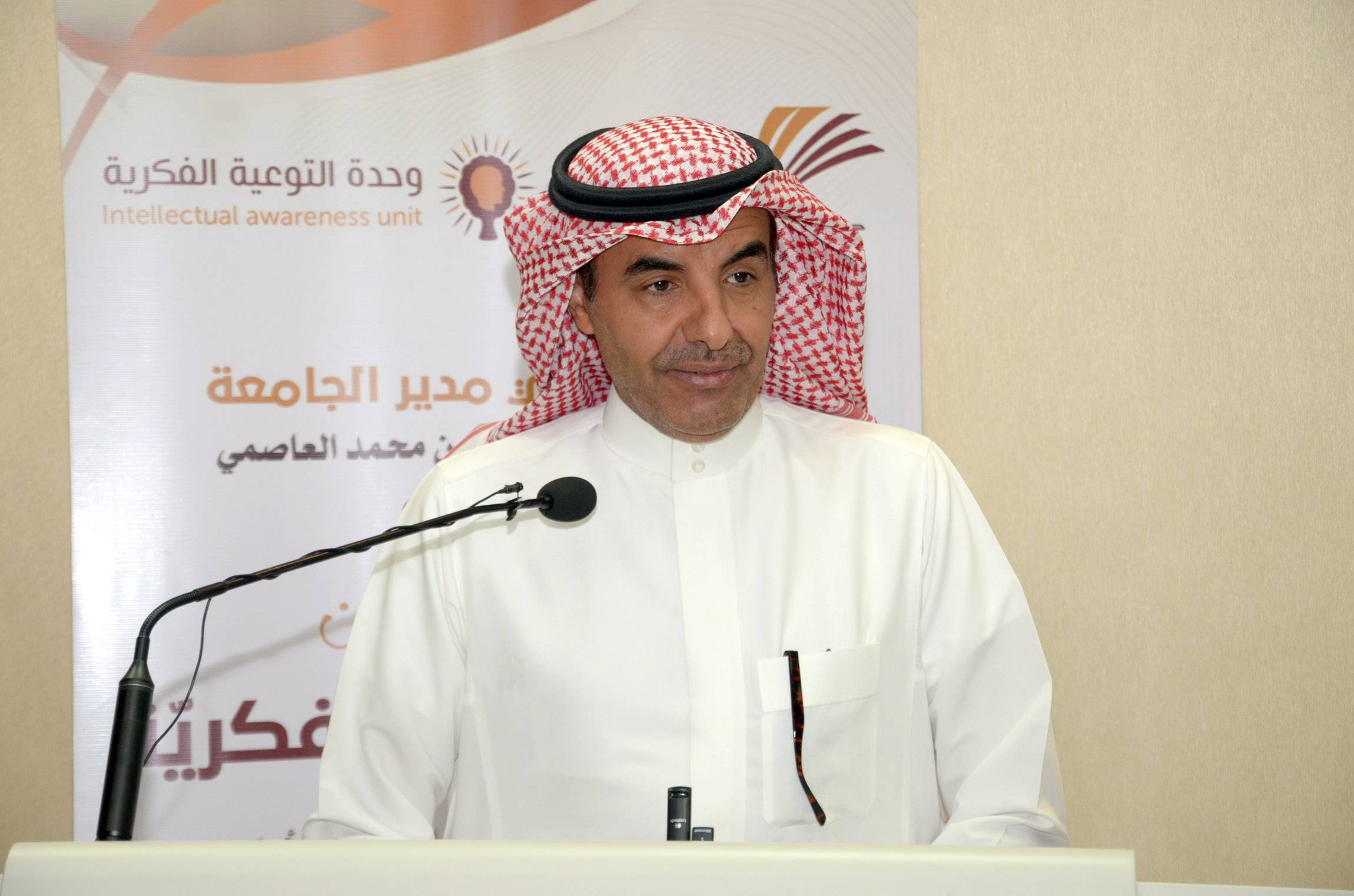 مردفًا ذلك بتقديم وافر الشكر والامتنان لمعالي مدير الجامعة الدكتور عبد الرحمن العاصمي، ولوكيل الجامعة للشؤون التعليمية والأكاديمية الدكتور عبد الرحمن الخضيري على الدعم اللامحدود والاهتمام والحرص الشديدين على إتمام وحدة التوعية الفكرية عملها، إنجاح برامجها، إيمانًا منهما بأهمية الدور الذي تلعبه الوحدة في المجتمع الجامعة.