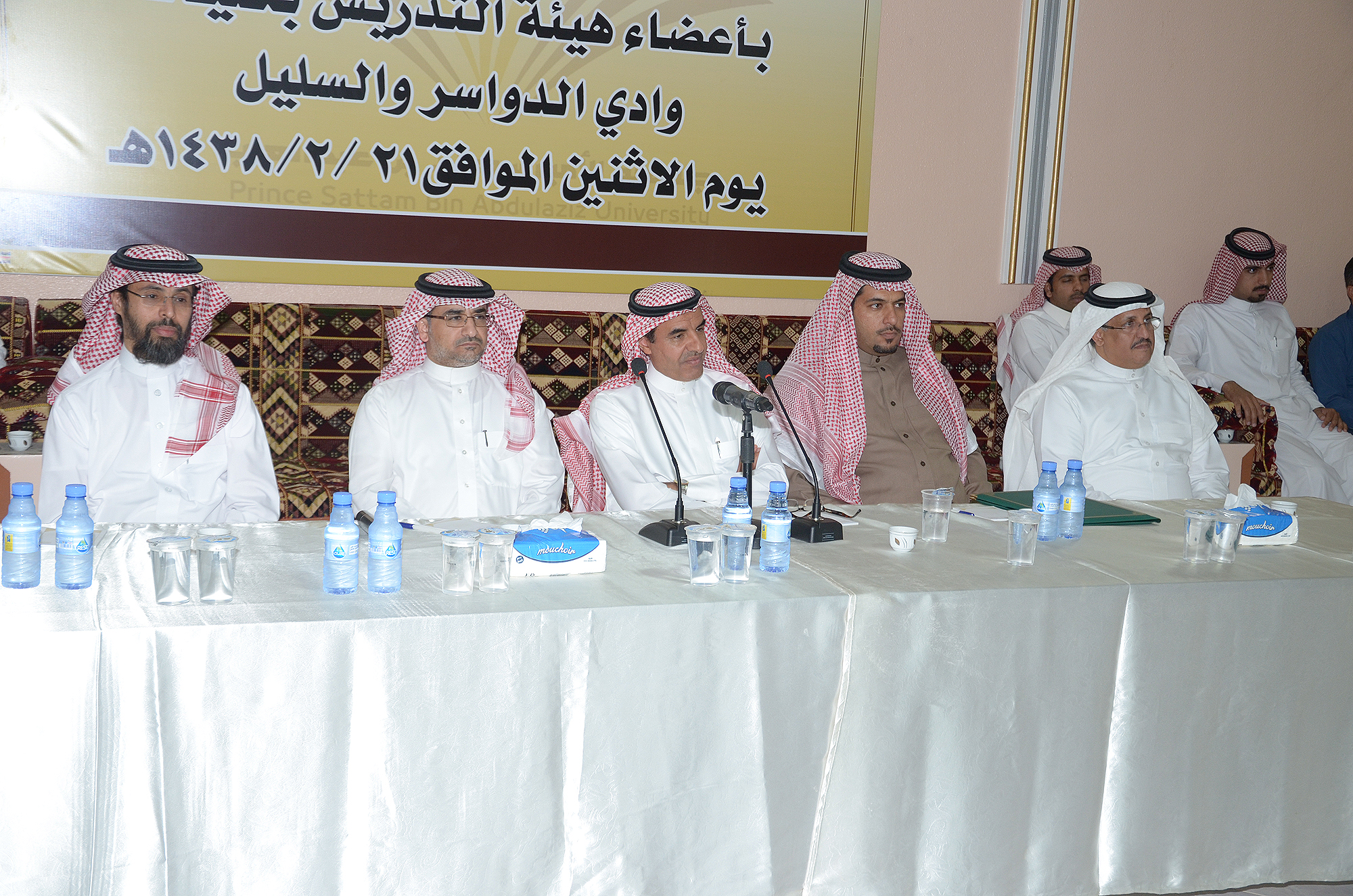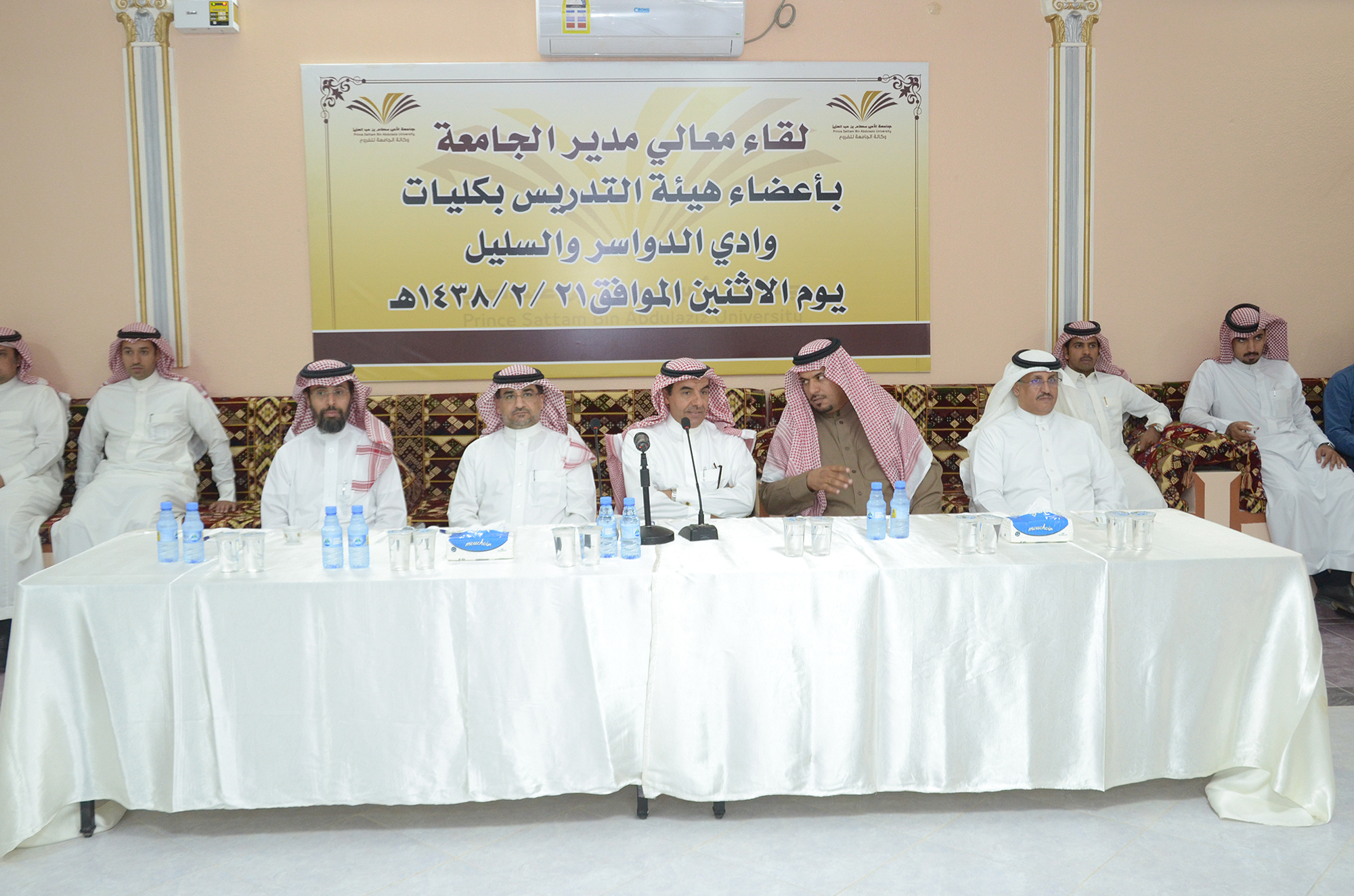 تفقد معالي مدير جامعة الأمير سطام بن عبدالعزيز، د. عبدالرحمن العاصمي مشاريع الجامعة بمحافظة وادي الدواسر والسليل حيث بدأ جولته التفقدية بزيارة لكلية التربية للبنات بوادي الدواسر ثم انتقل والوفد المرافق له لكلية الآداب والعلوم للبنات وفي نهاية اليوم الأول للزيارة التقى مدير الجامعة أعضاء هيئة التدريس في كليات الوادي والسليل وعضوات هيئة التدريس عن طريق الدائرة التلفزيونية، بدأ اللقاء بكلمة لوكيل الجامعة للفروع الدكتور عبدالله بن صقر ثم كلمة لمعالي المدير أكد خلالها على أهمية الدور الذي يقوم به عضو هيئة التدريس للنهوض بمستوى الطالب وأهمية توظيف التقنية الحديثة في العملية التعليمية وأن عضو هيئة التدريس يقع عليه العبء الأكبر في تهيئة البيئة التعليمية المتميزة داخل القاعات الدراسية مما يتطلب عليه أن يكون مثالاً للجدية والانضباط في العمل، كما أكد معاليه على أهمية الفهم الصحيح والدقيق لدور رئيس القسم الأكاديمي، والخروج به من ضيق تسيير الأعمال الإدارية بالقسم إلى سعة أرحب في تحقيق أعلى معايير الجودة للمخرج الجامعي، وفي تحسين أداء الطلاب في أثناء العملية التعليمية، وألا يتوقف تقييم الطالب عند حدود الاختبار، وإنما مهمة عضو هيئة التدريس هي ابتكار الوسائل والطرق التي تجعل طالب جامعة الأمير سطّام بن عبد العزيز ذا مهارة وكفاءة عالية، كما أشار العاصمي إلى ضرورة الاستفادة من تقنيات التدريس الحديثة، ومصادر التعلم واهتمام أعضاء هيئة التدريس بتوجيه الطلاب إلى المكتبة والاستفادة من مصادرها المتنوعة لإثراء العملية التعليمية