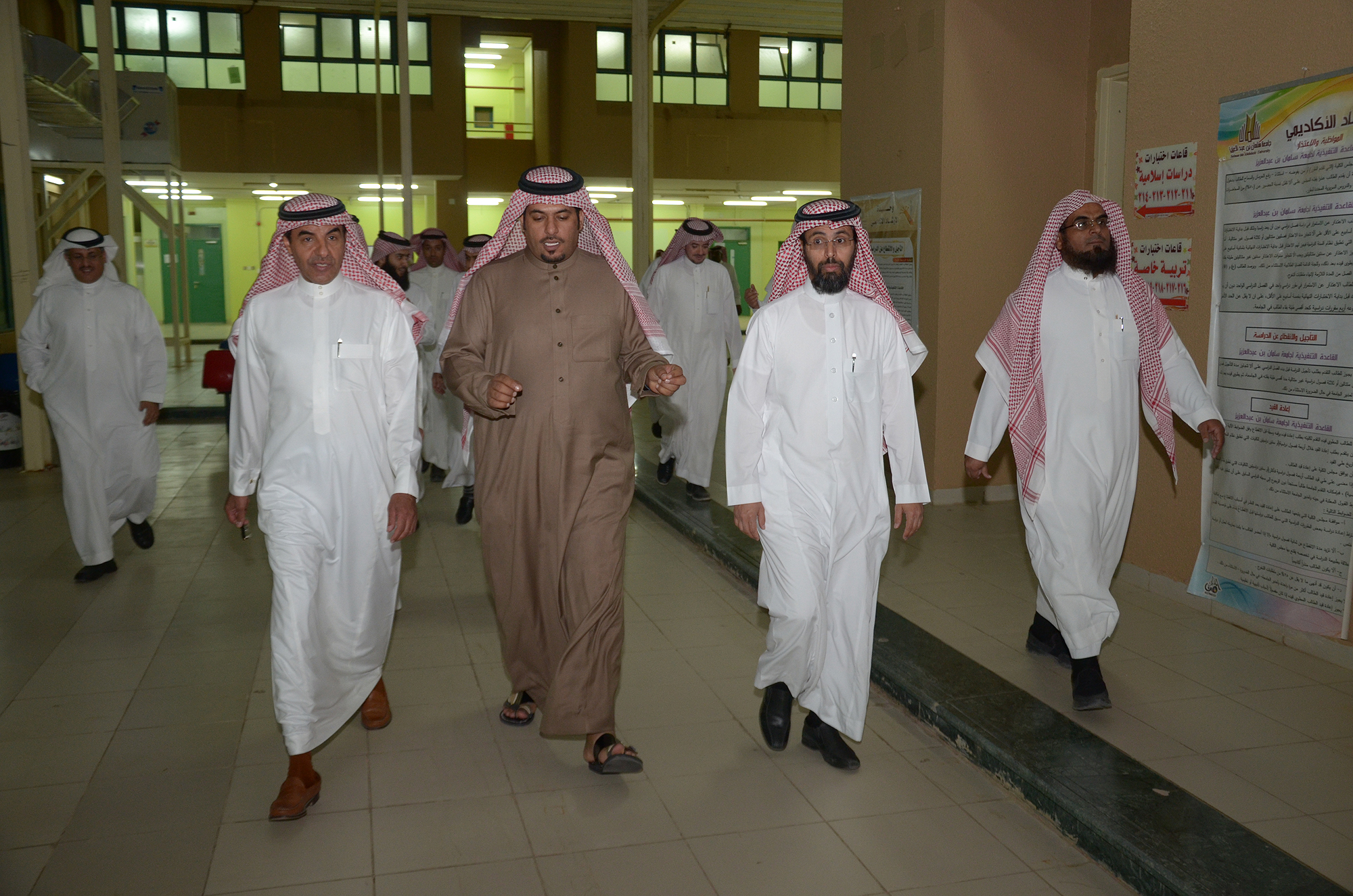وفي اليوم الثاني بدأت الجولة بزيارة لكلية الآداب والعلوم وكلية التربية للبنين والتقى خلال الجولة أبناءه الطلاب، واستمع لملاحظاتهم وآرائهم، وأكد عليهم ضرورة الجدية في طلب العلم والمثابرة حتى يحققوا أهدافهم، كما تجول في القاعات الدراسية واطلع على طرائق التدريس التي يستخدمها أعضاء هيئة التدريس بعدها انتقل الوفد لزيارة المباني العاجلة للبنات والتي تتكون من أربع كليات هي: السنة التحضيرية والعلوم الطبية التطبيقية والعلوم والدراسات الإنسانية والتربية، وتتكون كل كلية من 18 معملا و50 قاعة دراسية وثلاث قاعات أنشطة لا صفية، كما يضم مسرحًا يتسع لـ 400 طالبة تقريبًا، وكافتيريا ومكتبة حديثة، إضافة إلى 42 غرفة تستخدم كمرافق خدمية. بتكلفة تجاوزت 260 مليون ريال.