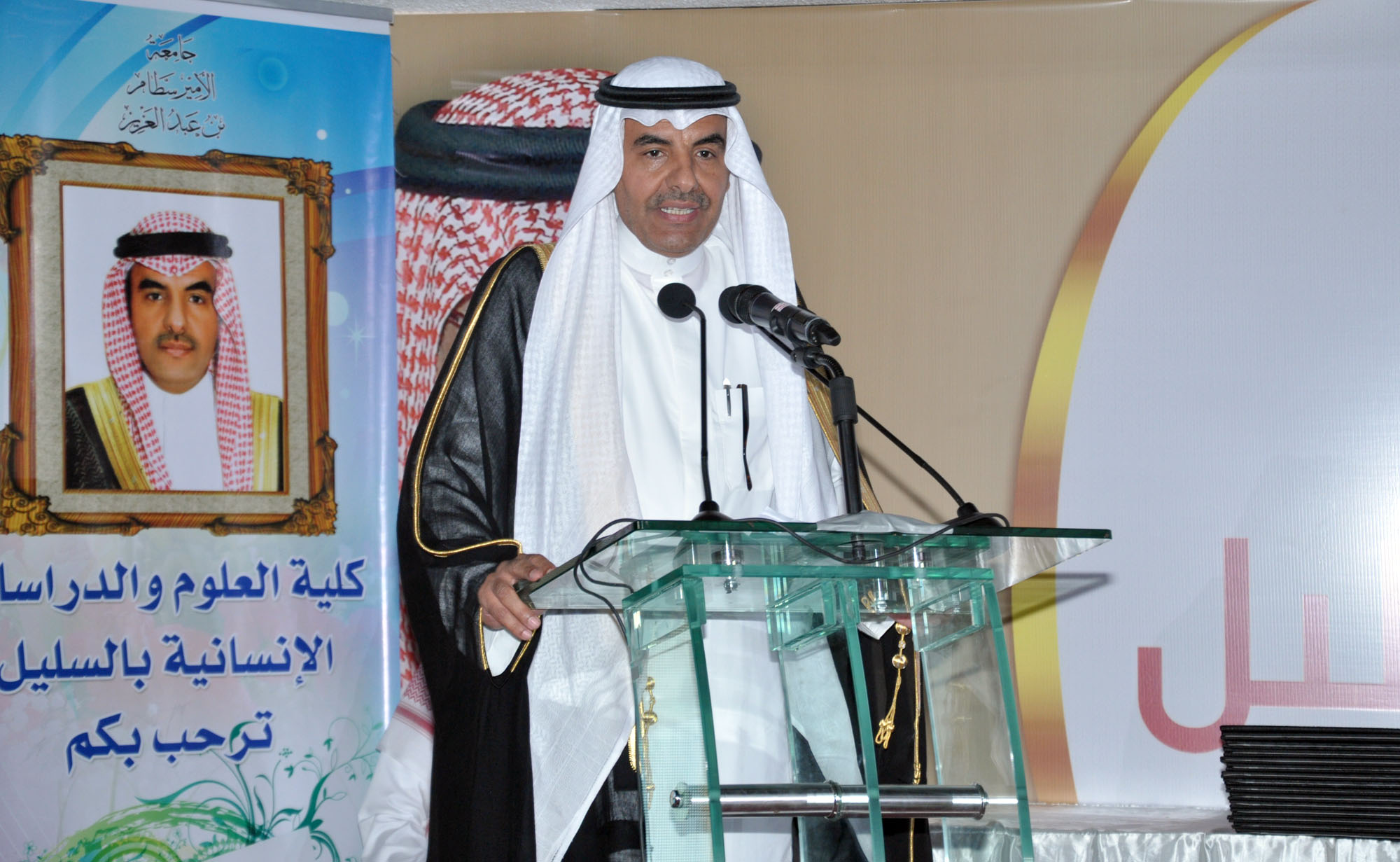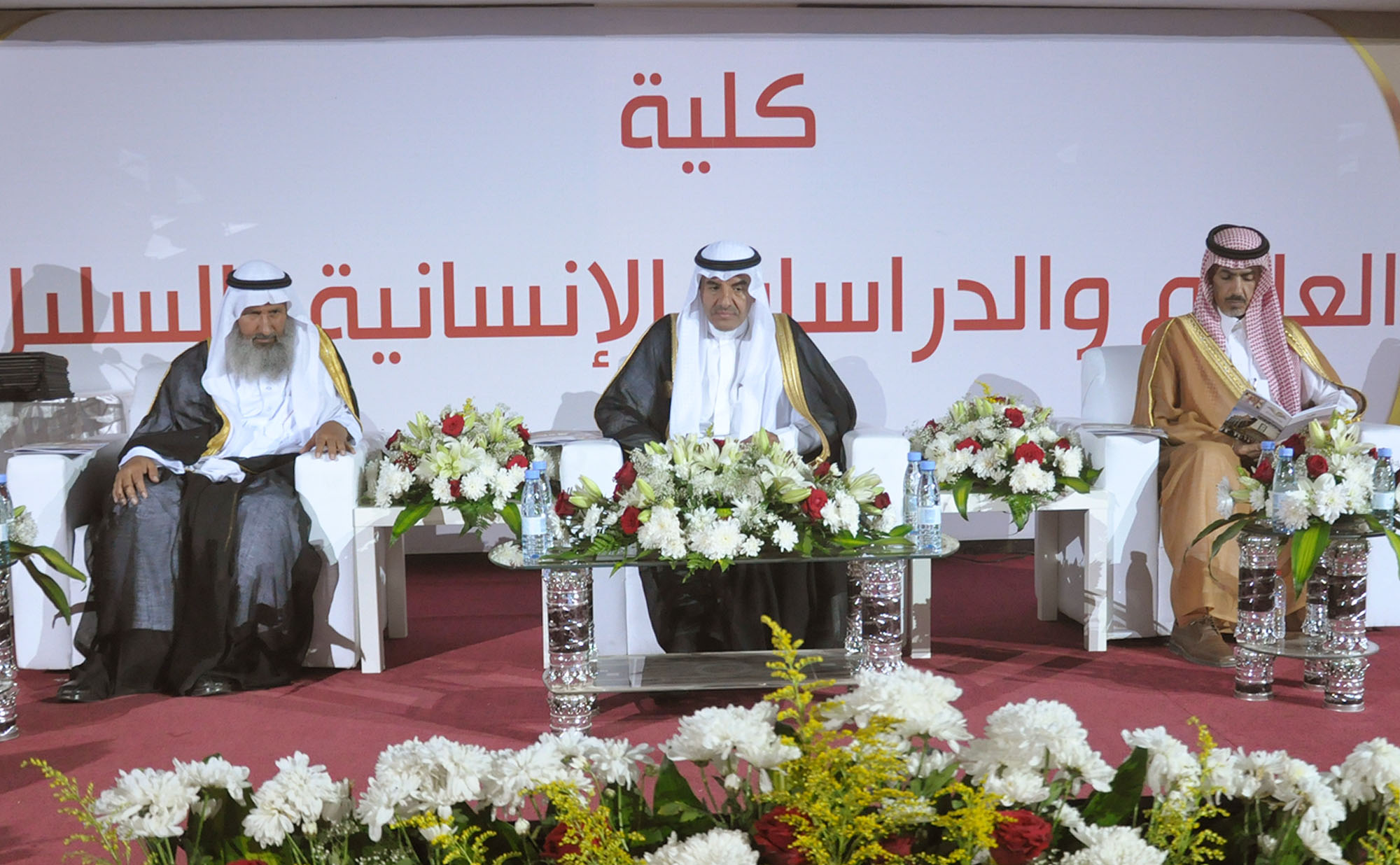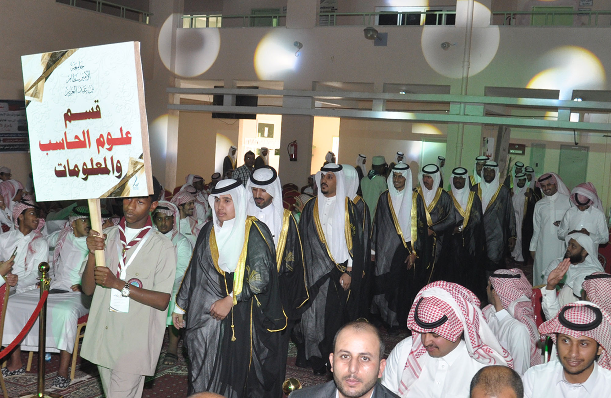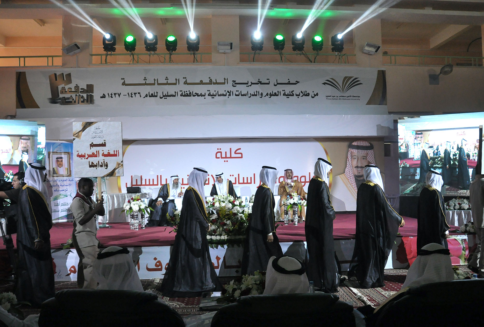 رعى مدير جامعة الأمير سطام بن عبدالعزيز الدكتور عبدالرحمن العاصمي، وبحضور محافظ السليل مساعد الماضي، وعميد الكلية الدكتور عبدالله الفالح، حفل تخريج الدفعة الثالثة من طلاب كلية العلوم والدراسات الإنسانية بالمحافظة والبالغ عددهم 210 طالبًا وطالبة، حيث أقيم حفل خطابي بهذه المناسبة بدأ بمسيرة الخريجين، تلا ذلك كلمة عميد الكلية رحب فيها بمعالي مدير الجامعة وقال: نحمد الله على أن منَّ على وطننا وطن الحزم والعزم من اتخاذ قياداتها الإسلام منهجاً لها ودستوراً، وأن هذه الجامعات والكليات المنتشرة في الوطن وتشع علماً ومعرفة ما هي إلا واحدة من المفاخر والإنجازات التي تستوجب شكر الله ثم القيادة، ثم هنأ الخريجين رجال المستقبل الذين سيسهمون في مسيرة التنمية للمملكة. منوهًا بجهود جامعة الأمير سطام بن عبدالعزيز منذ تأسيسها في خدمة الإسلام وشريعته وهذه البلاد وأهلها والمسلمين أجمعين.