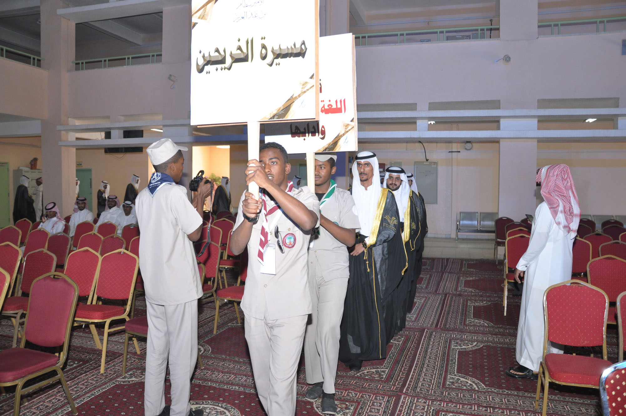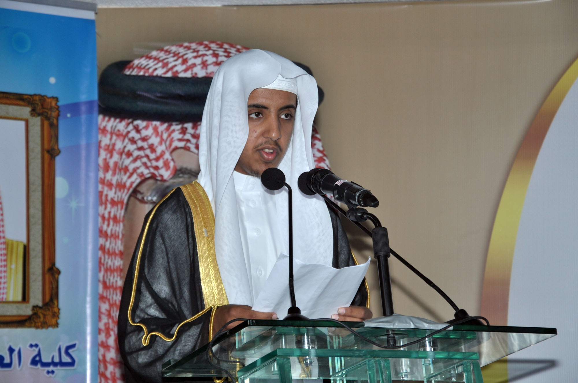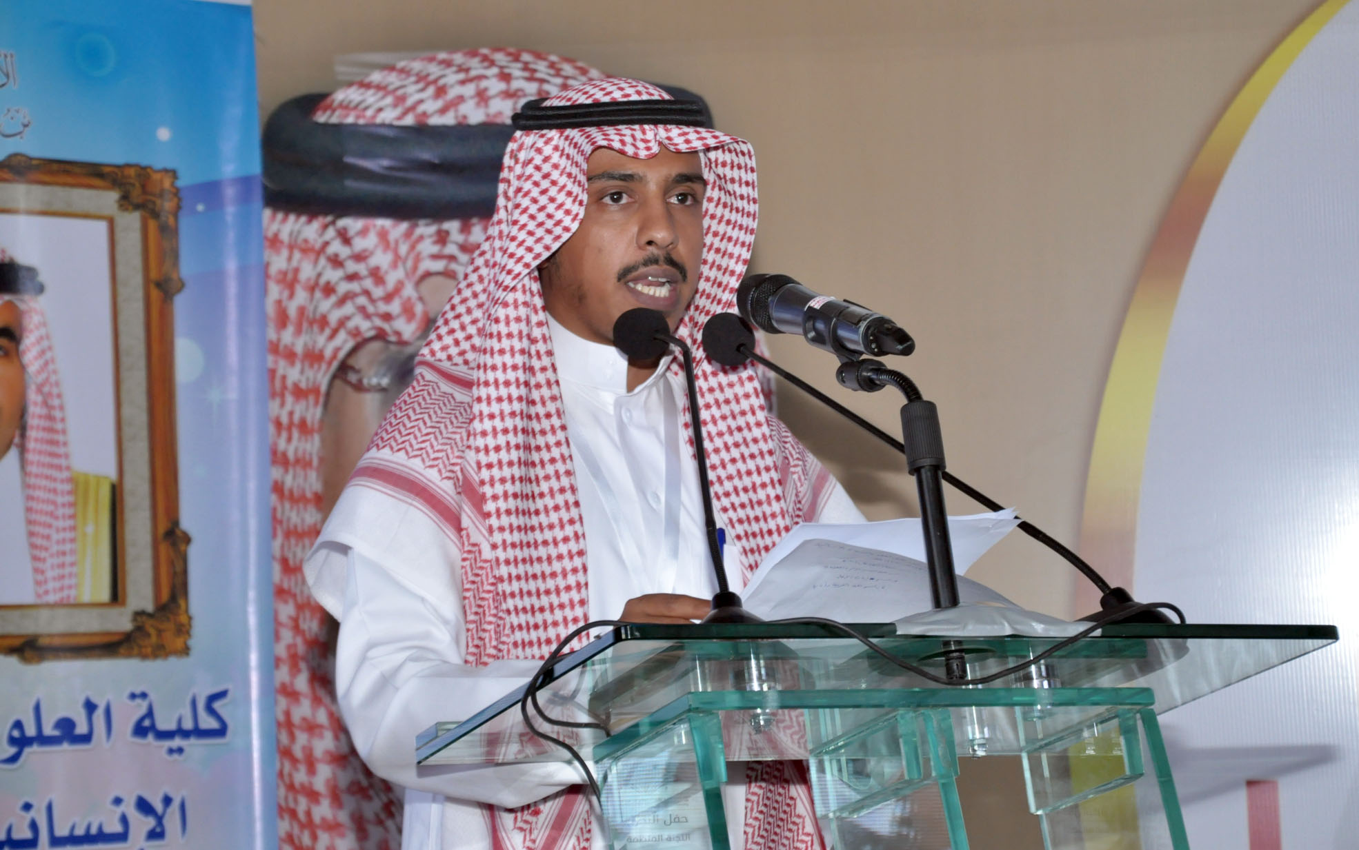وفي كلمته التي ألقاها الخريج /محمد حمود الدوسري نيابة عن زملائه الخريجين عبر فيها باسم الخريجين عن سعادتهم بتخرجهم في هذا اليوم.