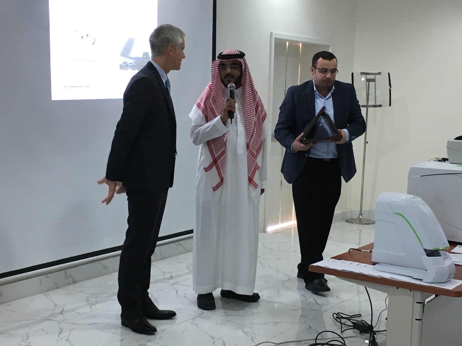 وفي الختام قام عميد الكلية بتكريم الضيف المتحدث وقدم له درعًا تذكاريًّا وشكره على الورشة العلمية القيمة وما تبعها من زيارة وتقييم ، كما شكر الخبير الأجنبي الكلية على هذه الاستضافة وعبرعن سعادته بما رأى من تجهيزات تتماشى مع المعايير الدولية للتعقيم ومكافحة العدوى .