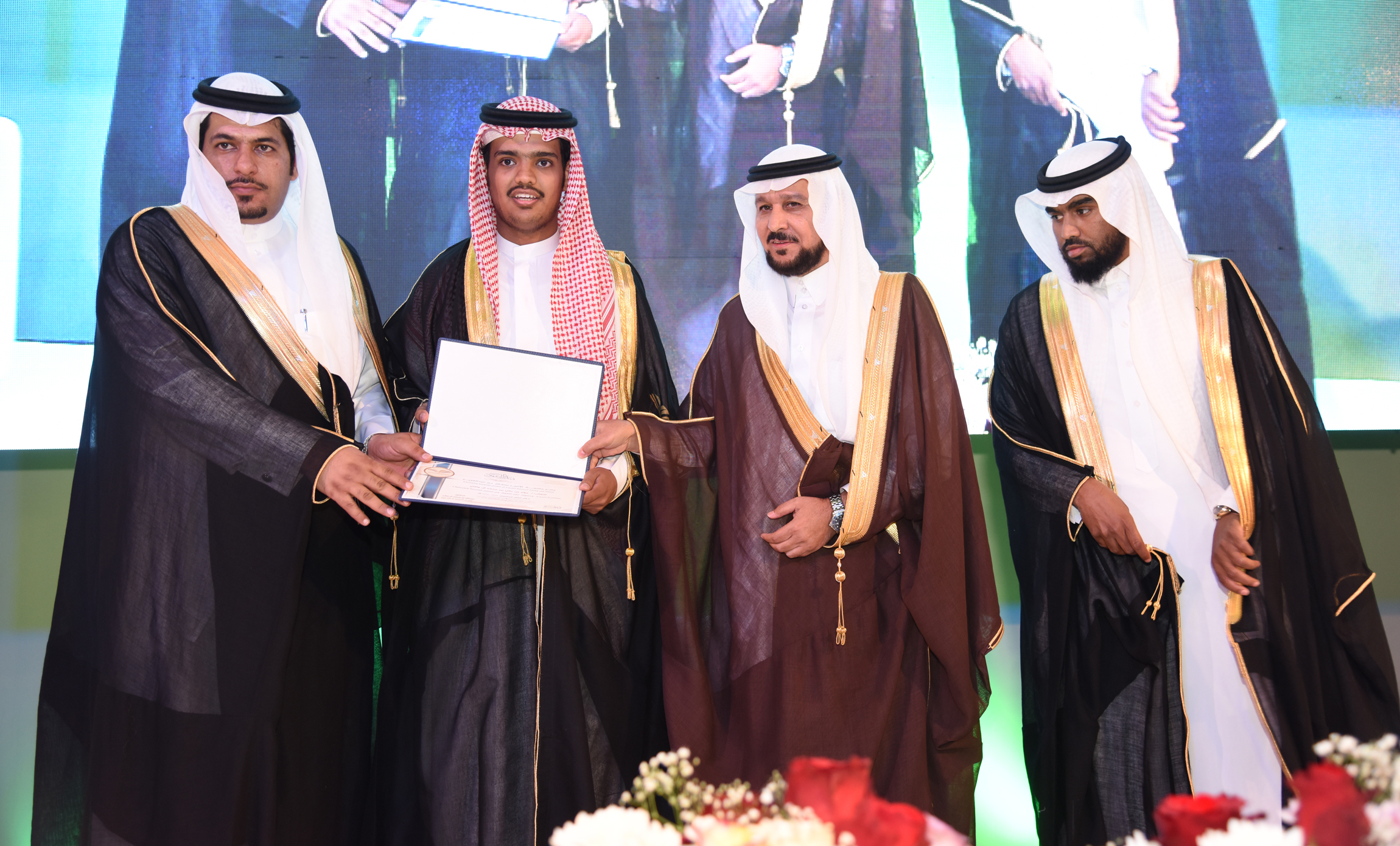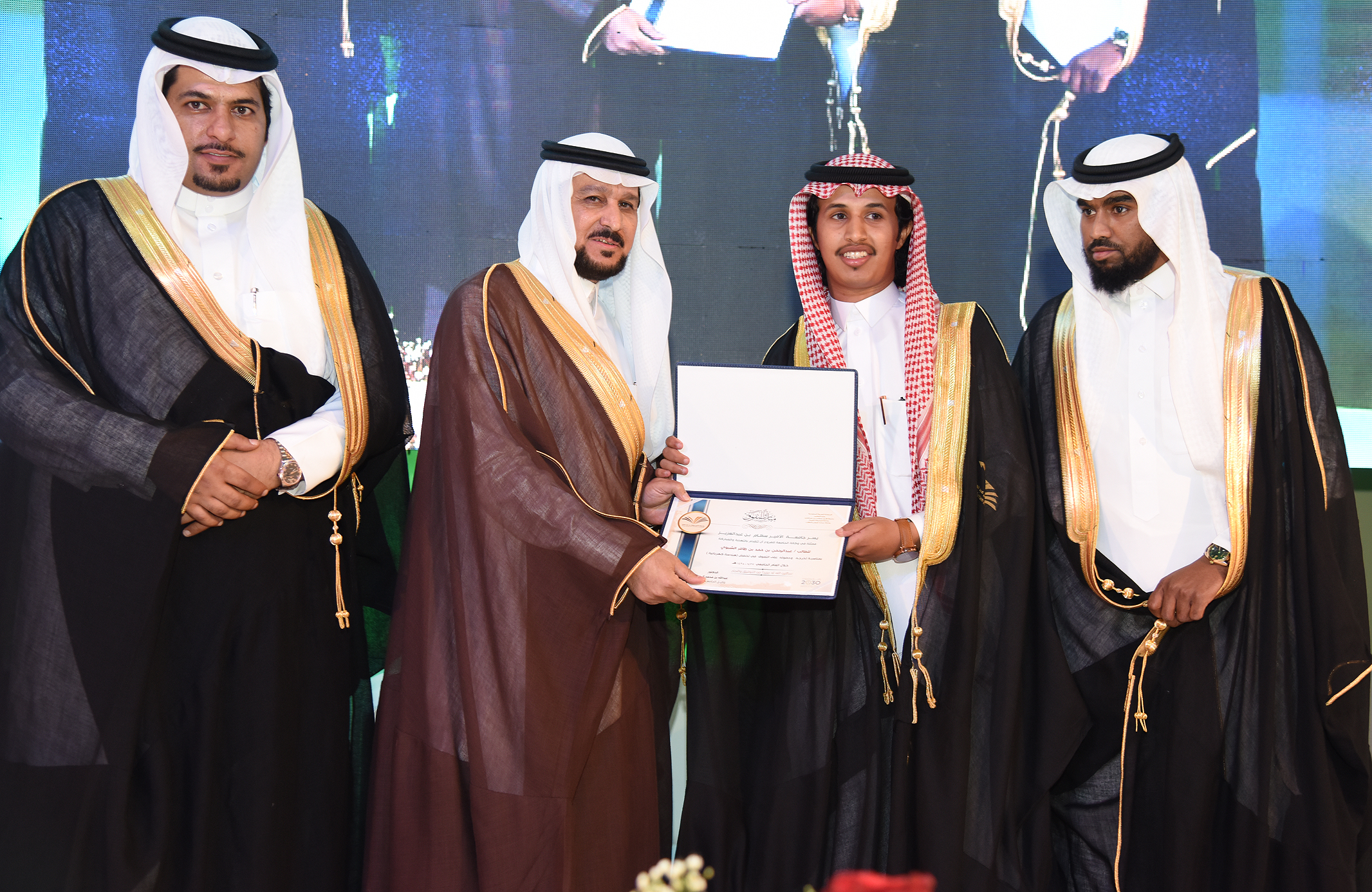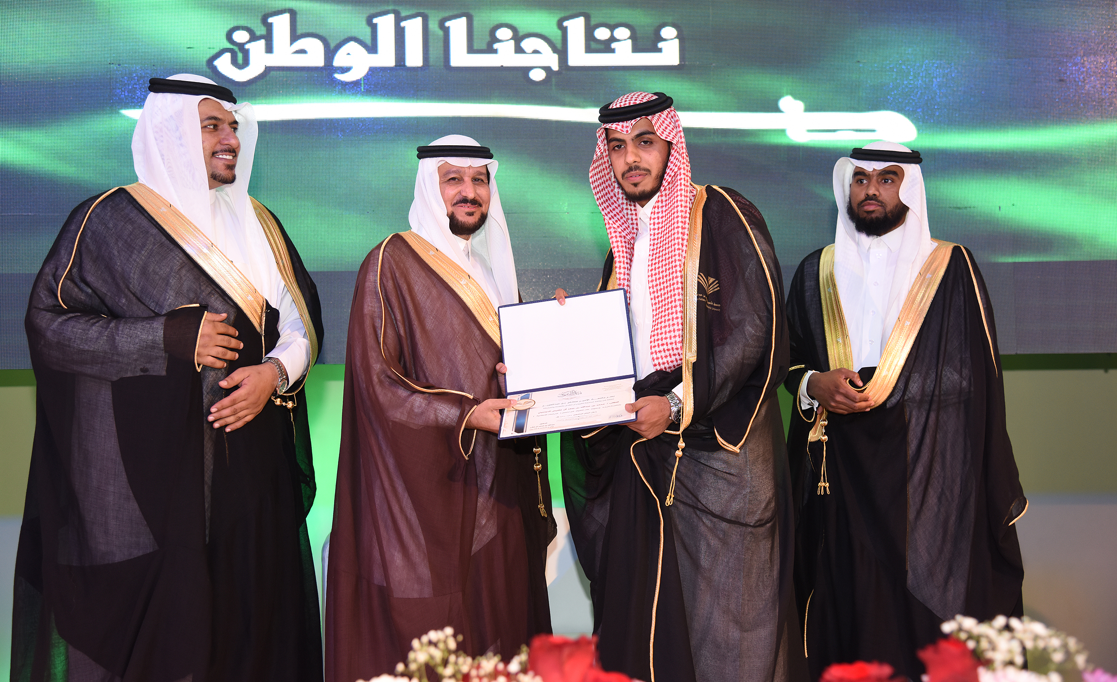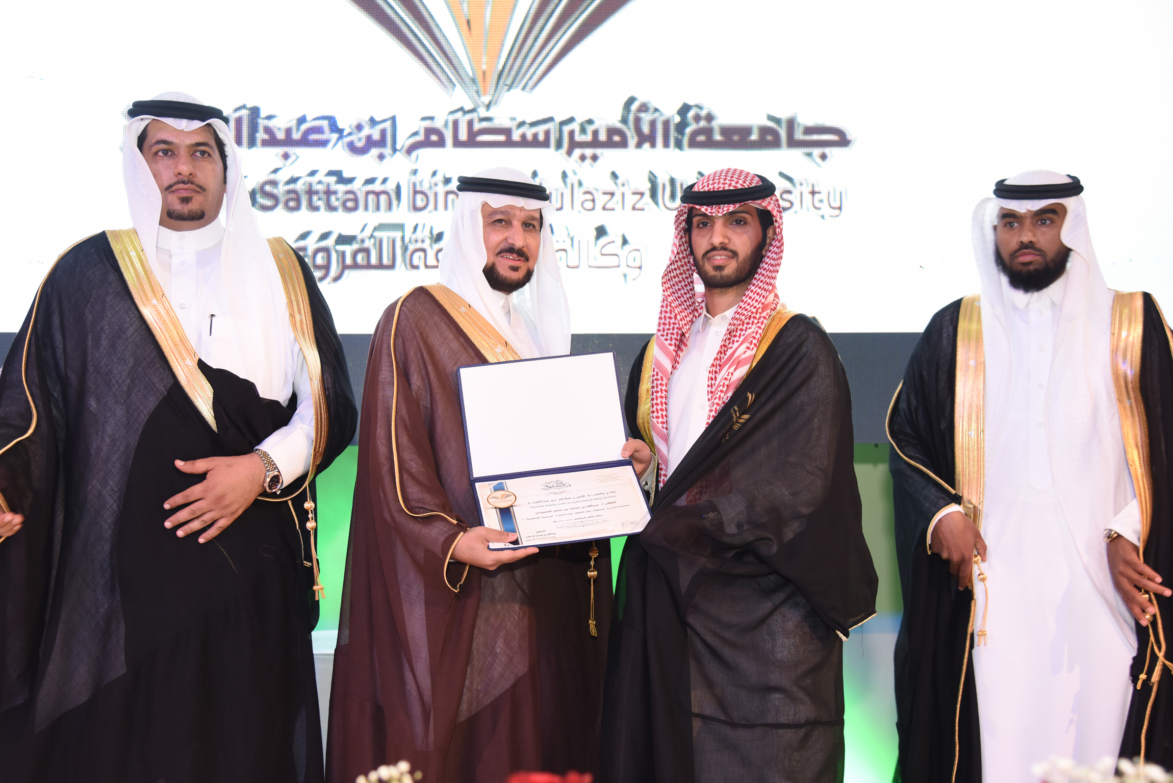 color:#333333;background:white" xml:lang="AR-SA">بعد ذلك قام مدير الجامعة الأستاذ الدكتور الحامد يرافقه وكيل الجامعة للفروع الدكتور عبد الله الصقر بتكريم40 طالبًا من المتفوقين، وافتتاح معرض (فرصة) للتثقيف والتوظيف الجامعي؛ حيث قاموا والضيوف بجولة على أركانه.