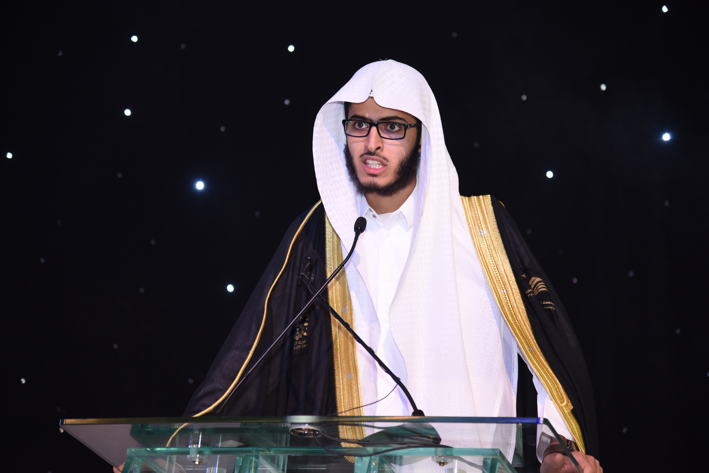 direction:rtl;unicode-bidi:embed"> font-family:"Arial","sans-serif";color:#333333;background:white" xml:lang="AR-SA">استهل الحفل بمسيرة الخريجين، ثم تلاوة آيات من الذكر الحكيم، ثمّ ألقى بعد ذلك وكيل الجامعة للفروع الدكتور عبد الله بن محمد الصقر، كلمة أكد فيها أن سحائب التبريك تملأ أفق الاحتفال تلك الليلة بمزيد من الابتهاج اللائق بهذه المناسبة التي تشهد هذه القطوف الدانية تنافس لدخول نوافذ مضيئة من البذل الوفي لخدمة وطن وقادة يبادلونهم الولاء بالولاء، والوفاء بالوفاء، لمستقبل مفاتيحه بينهم، وأن على الخريجين الانطلاق والتحليق والارتقاء لوطن وأمة هي بانتظار سواعدهم في البناء، مقدمًا التبريكات والتهنئات لأولياء الأمور وأسر الخريجين، الذين حان الوقت أن يرد لهم الجميل وعظيم الوفاء وكريم السخاء، ورفع في ختام كلمته أكف الدعاء لولاة أمرنا وقادة بلدنا بالتأييد والنصر والتمكين والرفعة والعلو ودوام الأمن والأمان والرخاء والاستقرار والسمو والازدهار. font-family:"Arial","sans-serif";color:#333333;background:white">