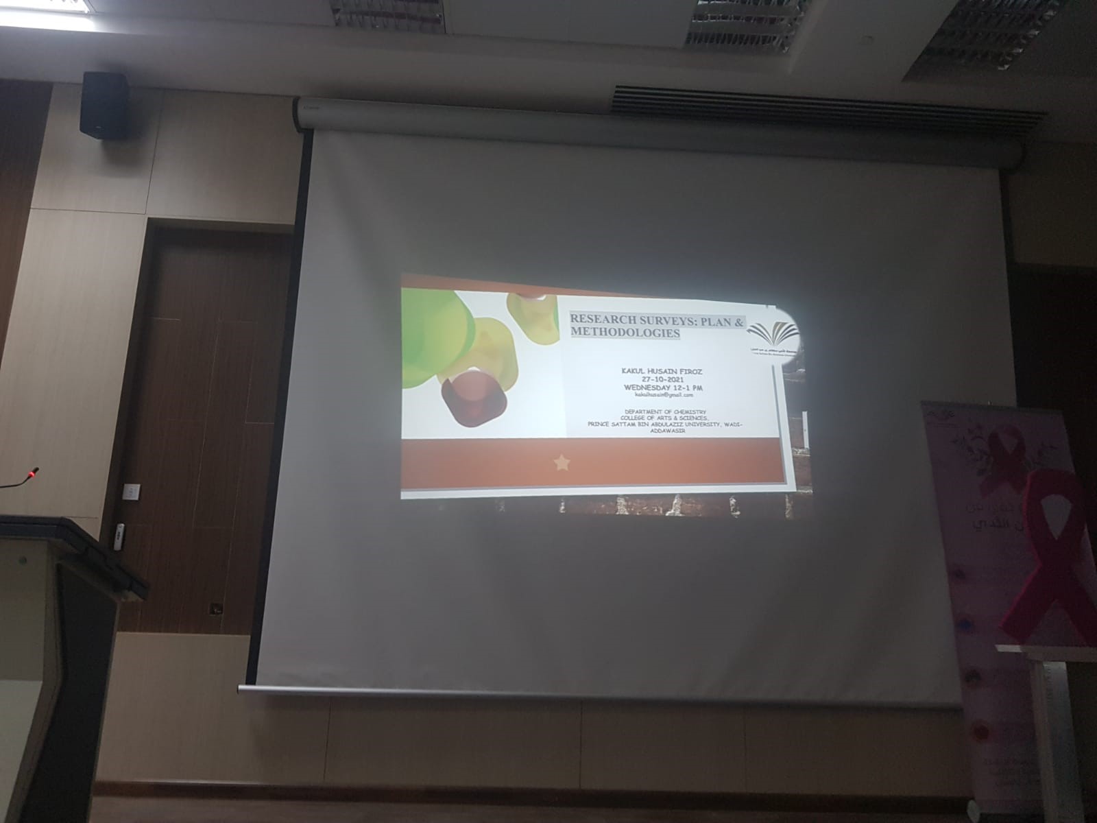 قامت بإعداد الورشة وتقديمها د.كاكل حسين فيروز أستاذ مساعد بقسم الكيمياء وكانت الفئة المستهدفة هي طالبات الكلية خصوصا طالبات قسم الكيمياء، من خلال عرض البوربوينت، ناقشت الدكتورة الدراسة الاستقصائية للبحوث وكذلك خطط بحوث الكيمياء.