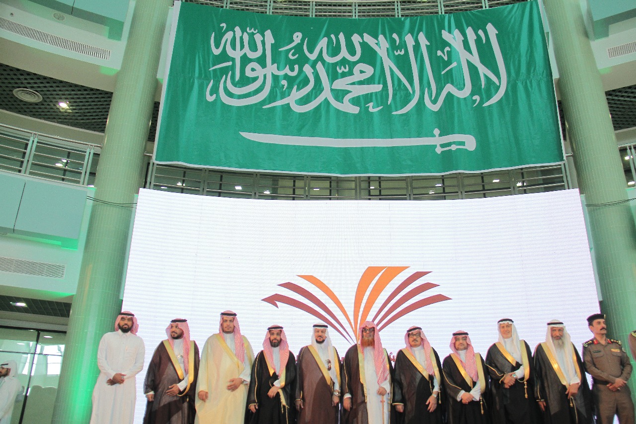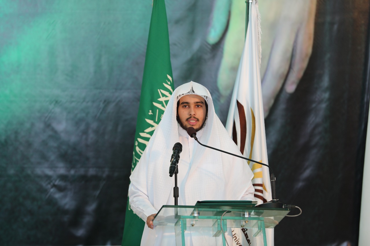 تلا ذلك كلمة لمعالي مدير الجامعة الأستاذ الدكتور عبدالعزيز الحامد تحدث فيها عن ذكرى اليوم الوطني الذي يعد يوماً استثنائياً لكافة الشعب السعودي؛ تمت فيه الوحدة والتوحيد والأمن والاستقرار على يد الملك المؤسس -طيب الله ثراه-، ومواصلة أبنائه الملوك مسيرته حتى أصبحت المملكة العربية السعودية في مراكز الصدارة بين دول العالم، إذ تشكل ثقلا عالميا، وتحتل مكانة مرموقة في الاقتصاد العالمي.