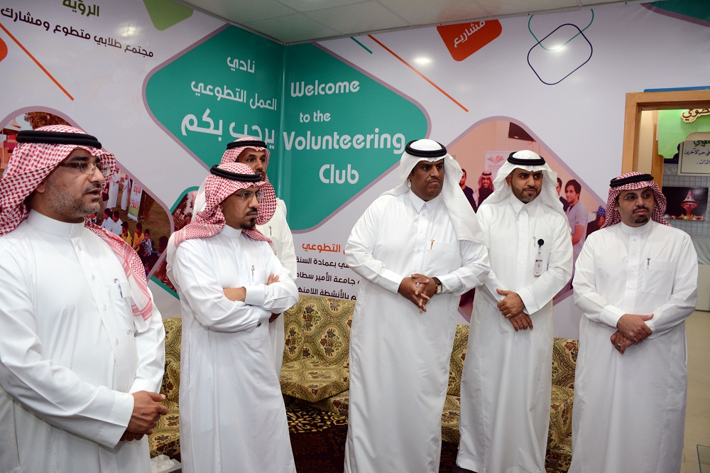 كما قام سعادته والوفد المرافق بجولة شملت الأندية الطلابية ، فبدأت بمقر نادي العمل التطوعي وقام سعادة الدكتور أحمد العليوي بإطلاعهم على عرض مرئي لمنجزات النادي خلال العام الدراسي 1437/1438هـ . ثم عرج إلى معرض النادي الذي احتوى على صور لأهم المشاريع التي قام بها أعضاء النادي ودورها في تقديم المساعدة لخدمة المجتمع ومن ثم المملكة وما يتوافق مع رؤيتها المستقبلية 2030 .