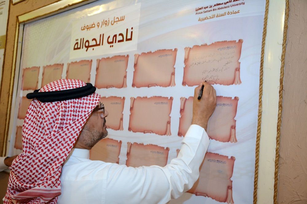 حظيت عمادة السنة التحضيرية خلال استضافتها لسعادة وكيل الجامعة للشؤون التعليمية والأكاديمية الدكتور عبد الرحمن بن إبراهيم الخضيري المتزامنة مع افتتاح فعاليات برنامج تخصصك بتدشين مركز مصادر التعلم من قِبل سعادته ويرافقه عدد من عمداء الكليات ووكلائها حيث كان في استقبالهم الدكتور مشاري بن عياد العصيمي عميد عمادة السنة التحضيرية والدكتور أحمد بن سليمان العليوي وكيل العمادة للشؤون التعليمية والأكاديمية وبعض منسوبي العمادة ، حيث اطلع سعادته والوفد المرافق له على مقر المركز وتعرفوا على رؤيته المتمثلة في توفير بيئة تعليمية تمكن كل من المتعلمين والباحثين والتربويين من استخدام التكنولوجيا من أجل بناء جيل واع . كما استمع سعادته ومرافقوه من القائمين على المركز إلى الأهداف والخدمات التي يوفرها مركز مصادر التعلم .