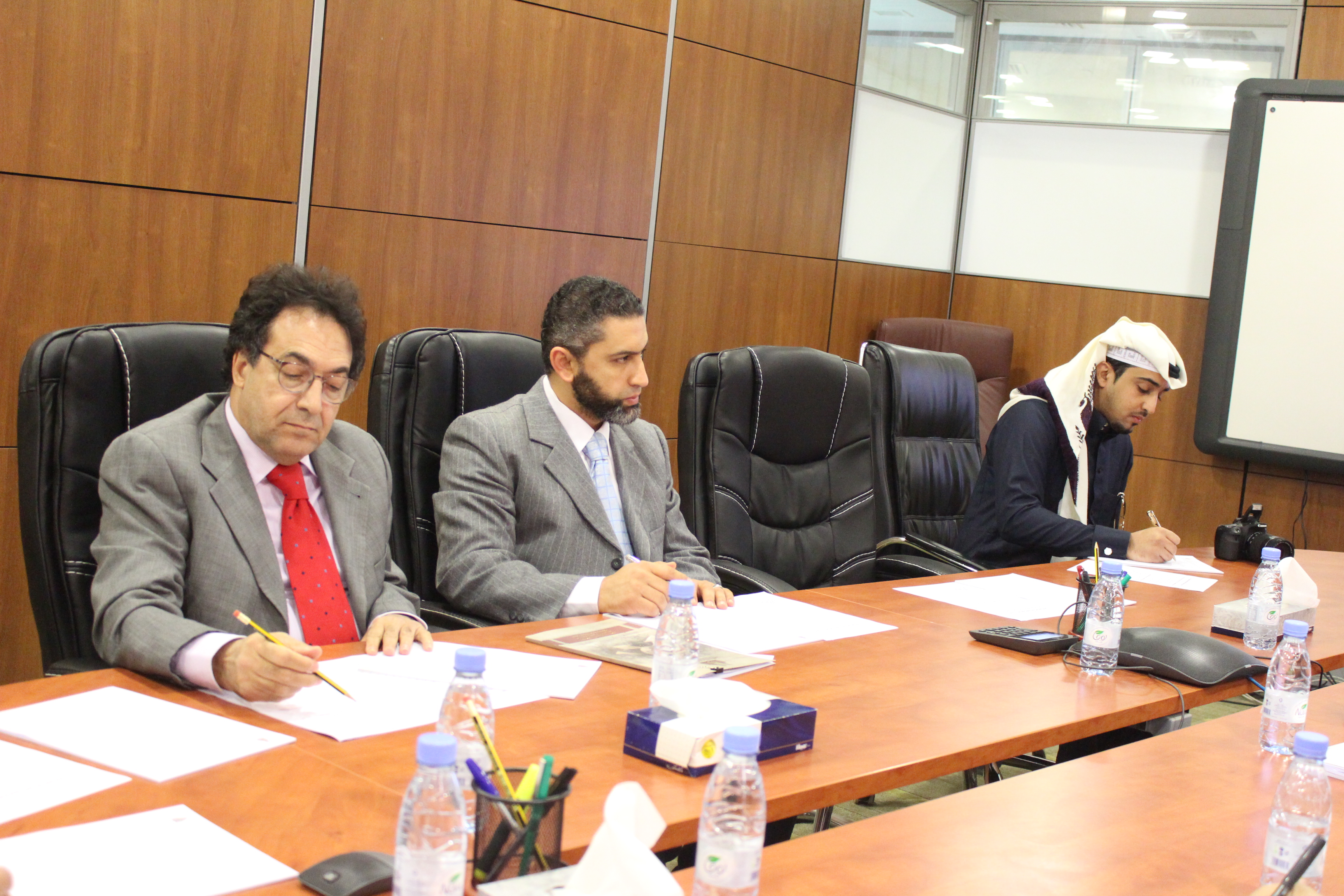 التقى فريق متابعة تنفيذ الهدف الاستراتيجي الثالث "تطوير التعليم وتوفير بيئة تعلم جاذبة" برئاسة سعادة الدكتور/ عبد الرحمن بن إبراهيم الخضيري وكيل الجامعة للشؤون التعليمية والأكاديمية أعضاء مركز التخطيط الاستراتيجي والدراسات المستقبلية بوكالة الجامعة للشؤون التعليمية والأكاديمية وذلك لمناقشة مؤشرات الأداء المقترحة من قِبَل الفريق لكل من الهدف التنفيذي (3-1-: تطوير البرامج الأكاديمية بما يفي بمتطلبات الجودة والاعتماد الأكاديمي) والهدف التنفيذي (3 ـــ 4 : تطوير برامج وتقنيات التعليم الإلكتروني ) ، وذلك تمهيدًا لاعتماد تلك المؤشرات بشكل نهائي من قِبَلْ اللجنة العليا للخطة الاستراتيجية بالجامعة ، وقد أوصى الحضور بأهمية عقد لقاء آخر لاستكمال المناقشات حول مؤشرات الأداء المقترحة ، وقد قدَّمَ أعضاء الفريق شكرهم وتقديرهم لأعضاء المركز على حضورهم للوكالة للقاء الفريق وعلى ما يقدمونه من استشارات وآراء تعمل على إثراء المقترحات المطروحة وبما يحقق الأهداف المنشودة من الخطة الاستراتيجية .