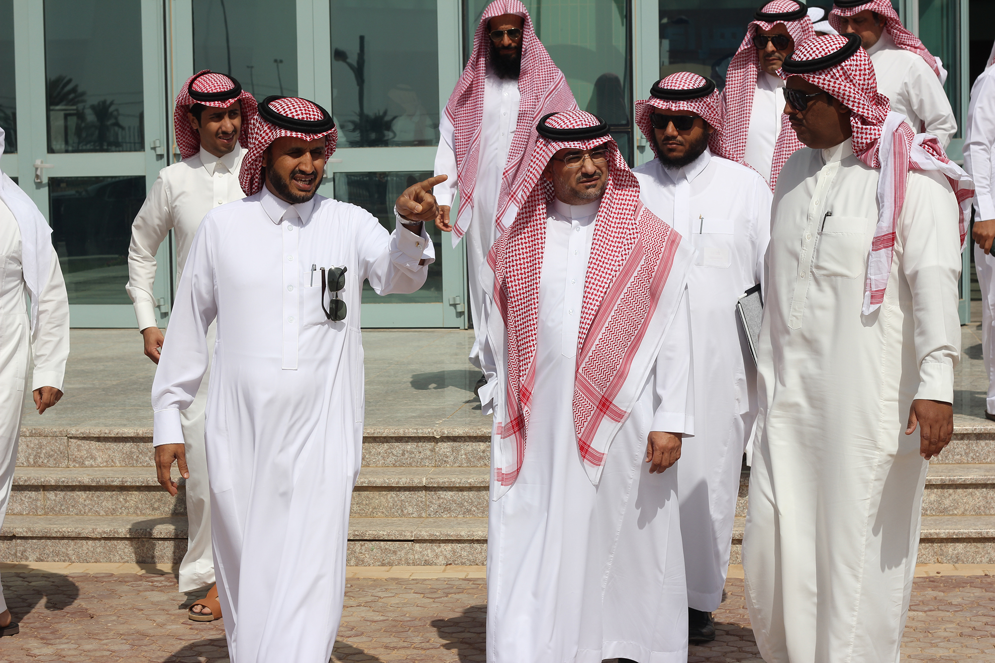 حيث استقبله فور وصوله عميد كلية العلوم والدراسات الإنسانية الدكتور مسفر بن محماس الكبيري، ووكلاء الكلية، وأعضاء هيئة التدريس.
