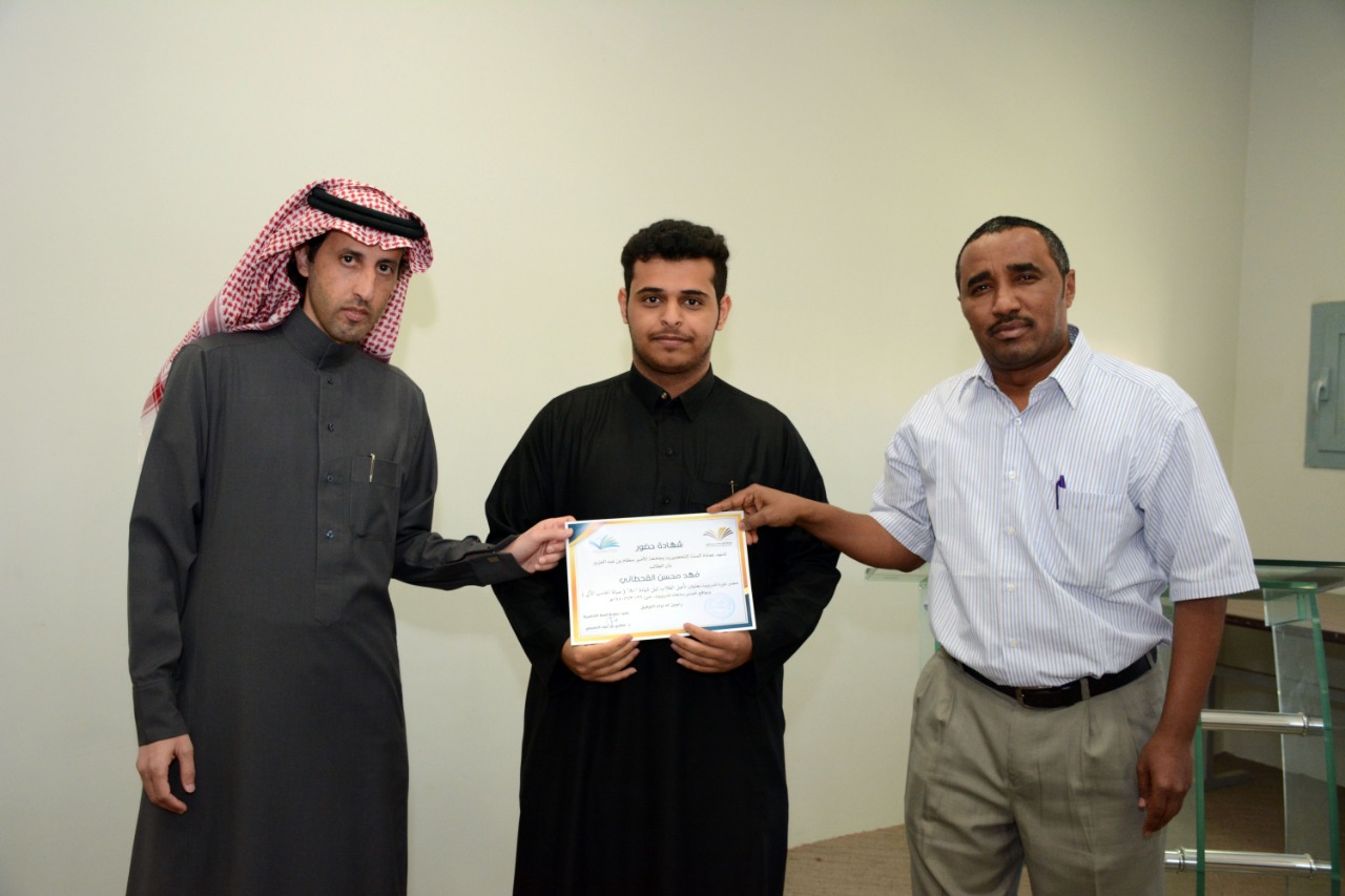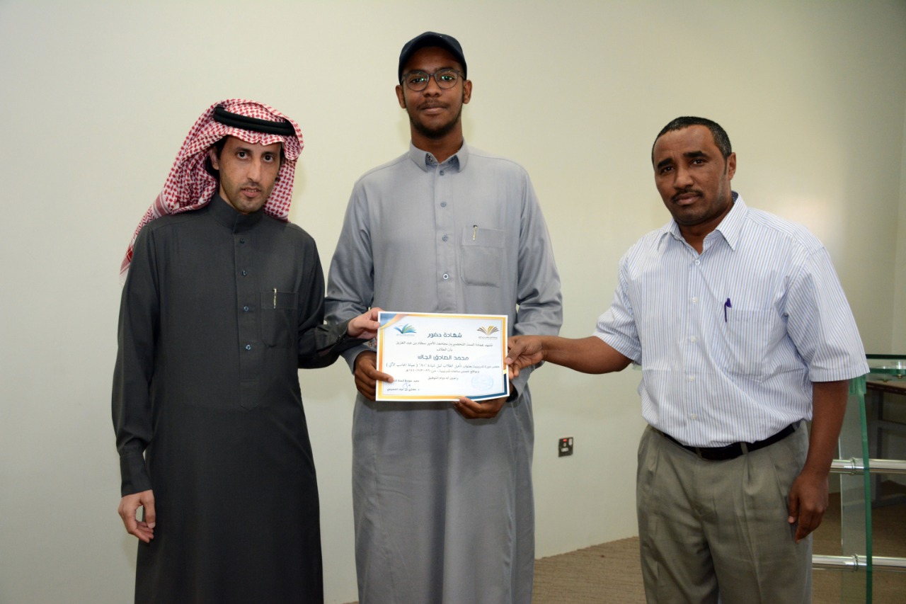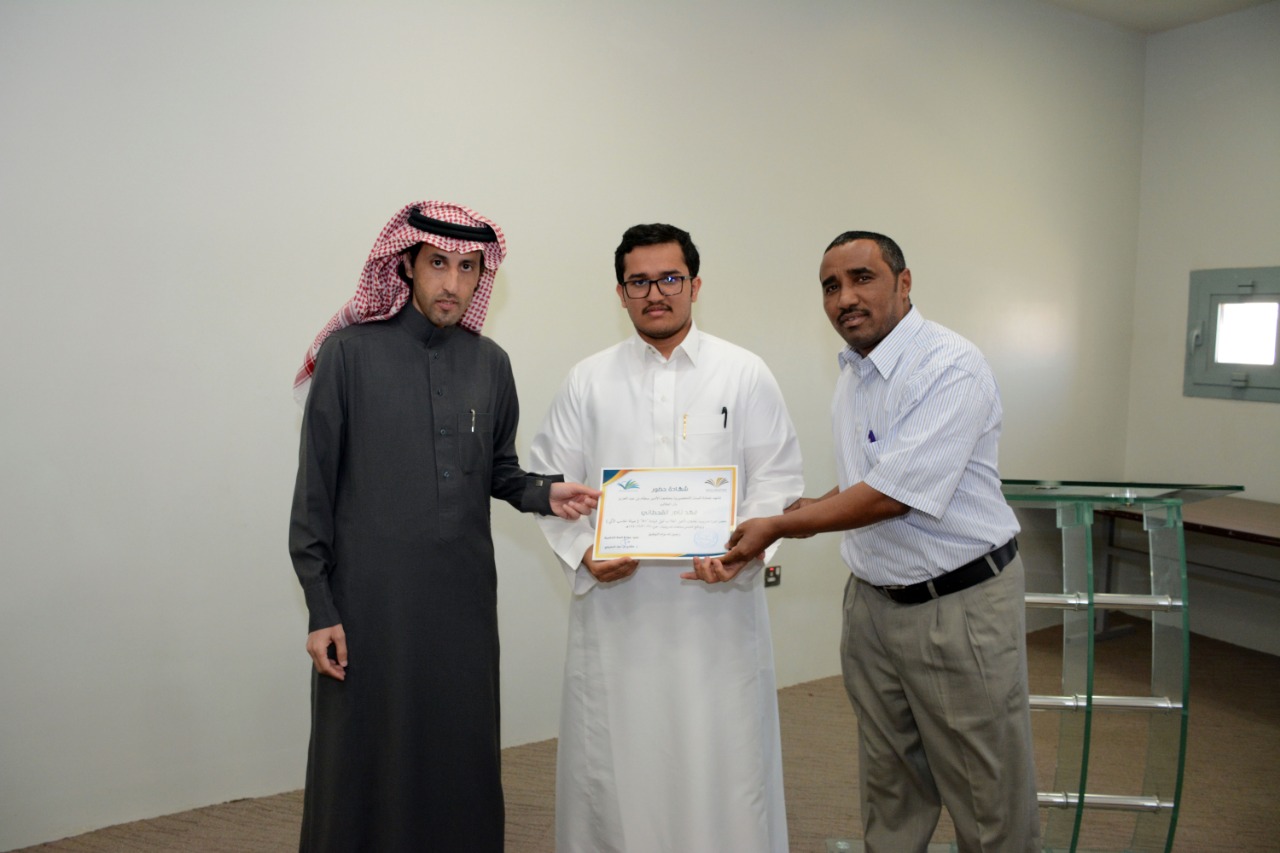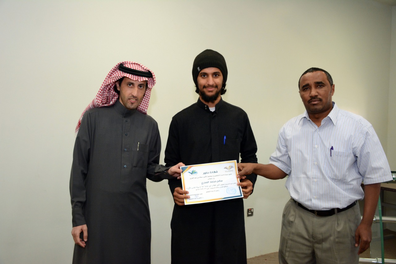 في ختام الدورة التدريبية : تأهيل الطلاب لنيل شهادة "+A" ( صيانة الحاسب الآلي )، كرّم وكيل العمادة الدكتور فهد بن شهيل العلوي اليوم الخميس: 30/6/1440هـ الطلاب الحاضرين للدورة ، وكان ذلك عقب عقب كلمة وجهها لهم شاكرا إياهم على حرصهم على حضور مثل هذه الدورات التي تقيمها العمادة والتي تخدم الطالب في مسيرته العلمية والمهنية ، مؤكدا على ضرورة الاستفادة من جميع الدورات وورش العمل والمحاضرات التي تعقدها الوحدات التعليمية بالتنسيق مع وحدة الأنشطة الطلابية في العمادة ،والتي ستنعكس على مستقبلهم العلمي بمشيئة الله تعالى. كما تقدم بشكرة لوحدة الحاسب وتطوير الذات بالعمادة وللقائمين عليها اختيارهم لهذه الدورة ، وتفضل مشكورا بتوزيع الشهادات على جميع الطلاب الحاضرين للدورة.