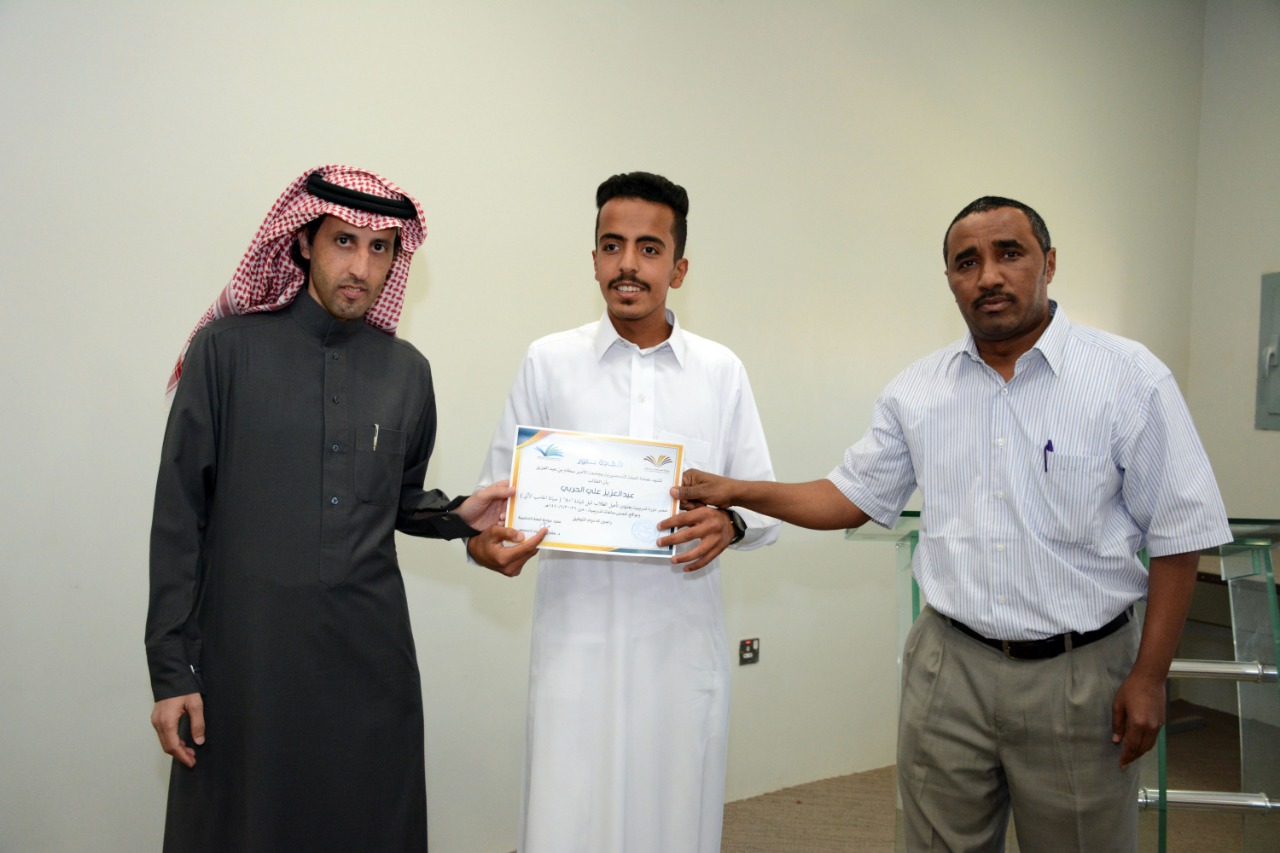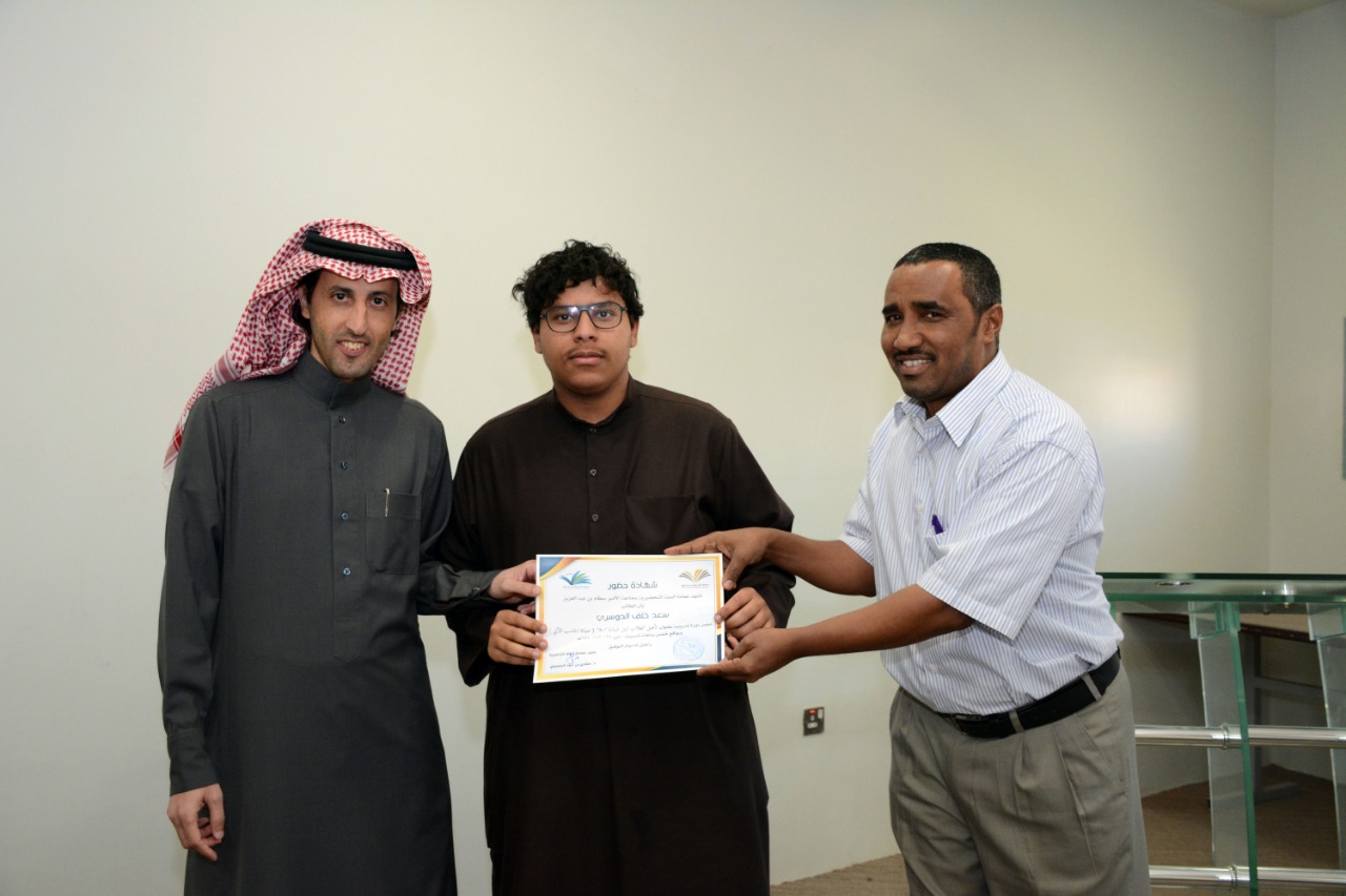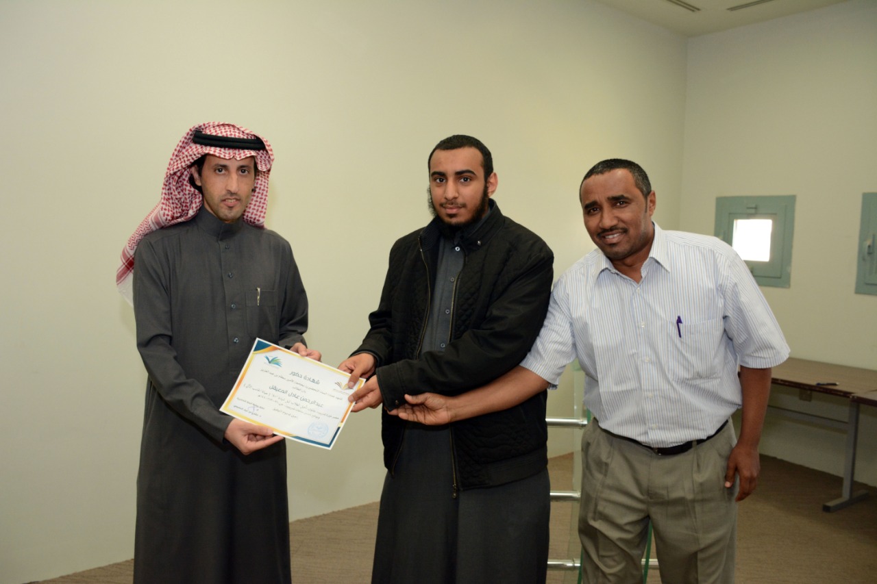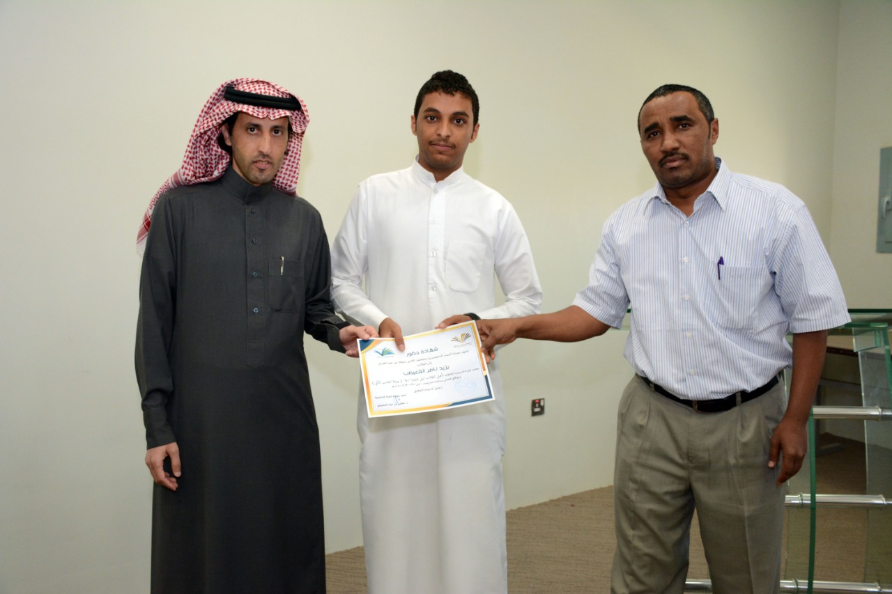 في ختام الدورة التدريبية : تأهيل الطلاب لنيل شهادة "+A" ( صيانة الحاسب الآلي )، كرّم وكيل العمادة الدكتور فهد بن شهيل العلوي اليوم الخميس: 30/6/1440هـ الطلاب الحاضرين للدورة ، وكان ذلك عقب عقب كلمة وجهها لهم شاكرا إياهم على حرصهم على حضور مثل هذه الدورات التي تقيمها العمادة والتي تخدم الطالب في مسيرته العلمية والمهنية ، مؤكدا على ضرورة الاستفادة من جميع الدورات وورش العمل والمحاضرات التي تعقدها الوحدات التعليمية بالتنسيق مع وحدة الأنشطة الطلابية في العمادة ،والتي ستنعكس على مستقبلهم العلمي بمشيئة الله تعالى. كما تقدم بشكرة لوحدة الحاسب وتطوير الذات بالعمادة وللقائمين عليها اختيارهم لهذه الدورة ، وتفضل مشكورا بتوزيع الشهادات على جميع الطلاب الحاضرين للدورة.