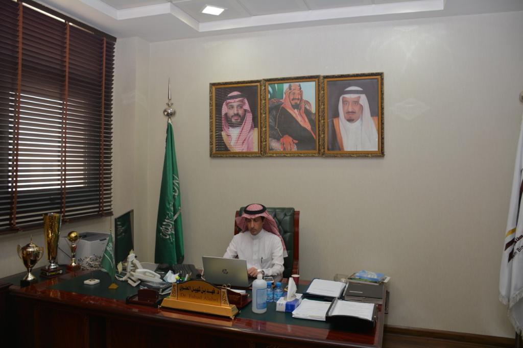 نيابة عن معالي رئيس الجامعة الأستاذ الدكتور عبدالعزيز بن عبد الله الحامد ، رعى سعادة وكيل الجامعة للشؤون التعليمية والأكاديمية الدكتور مشاري بن عياد العصيمي افتتاح فعاليات برنامج 'تخصصك' افتراضيا بحضور عدد من أصحاب السعادة عمداء الكليات والعمادات المساندة ووكلائها ، اليوم الاثنين : 2 / 8 / 1442هـ.