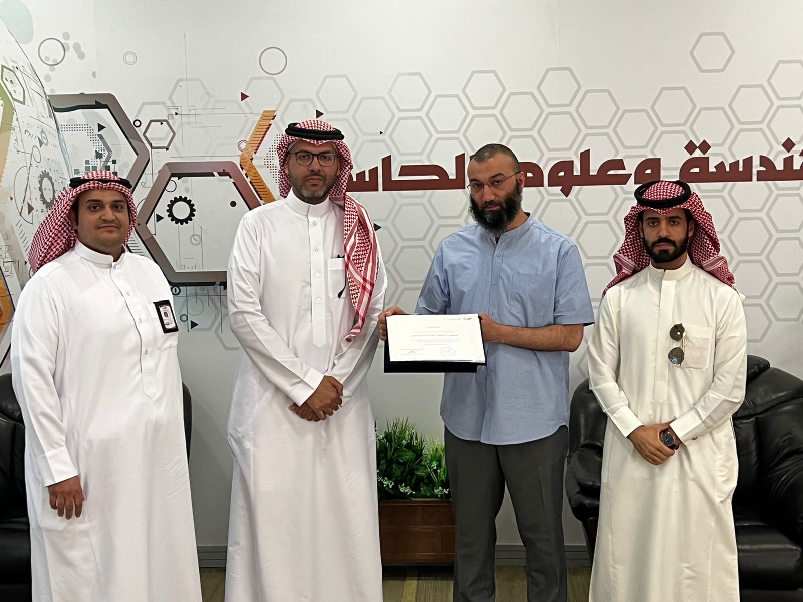 وتم تكريم عميد الكلية للدكتور وليد نزيه بمناسبة حصوله على المركز الرابع في مسار تحدي المعجم في المنافسة العالمية برمجان العربية لعام 1443هـ ومتمنين له مزيدا من التقدم والرقي والنجاح..