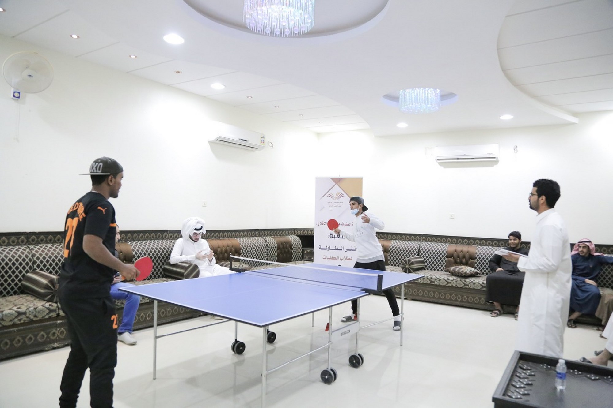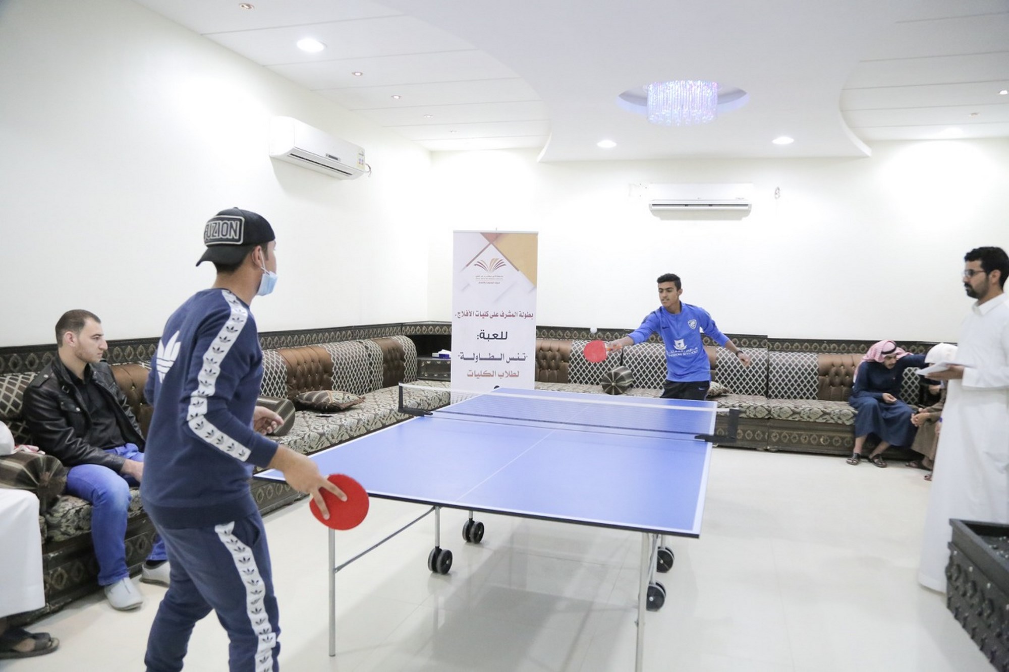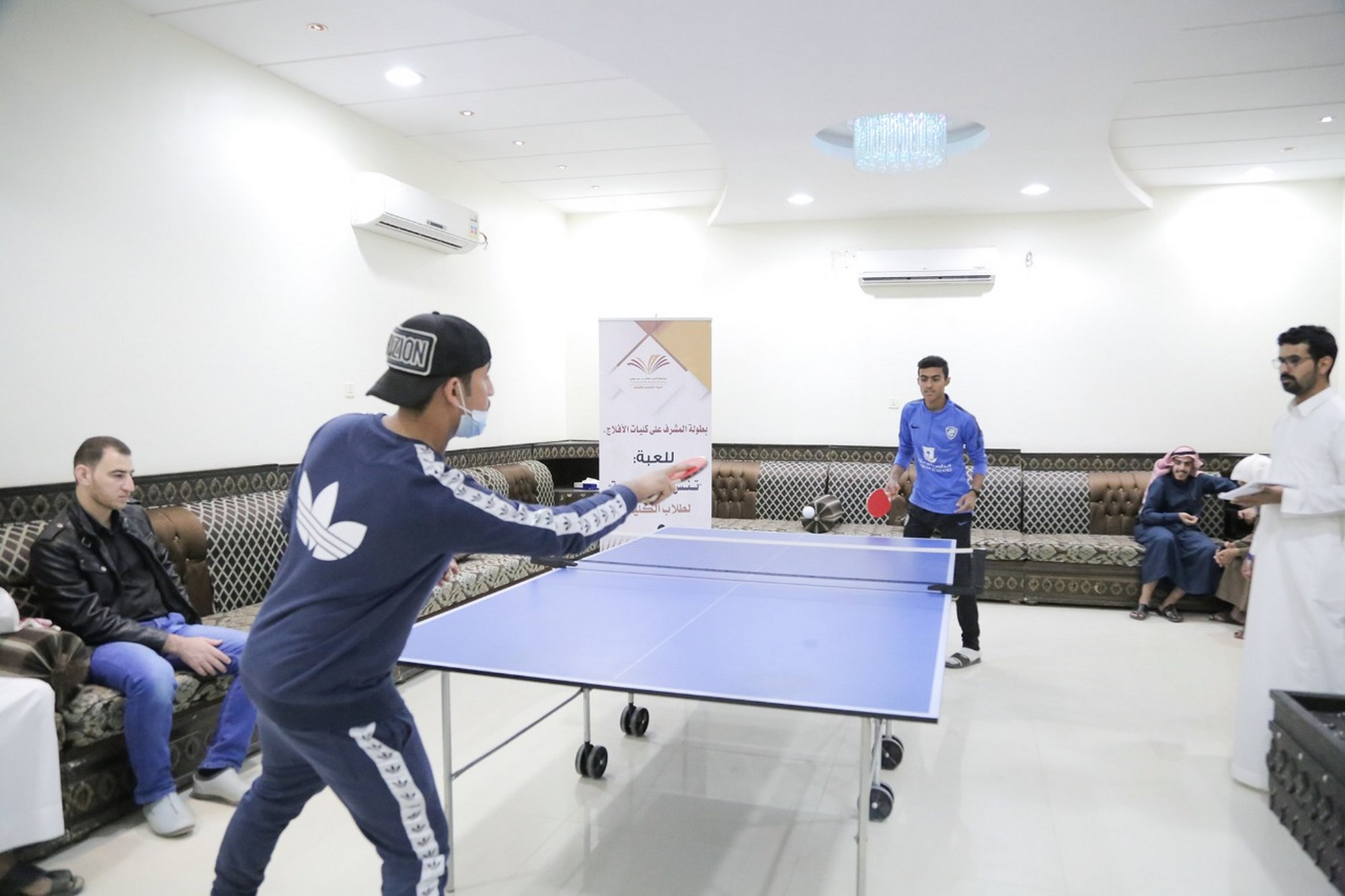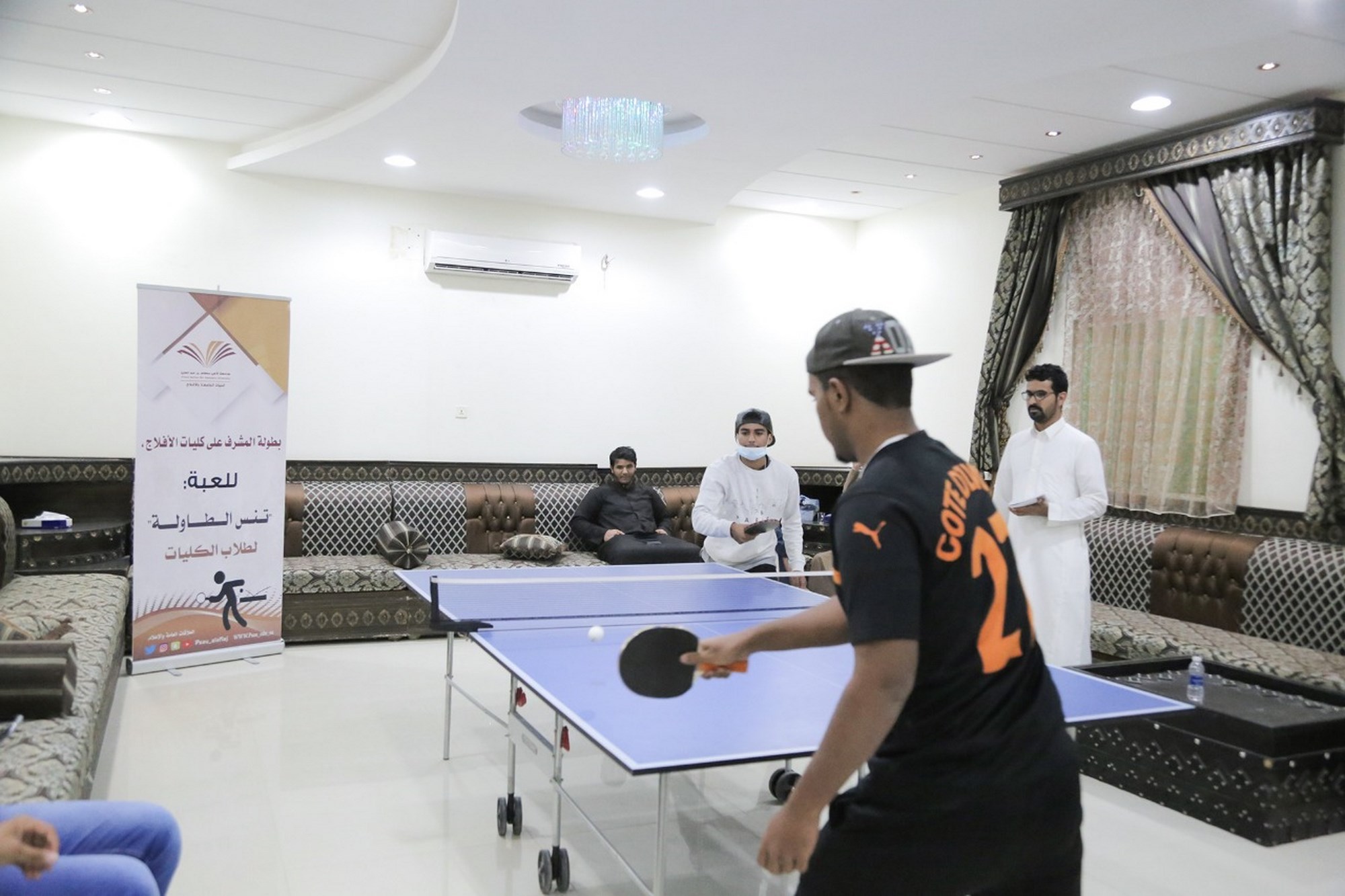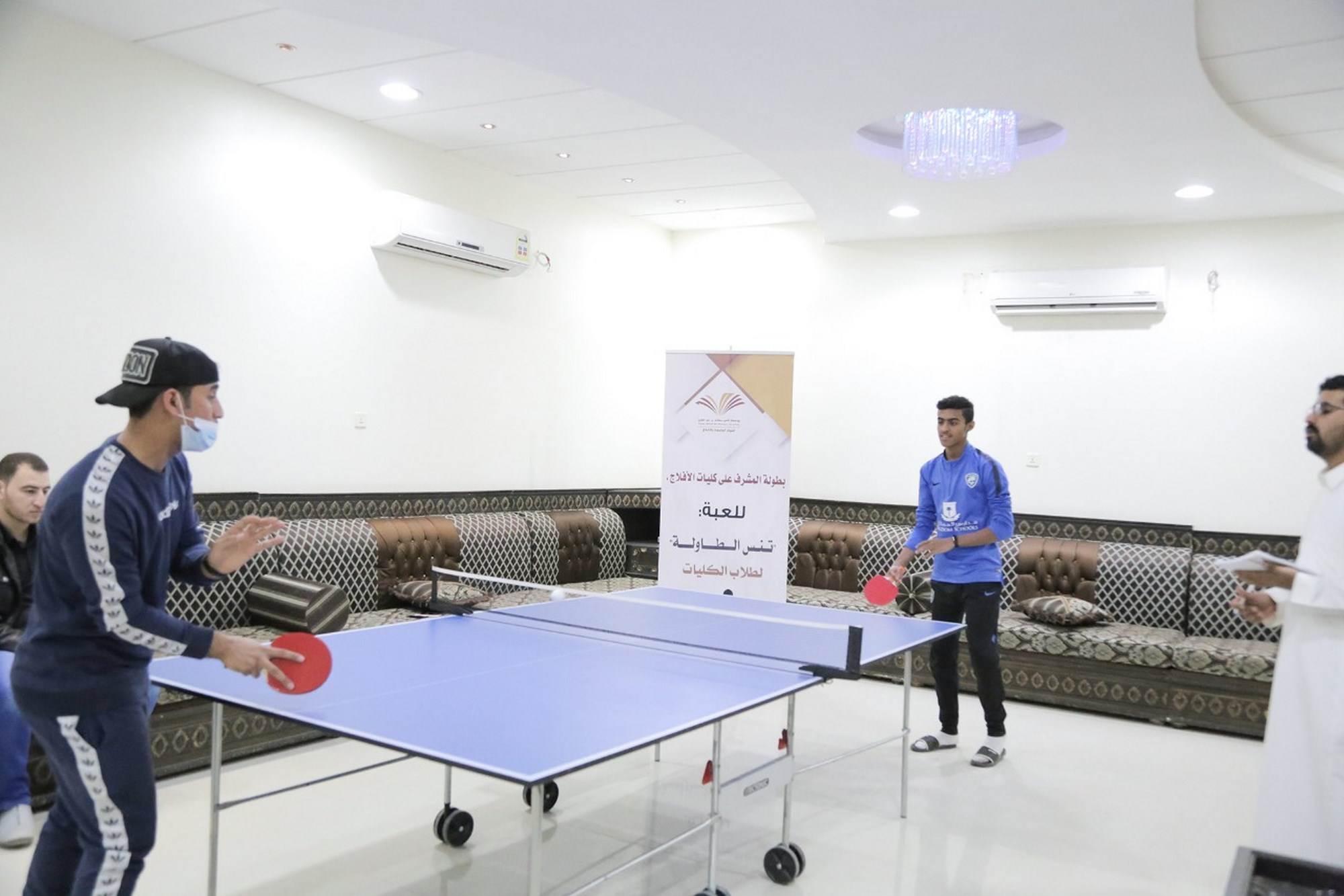 بمشاركة اثنى عشر طالباً من مختلف الأقسام نظمت كليات الجامعة بالأفلاج يوم الأثنين 1440/5/22 هـ بطولة "مشرف كليات الأفلاج" لتنس الطاولة التي نظمها القسم الرياضي .