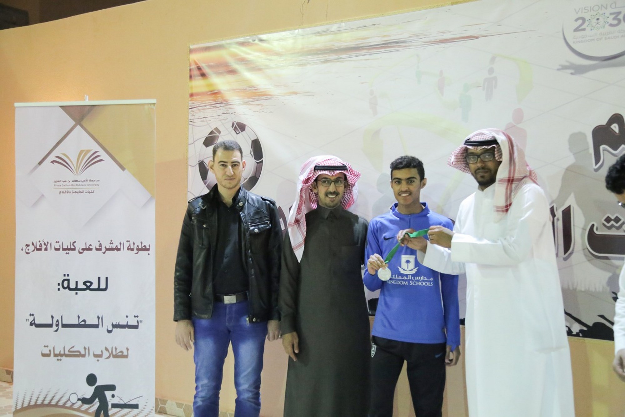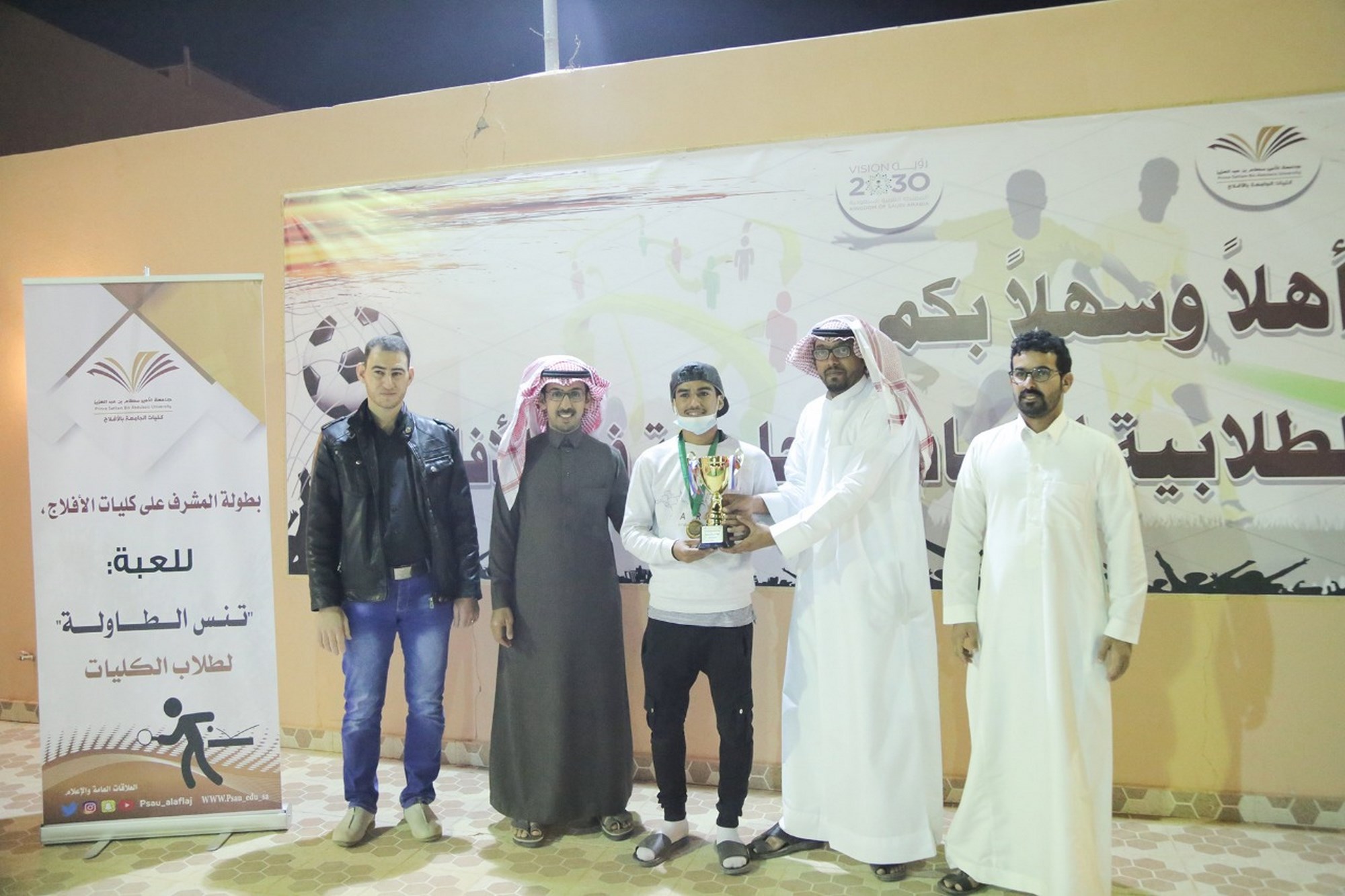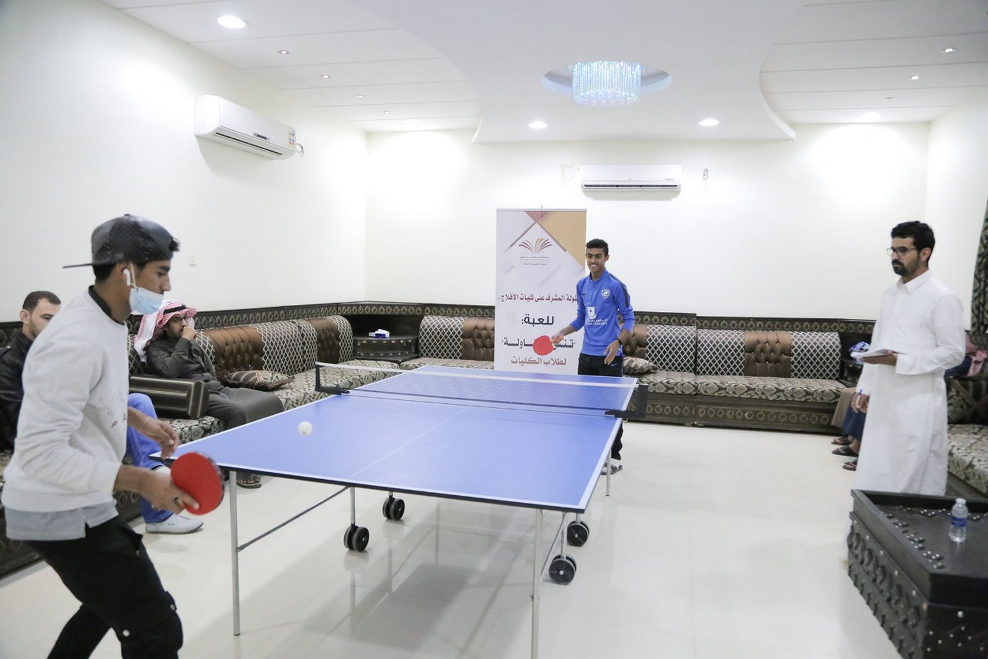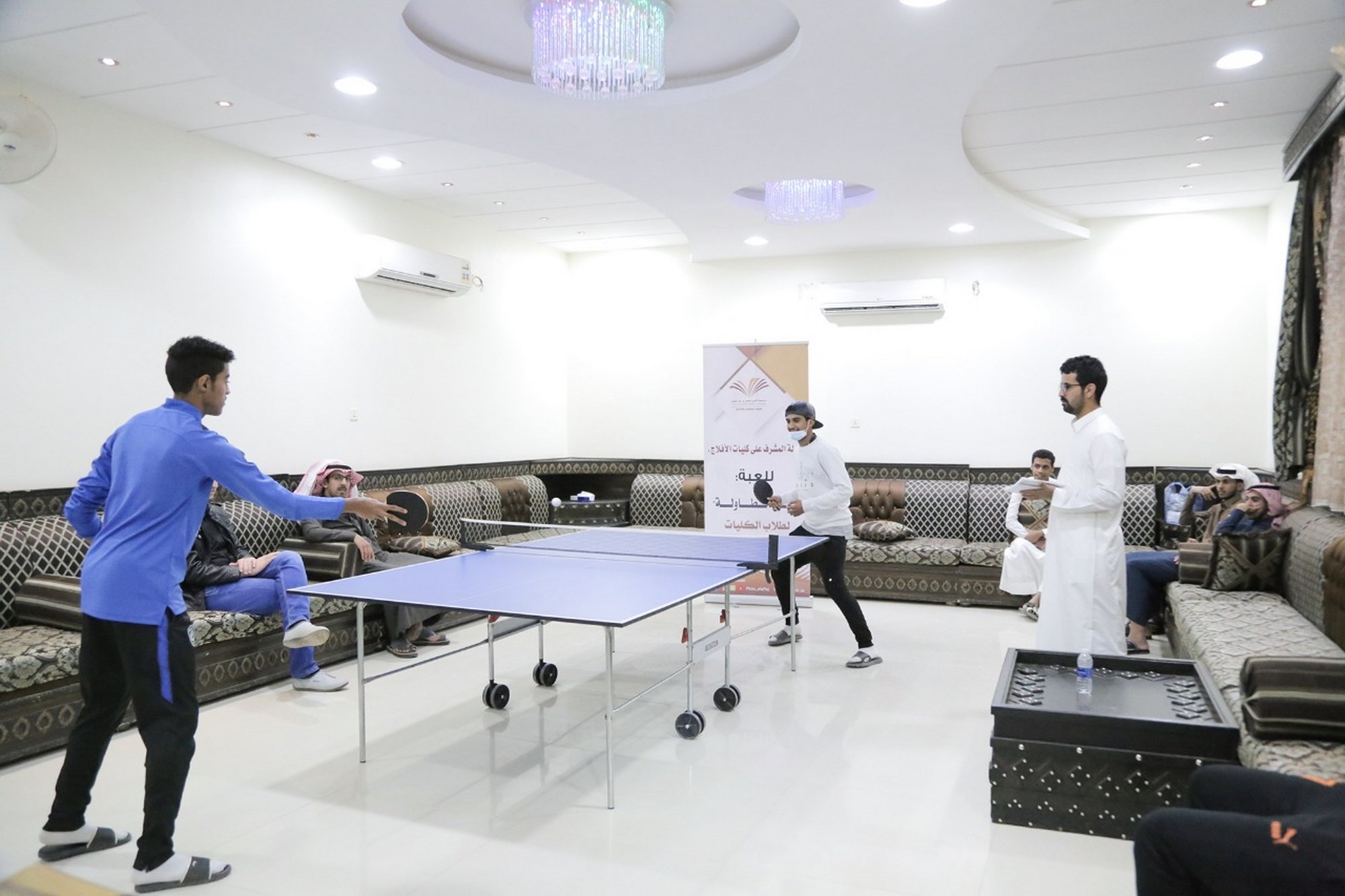 بمشاركة اثنى عشر طالباً من مختلف الأقسام نظمت كليات الجامعة بالأفلاج يوم الأثنين 1440/5/22 هـ بطولة "مشرف كليات الأفلاج" لتنس الطاولة التي نظمها القسم الرياضي .