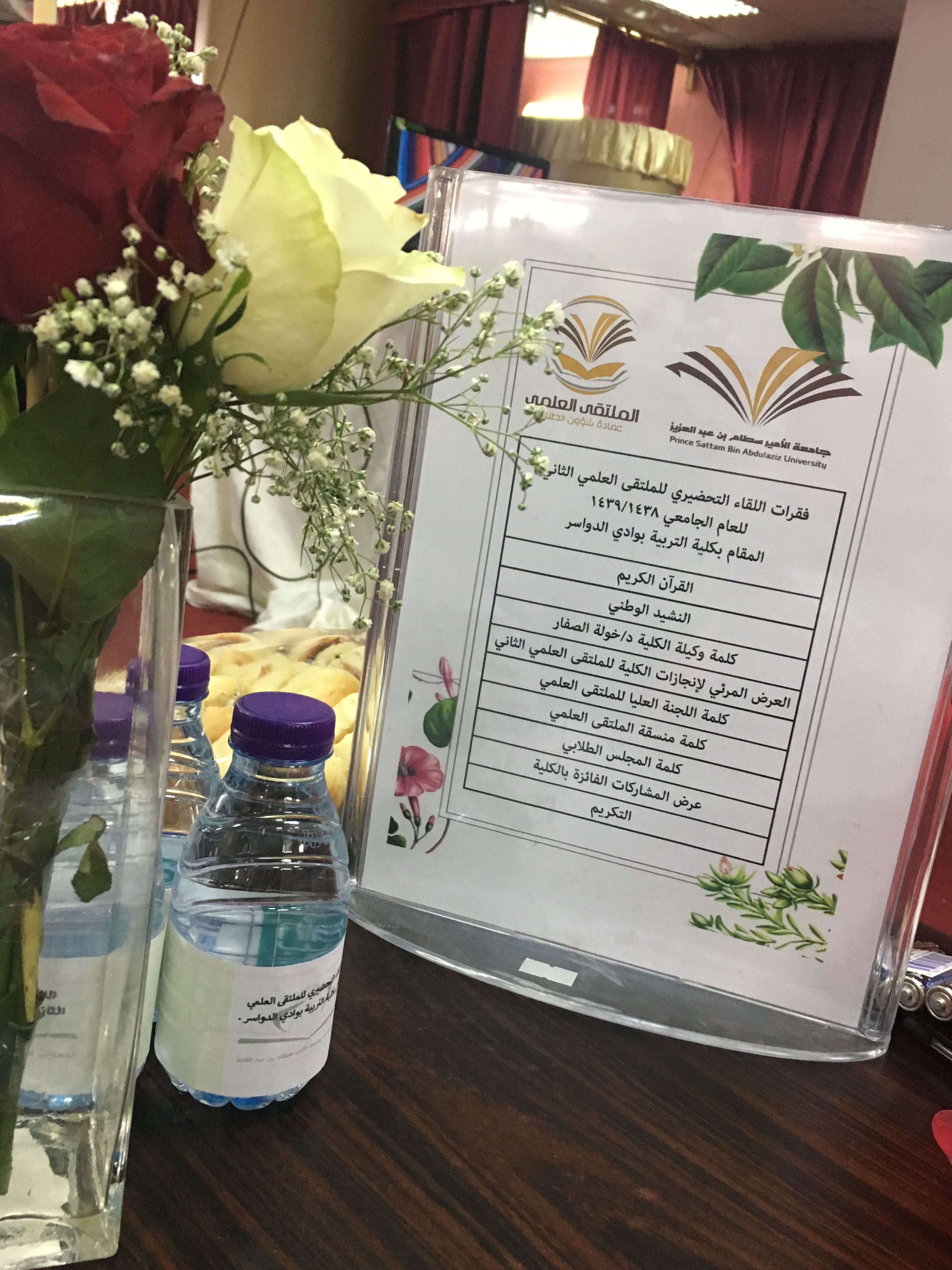 حيث ابتدأ اللقاء بآيات من الذكر الحكيم ثم النشيد الوطني .وألقت د.خولة فهد الصفار كلمتها ابتدأت فيها بالترحيب بالحضور وشكرت وكيلة عمادة شؤون الطالبات على ما يقدمونه للجامعة والطلاب والطالبات من دعم واهتمام، كما شكرت د. خولة خلال كلمتها كل القائمين على تنفيذ فعاليات الملتقى بالكلية، وأوضحت أهمية مثل هذه الملتقيات في إبراز مهارات وإبداعات الطالبات وإظهار قدرتهن على تحمل المسؤولية.