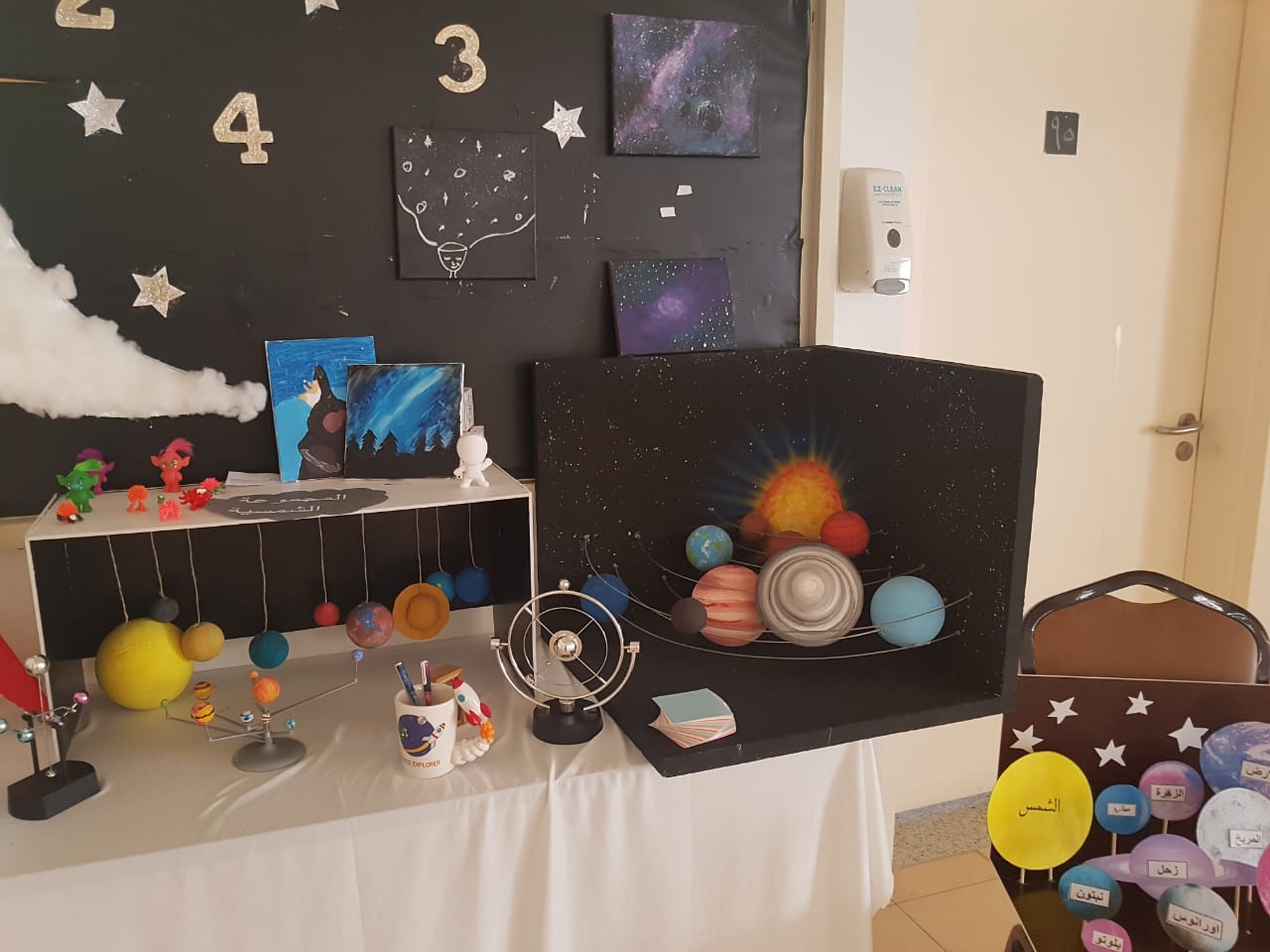أوضحت طالبات المسار الهندسي في فعالية "الفضاء في قشرة جوز" والذي أقيم بعمادة السنة التحضيرية/شطر الطالبات، يوم الخميس الموافق1440/7/14هـ عن علاقة الفضاء وما يحتويه من اعجازات علمية بالرياضيات، والفيزياء، والكيمياء، والأحياء، والحاسب، حيث اشتمل الحديث فيها عن الإنسان القديم وطريقة تفكيره وفهمه وخياله في استيعاب الفضاء وما يحتويه من أجرام وكواكب. تمت هذه الفعالية بإعداد وإشراف وتنظيم كلا من وحدة خدمة المجتمع بإشراف الأستاذه أشواق العنزي، ونادي العلوم الأساسية بإشراف الأستاذة راضية حميدة. اختتمت الفعالية بمسابقة الكترونية علمية أثرت الحضور بمعلومات قيمة، عقبها تقديم هدايا للفائزين.