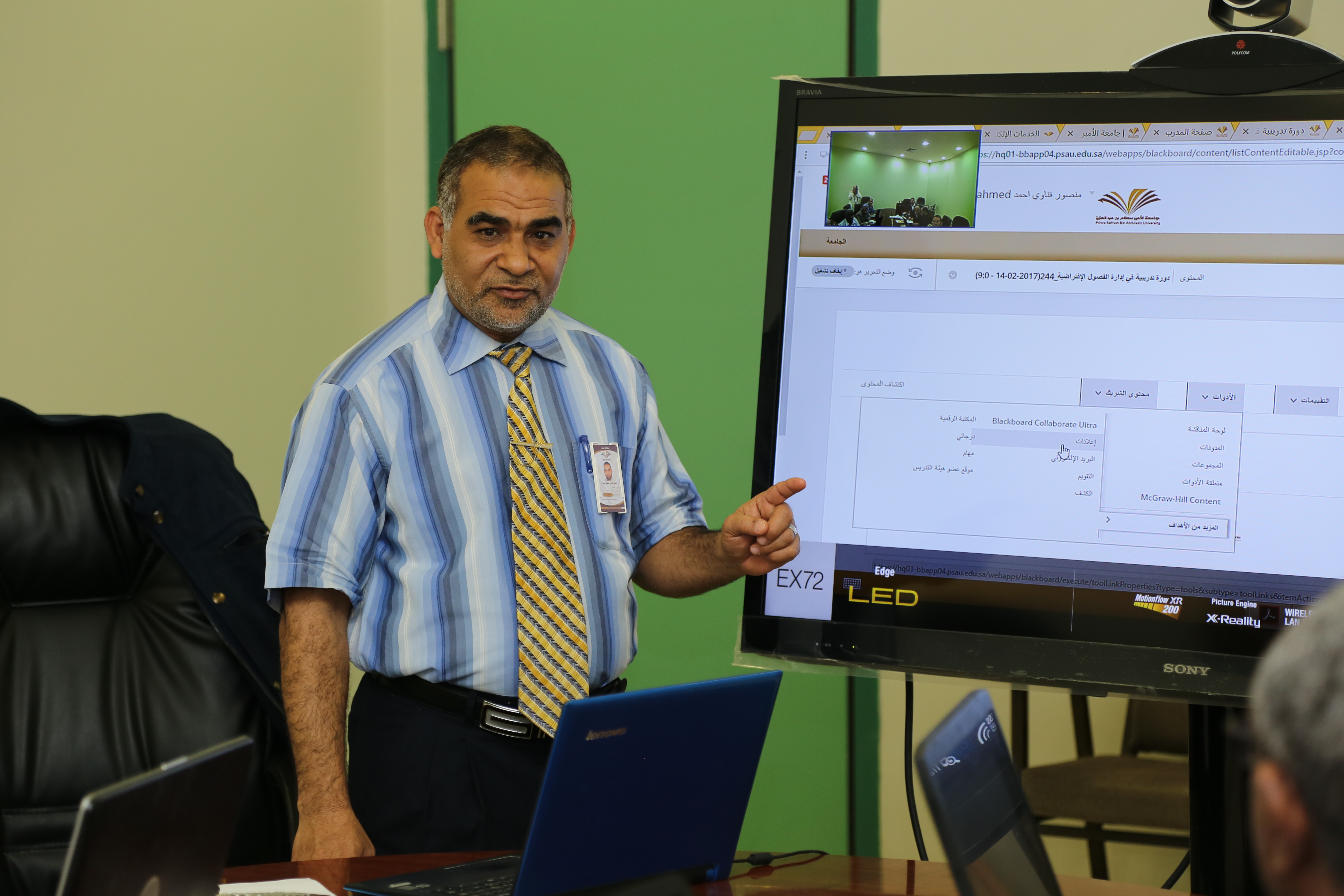 هذا، وقد قدم الدورة سعادة الدكتور منصور قناوي توفيق مدرب التعلم الإلكتروني والبلاك بورد بالكلية، والتي استمرت ثلاث ساعات، كانت حول طريقة إنشاء الفصل الافتراضي، وكيفية الوصول إليه من قبل الطالب، وكيفية التعامل مع الأدوات المتعلقة بالفصل، وكذلك كيفية عرض المحتوى للطالب.