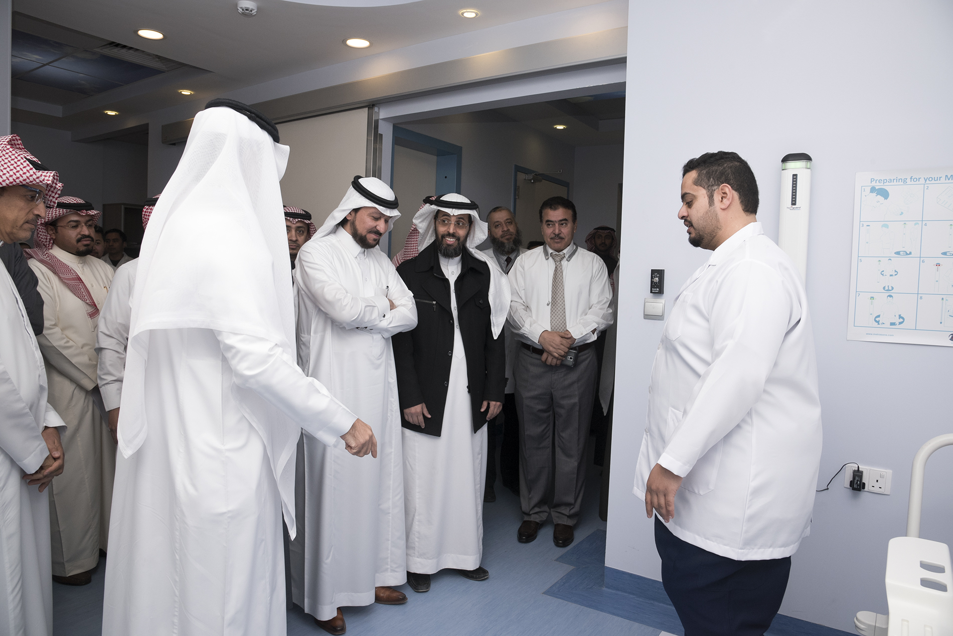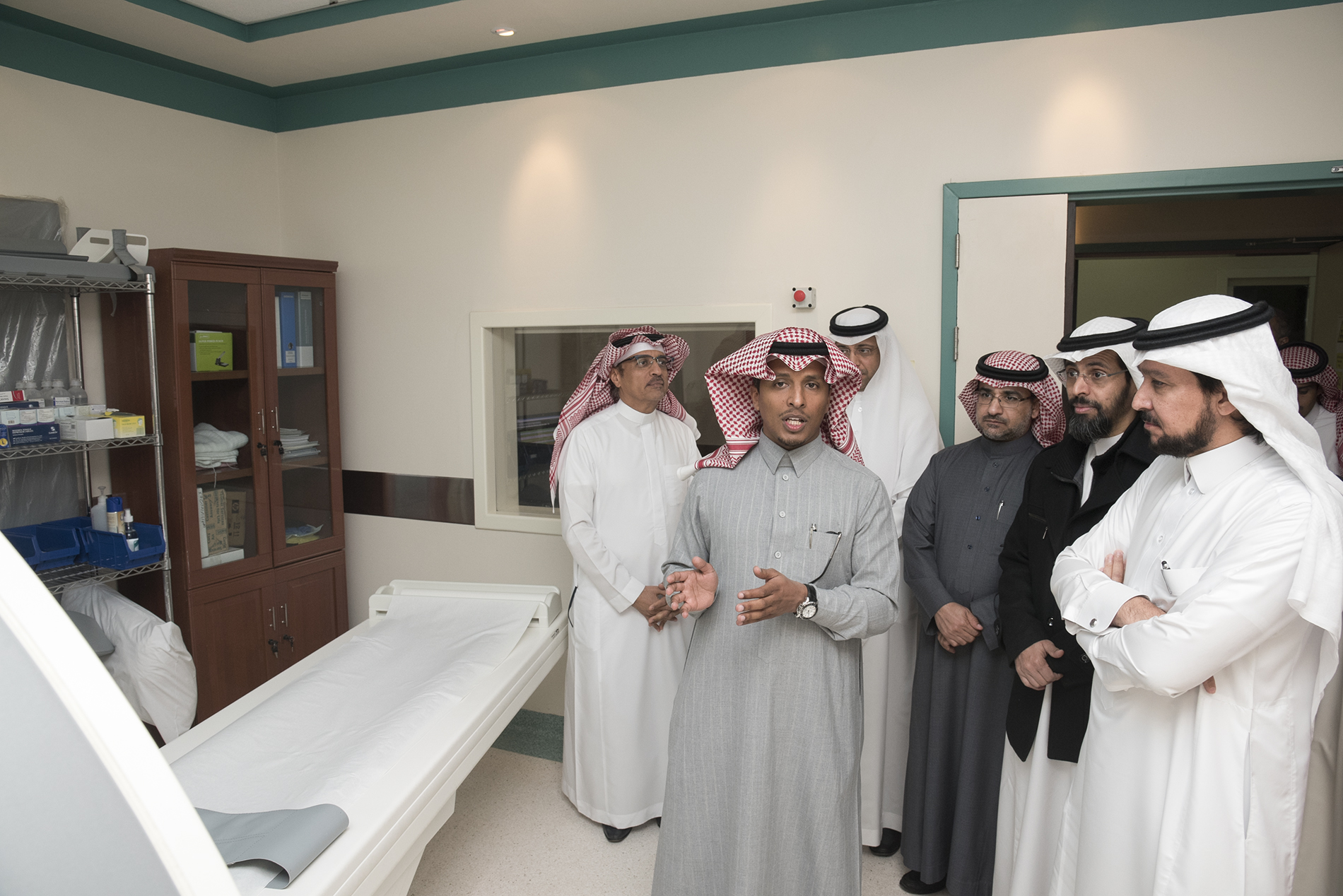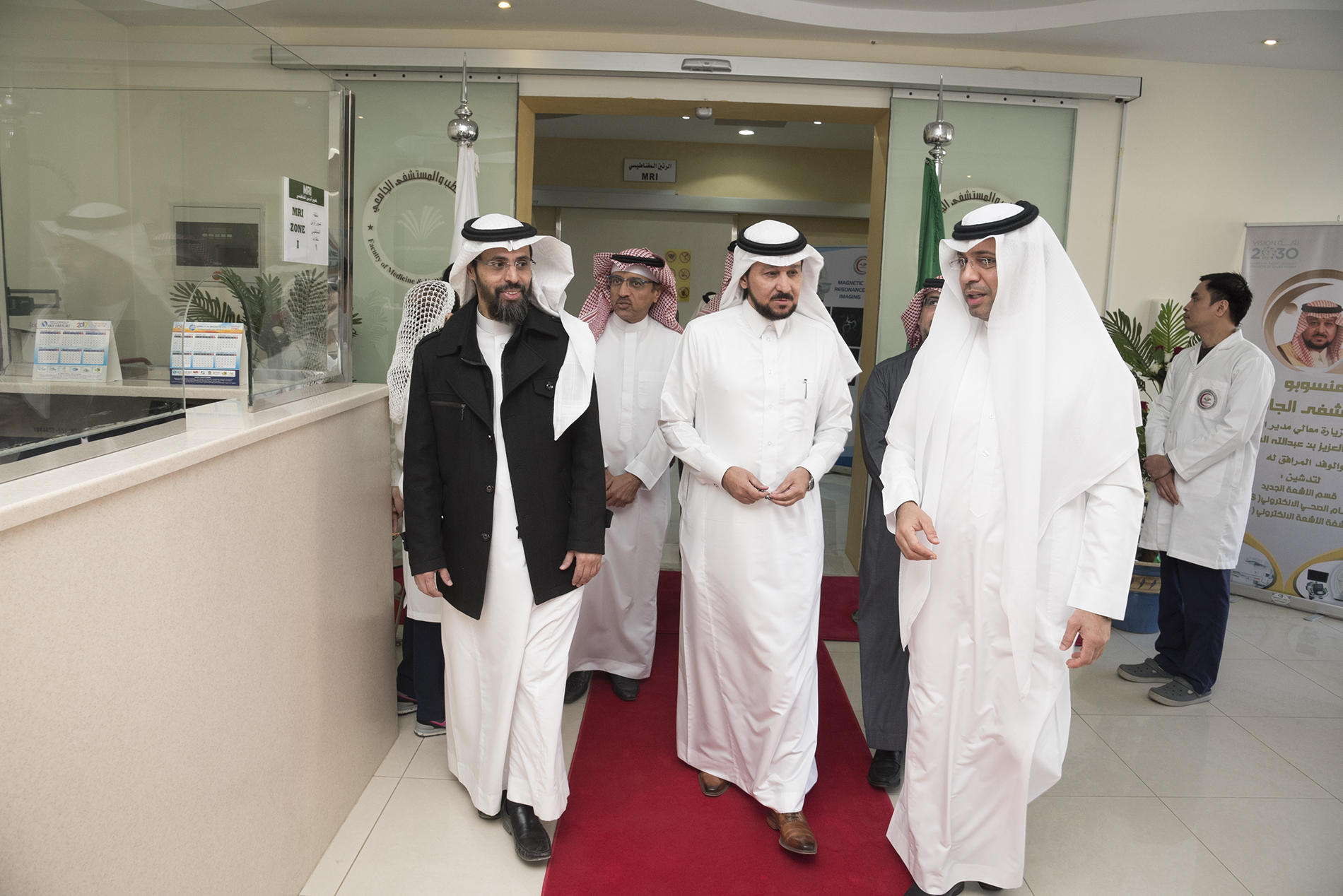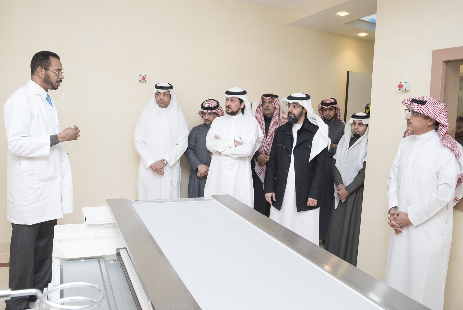 وكان في استقباله والوفد المرافق له عميد كلية الطب والمشرف على المستشفى الجامعي الدكتور عبد الرحمن بن إبراهيم الذياب والمدير التنفيذي الدكتور ناصر بن محمد الدوسري ؛ حيث بدأ الحامد جولته في المستشفى بافتتاح قسم الأشعة الجديد والذي يضم ثلاثة أنواع من أجهزة الأشعة المختلفة والمتقدمة (الرنين المغناطيسي، الأشعة فوق الصوتية، أشعة الثدي، أشعة الكشف الفلوري التنظيري).