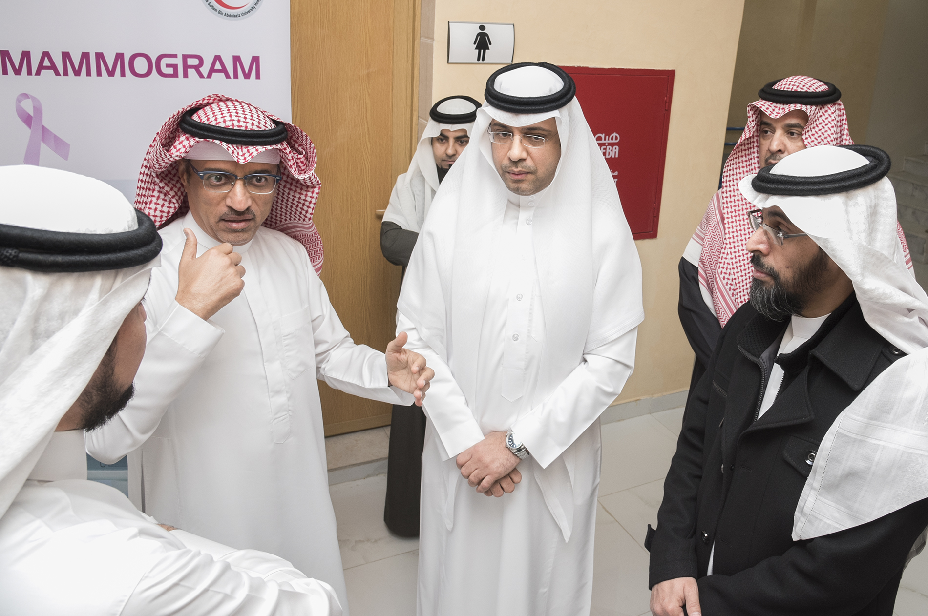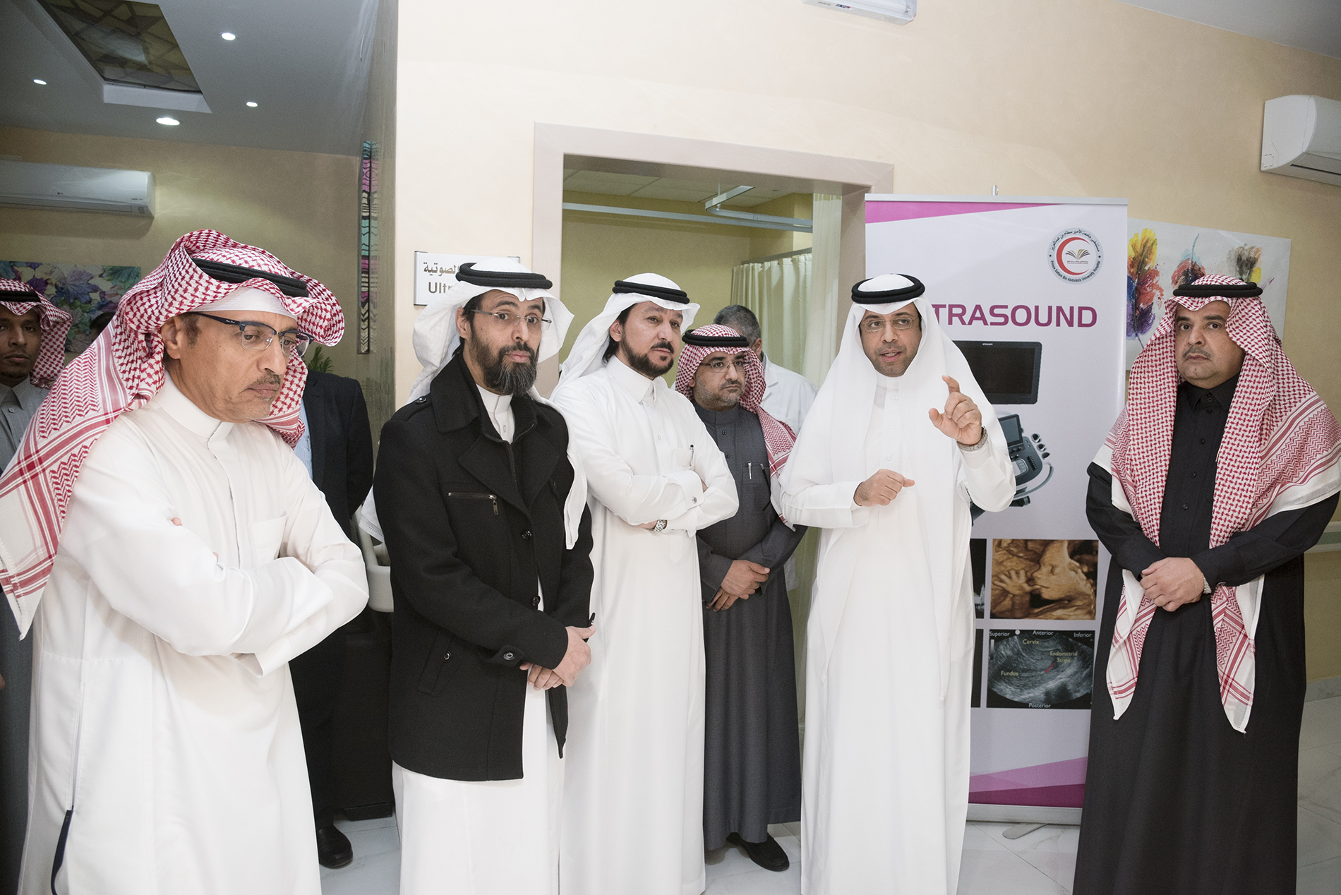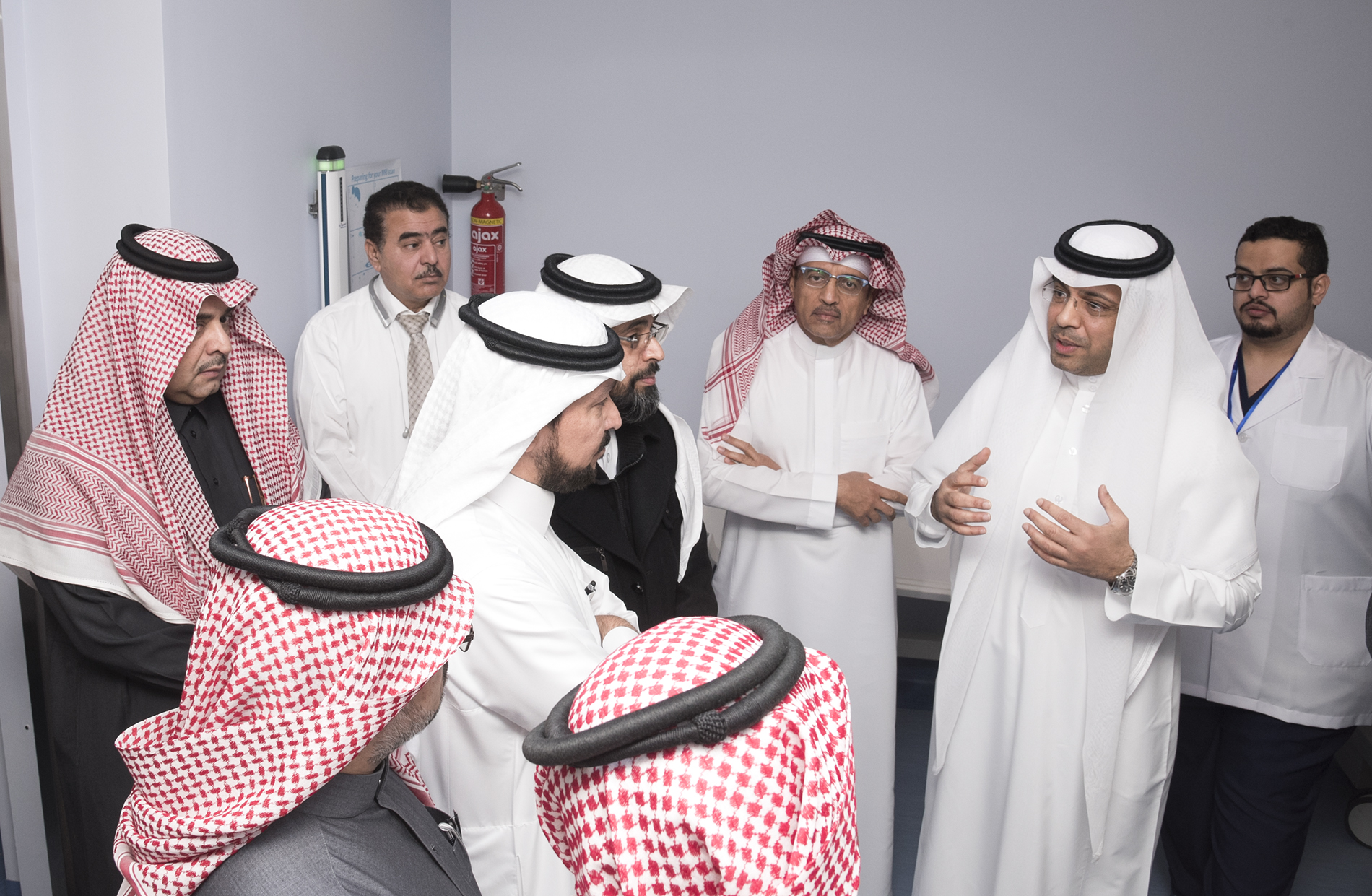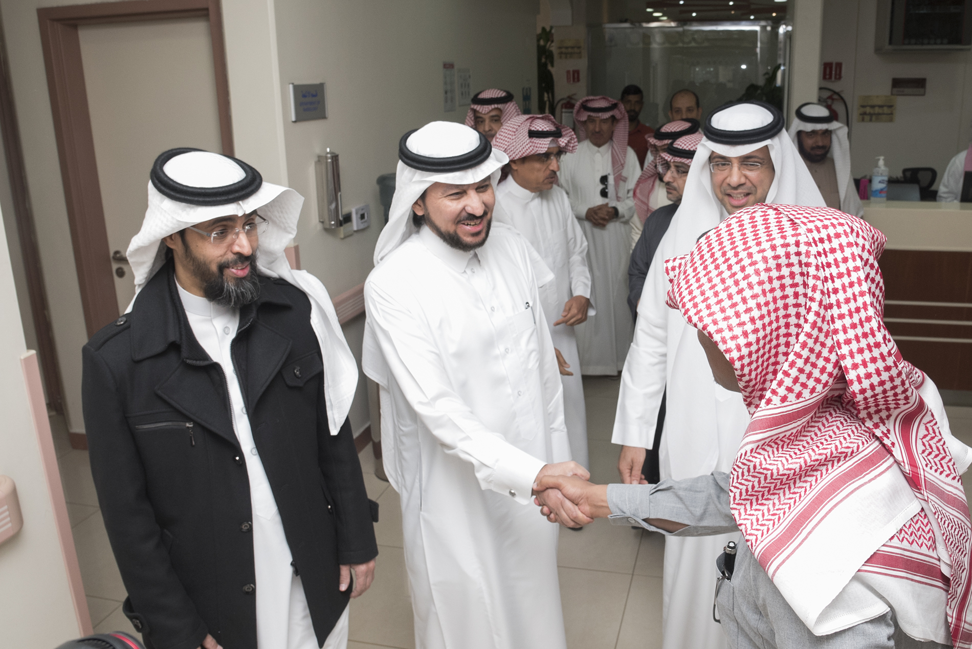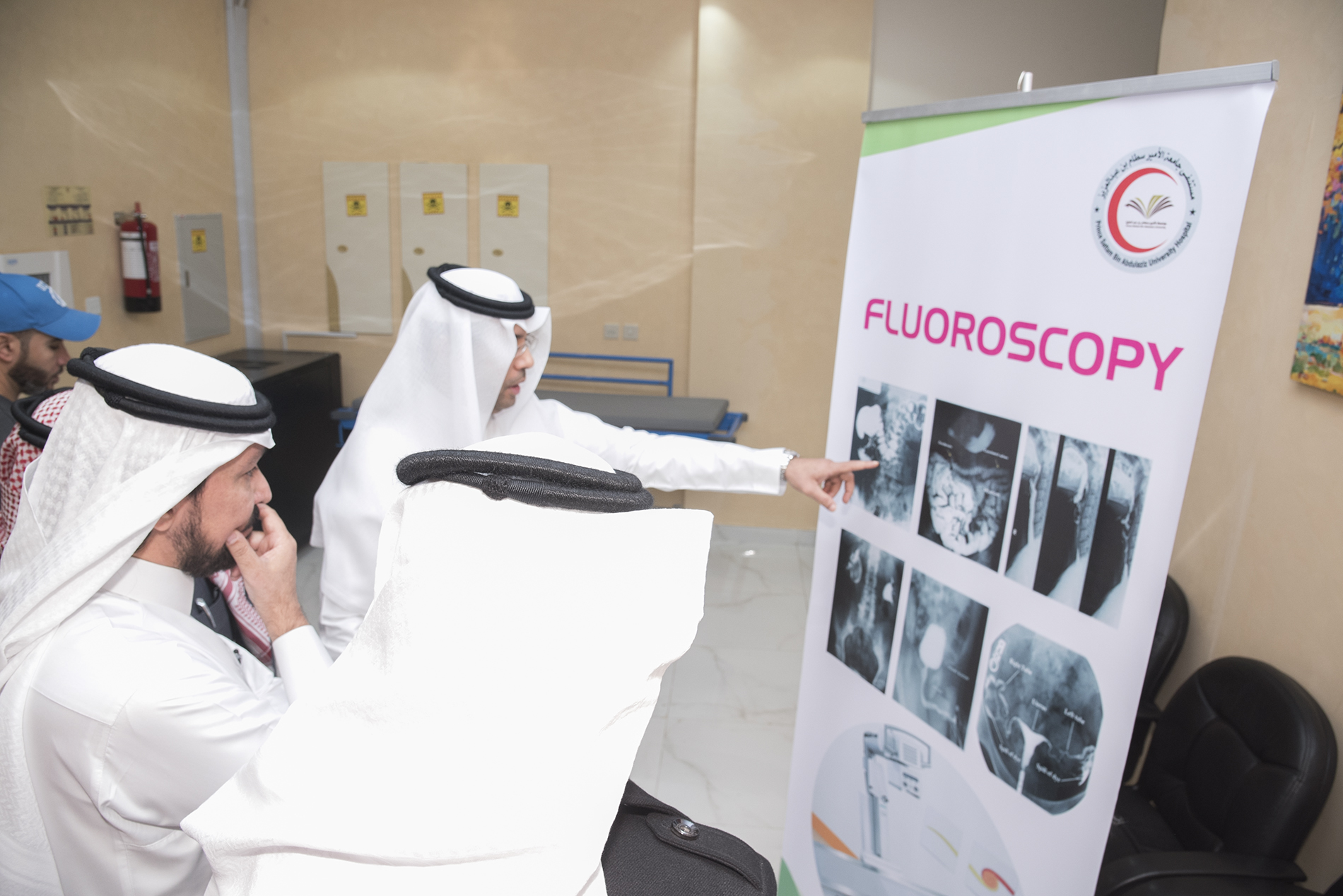 وكان في استقباله والوفد المرافق له عميد كلية الطب والمشرف على المستشفى الجامعي الدكتور عبد الرحمن بن إبراهيم الذياب والمدير التنفيذي الدكتور ناصر بن محمد الدوسري ؛ حيث بدأ الحامد جولته في المستشفى بافتتاح قسم الأشعة الجديد والذي يضم ثلاثة أنواع من أجهزة الأشعة المختلفة والمتقدمة (الرنين المغناطيسي، الأشعة فوق الصوتية، أشعة الثدي، أشعة الكشف الفلوري التنظيري).