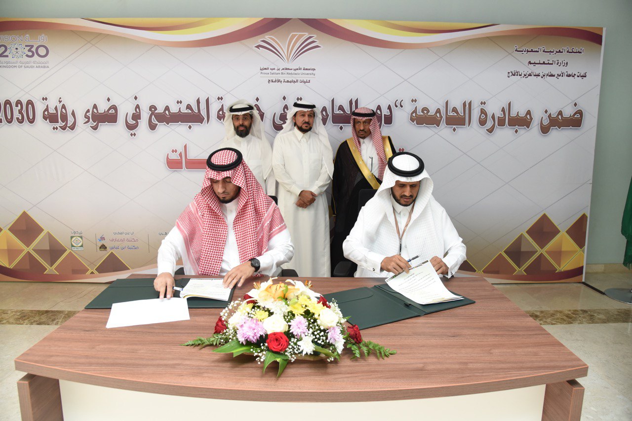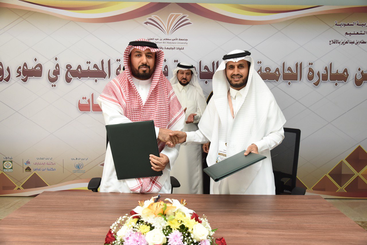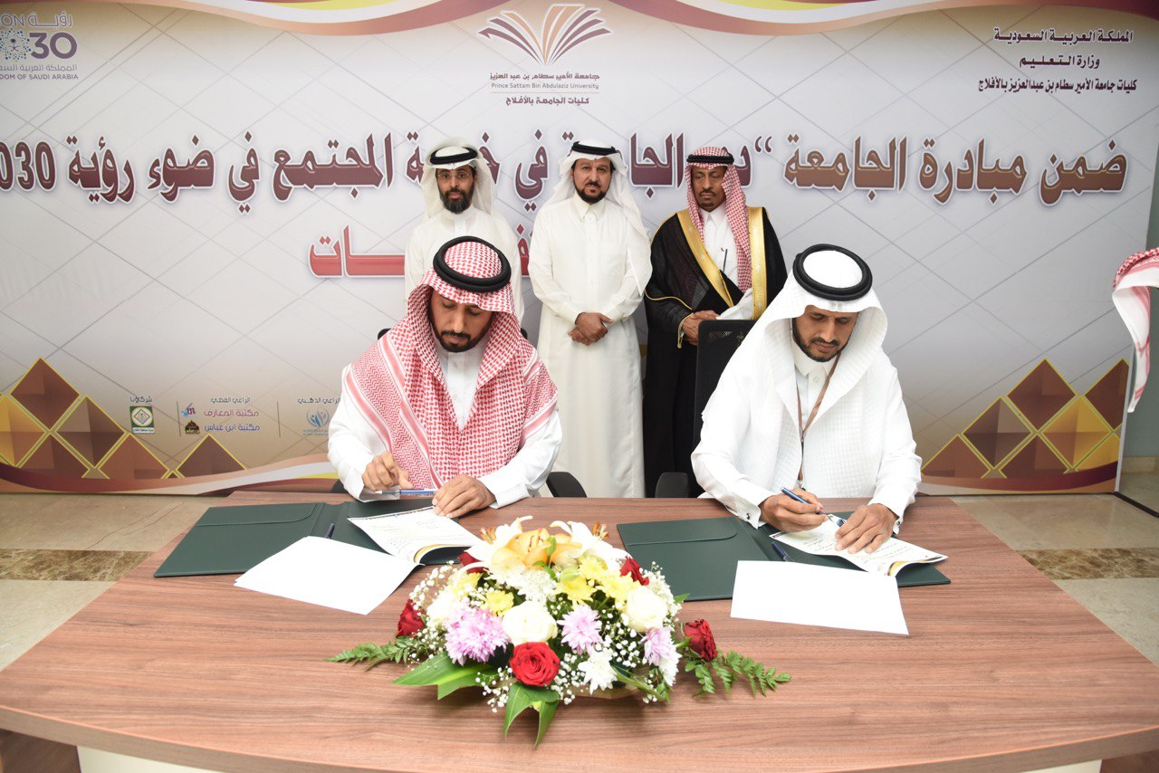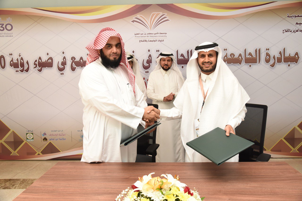 مع تدشين المبادرة المجتمعية التي أطلقتها كليات جامعة الأمير سطام بن عبدالعزيز بالأفلاج بعنوان "دور الجامعة في خدمة المجتمع في ضوء رؤية 2030"، تم توقيع أربع شراكات مجتمعية مع عدد من الجهات الحكومية والأهلية بالمحافظة، وذلك بحضور معالي مدير الجامعة الأستاذ الدكتور عبدالعزيز الحامد .