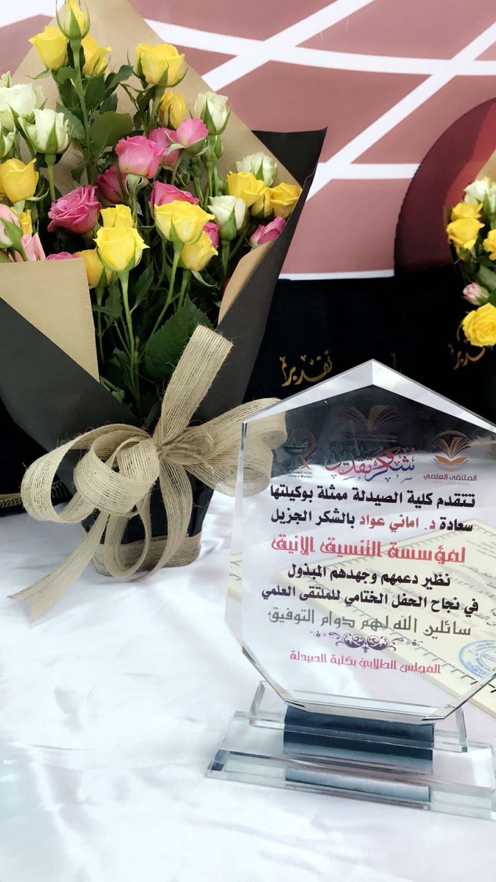 دشن المجلس الطلابي بكلية الصيدلة لأقسام الطالبات يوم الأثنين 19/5/1439 هـ ، فعاليات الملتقى العلمي الثاني استعدادا للمشاركة في المؤتمر العلمي الذي تنظمه الجامعة ، وذلك بحضور وكيلة عمادة شؤون الطالبات بالجامعة الدكتورة دلال المطرفي رئيسة اللجنة الإشرافية العليا للملتقى العلمي ومساعدة عميد الكلية الأستاذة الدكتورة أماني عواد ، ومنسوبات الكلية من أعضاء هيئة تدريس وموظفات وطالبات وبرعاية وشراكة مجتمعية من كلا من مؤسسة التنسيق الأنيق وليزتلي حلويات ومعجنات.