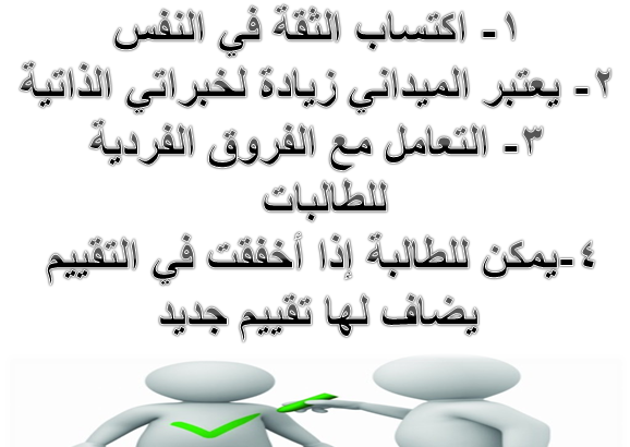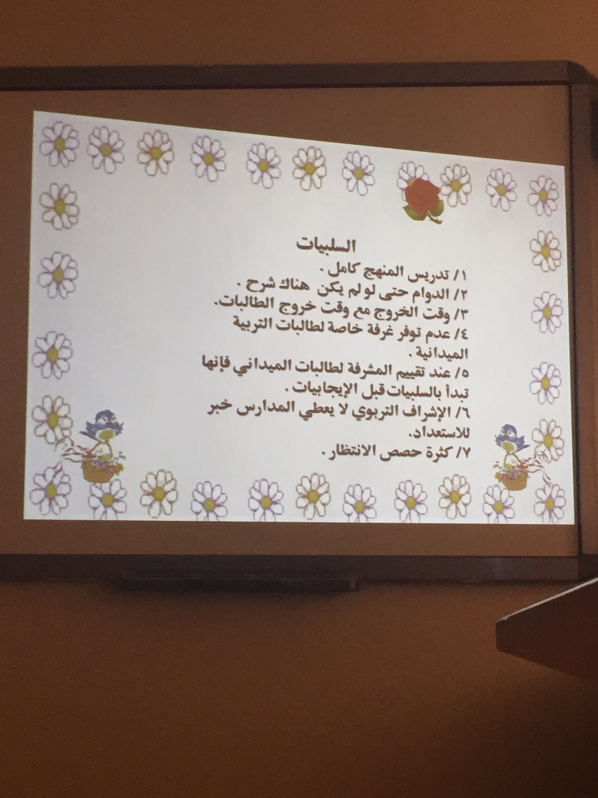 - الإجابة على تساؤلات الطالبات المقدمات على التربية الميدانية في السنة القادمة.
